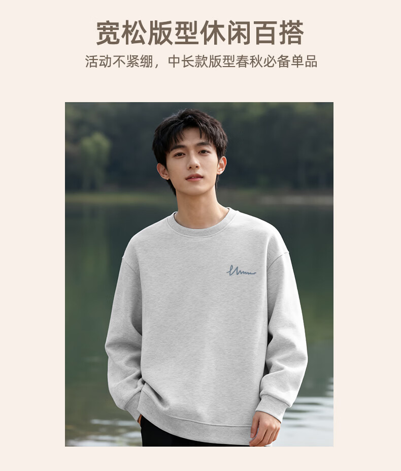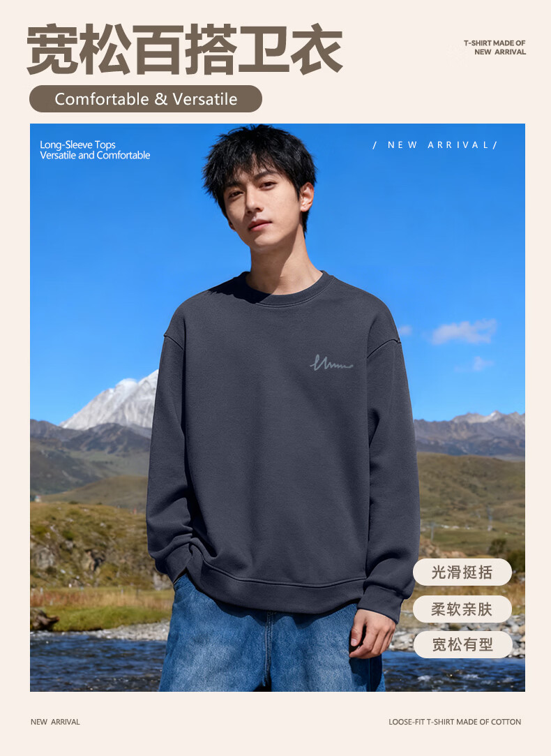 Baleno loose round neck sweatshirt men's classic basic pullover trendy versatile inner long-sleeved casual spring and autumn top