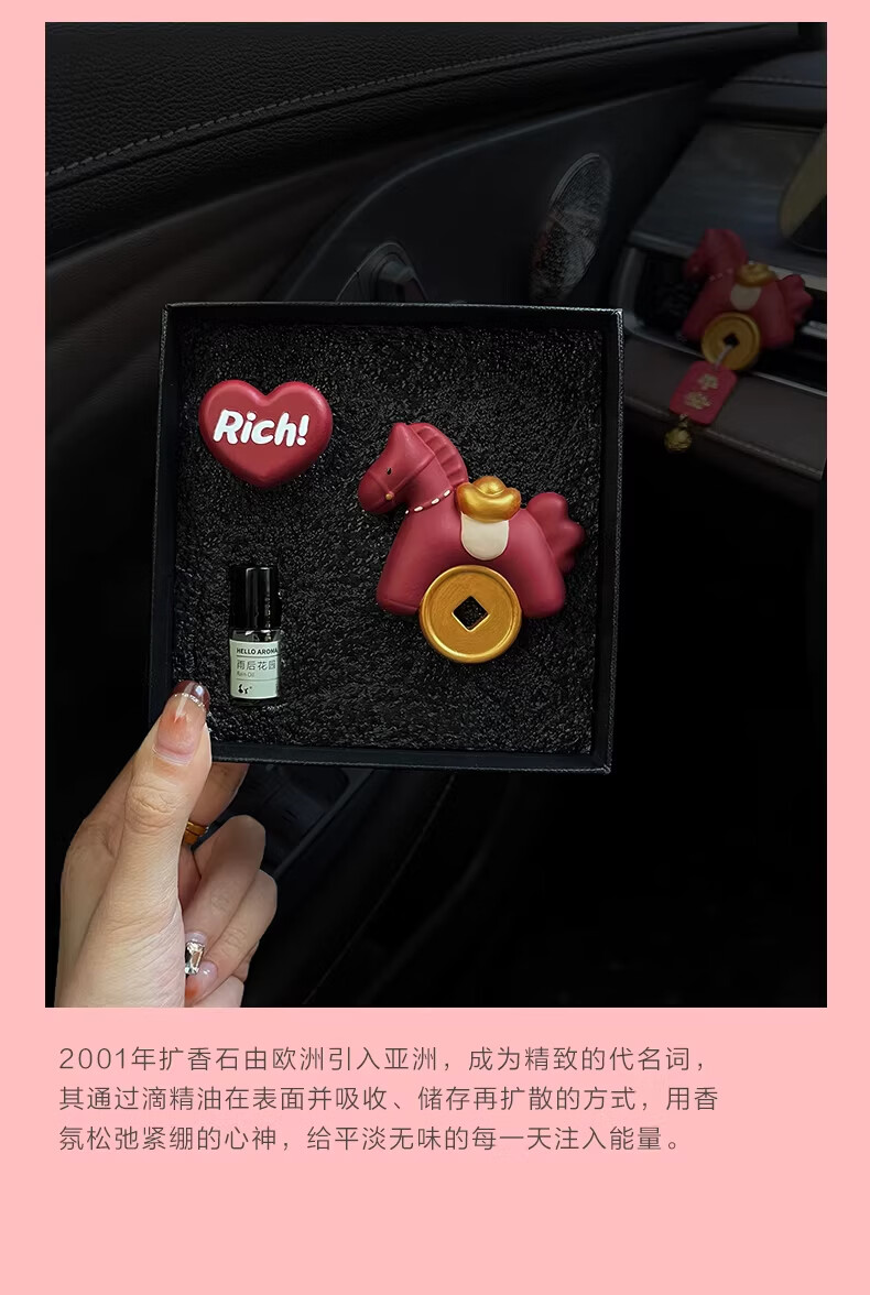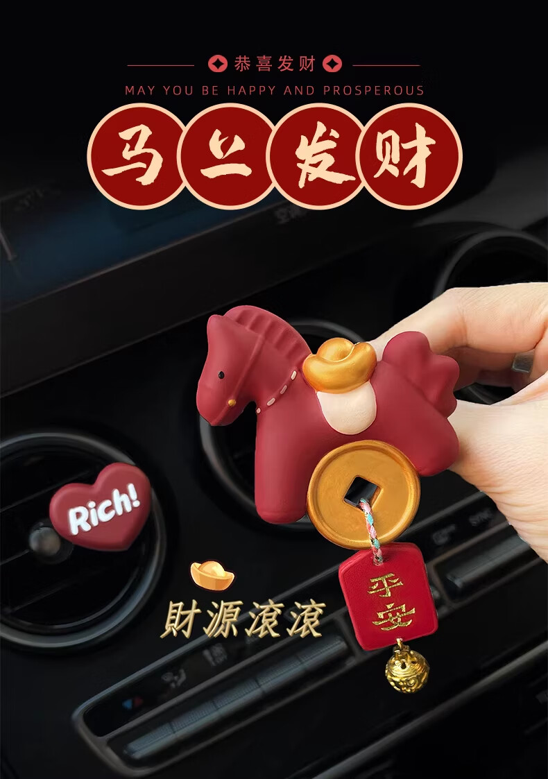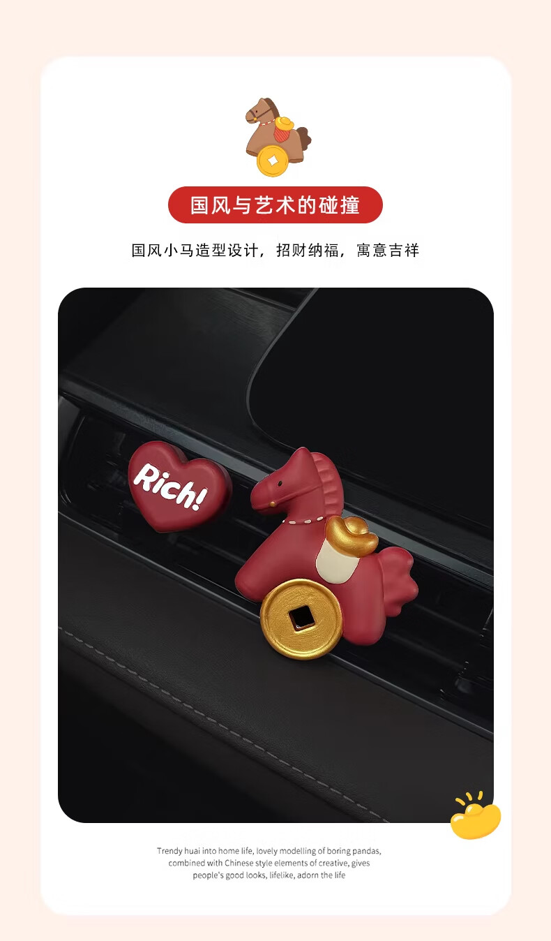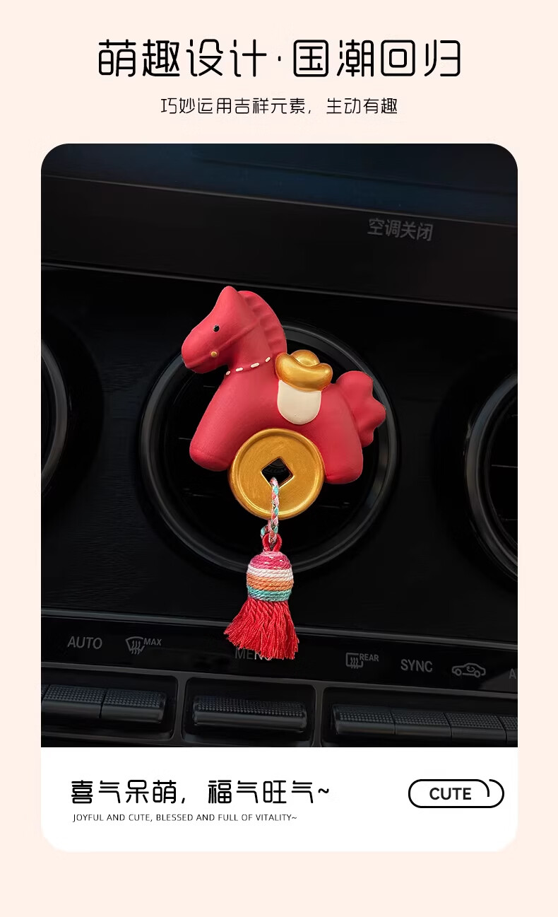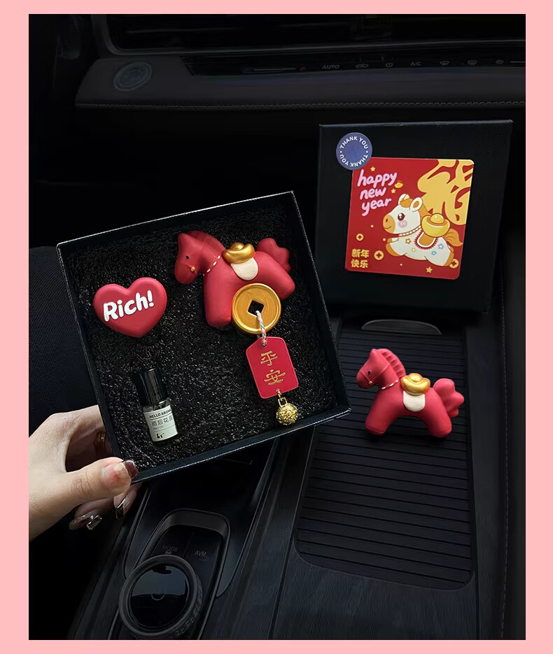Di Jalun, the Year of the Horse, gets rich during the Spring Festival, a pony car carrying aromatherapy, car air outlet decoration, car interior ornaments, gift box, New Year's gift