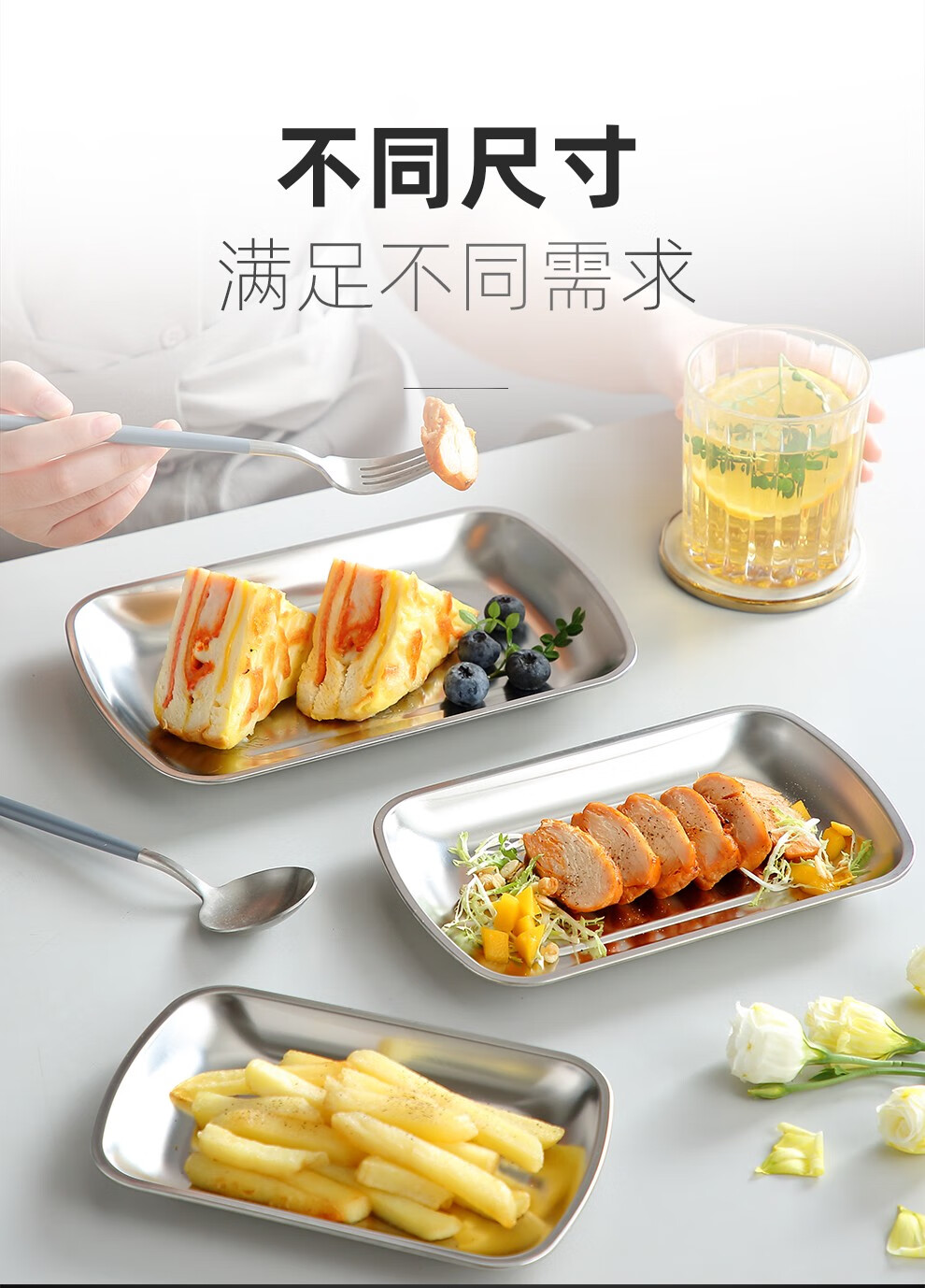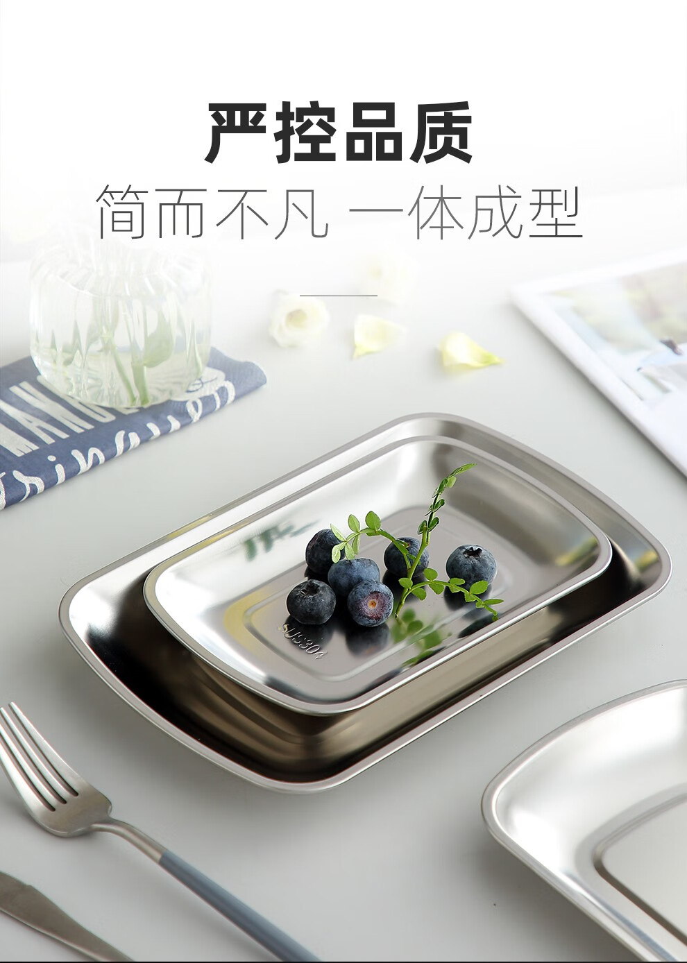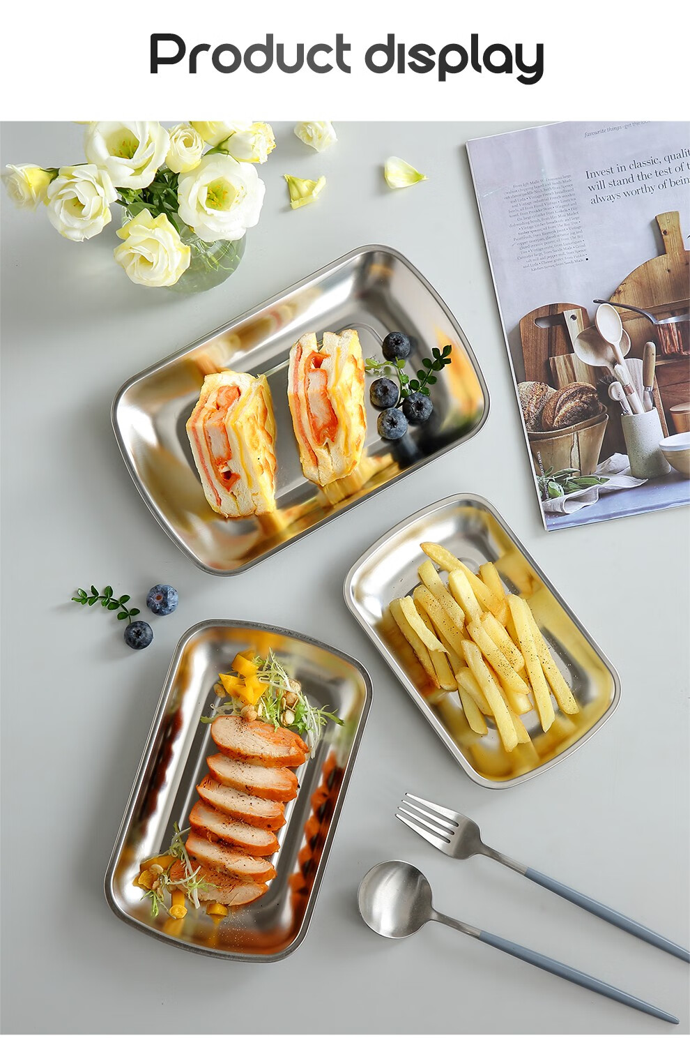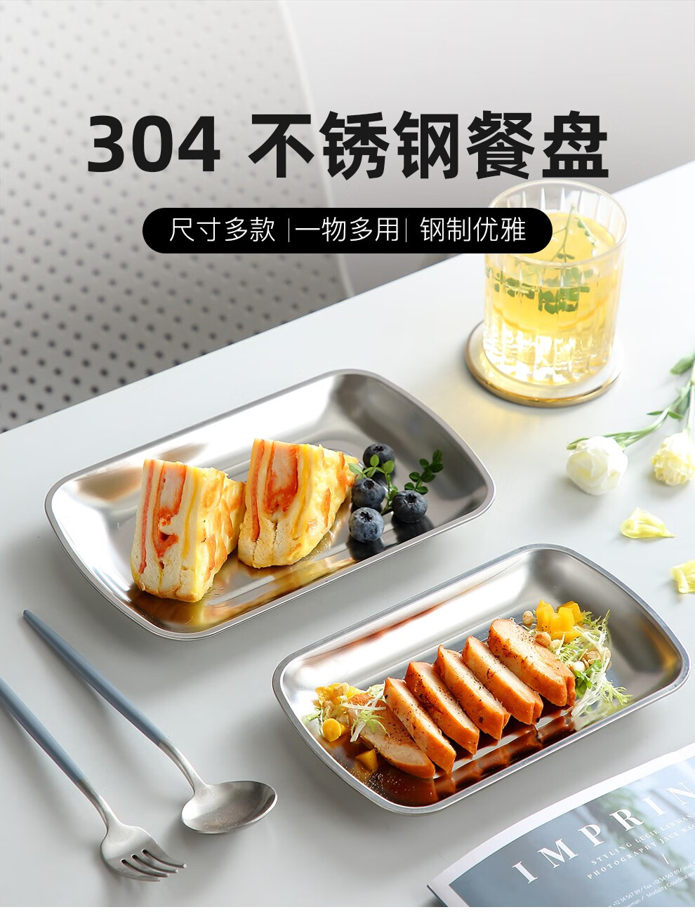 Onlycook dinner plate 304 stainless steel barbecue hot pot side dish home kitchen plate preparation plate tray square plate large/single