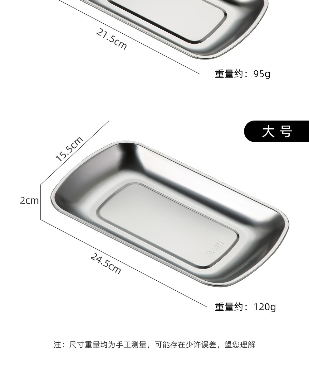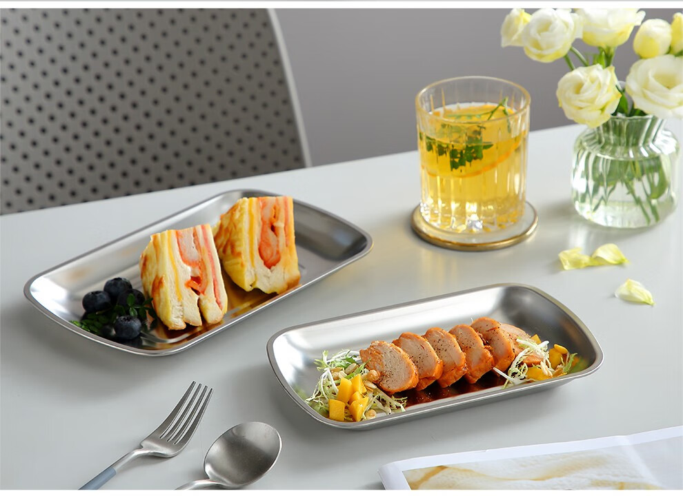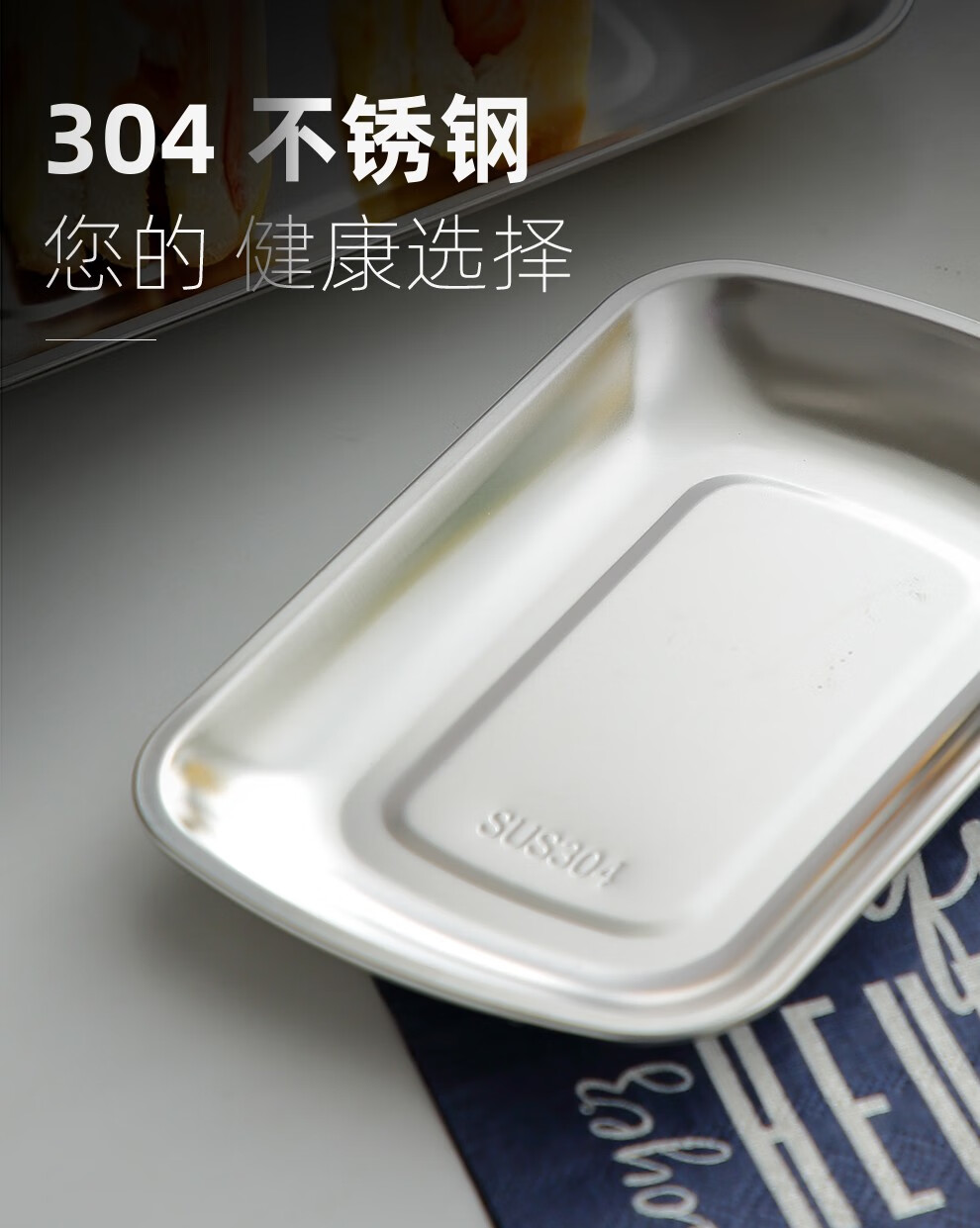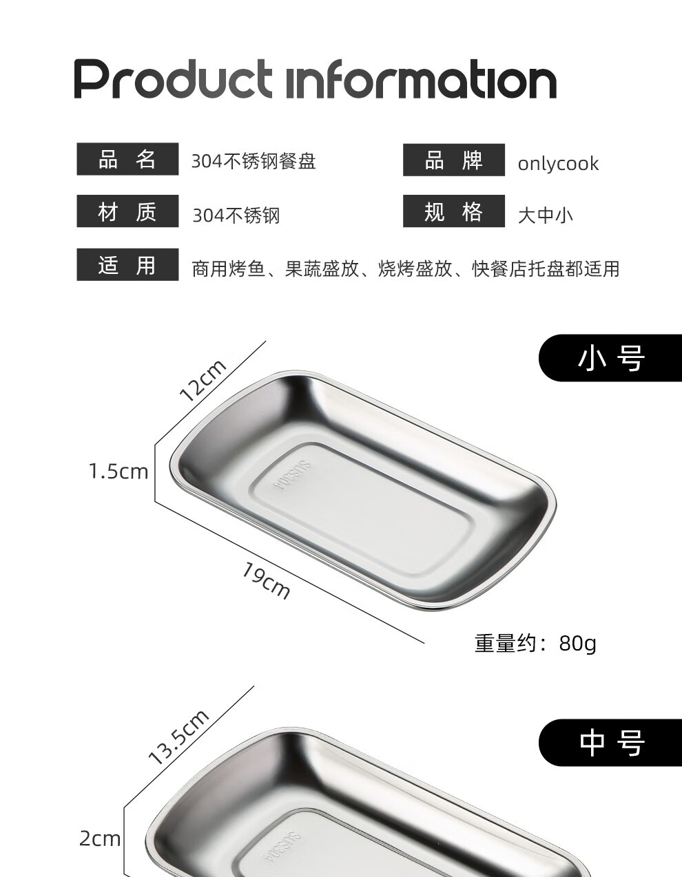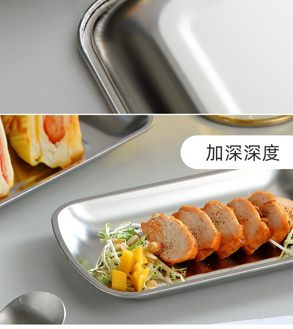 Onlycook dinner plate 304 stainless steel barbecue hot pot side dish home kitchen plate preparation plate tray square plate large/single
