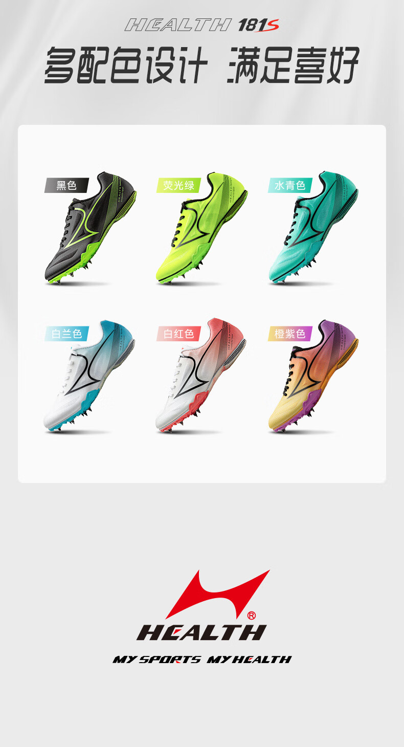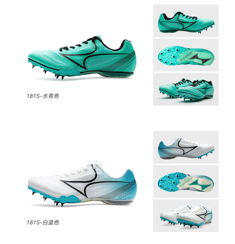 HEALTH spikes track and field middle and short running shoes male and female students professional competition sports track and field spike shoes 181S 181s white gradually blue 38