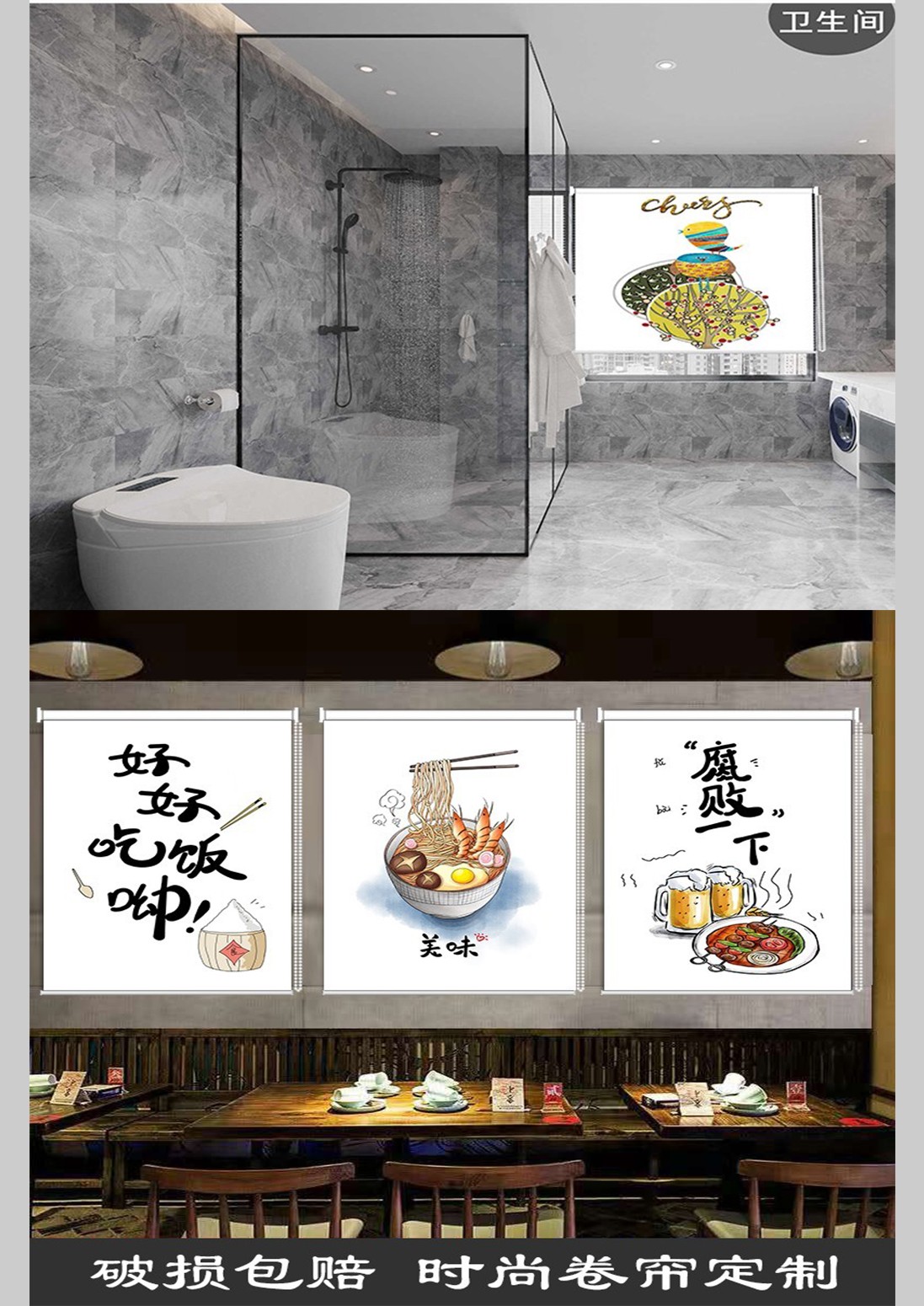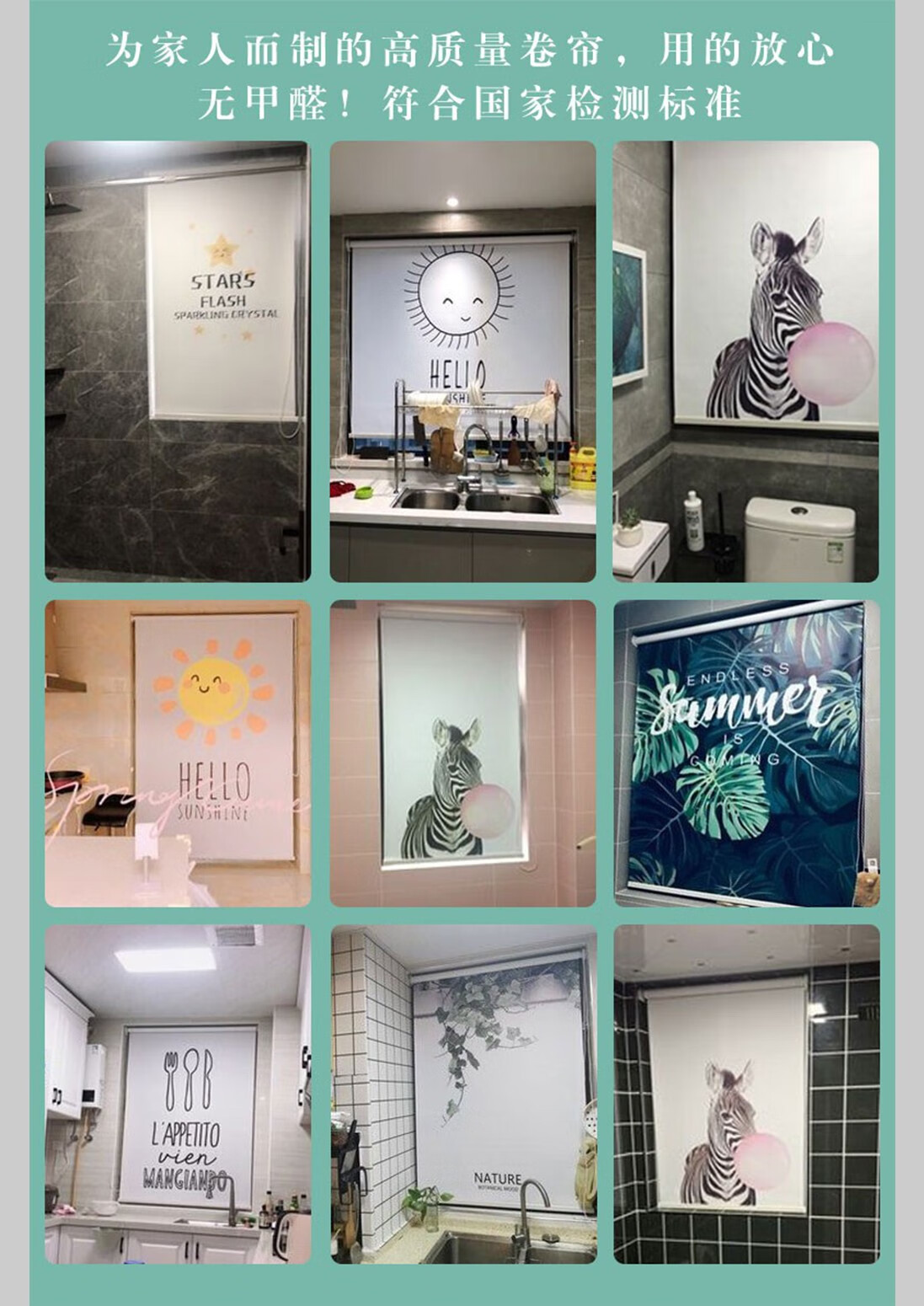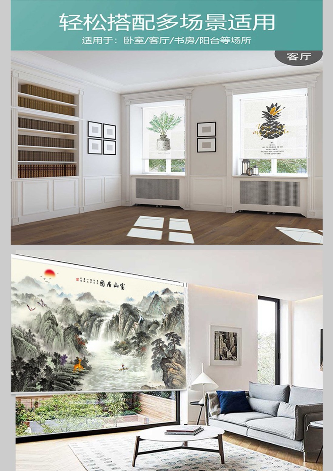 Youruige roller blinds can be lifted and lowered without punching, roller-pull light-shading, landscape, living room, office, balcony, kitchen, waterproof, fortune-making pictures from all directions, customized size