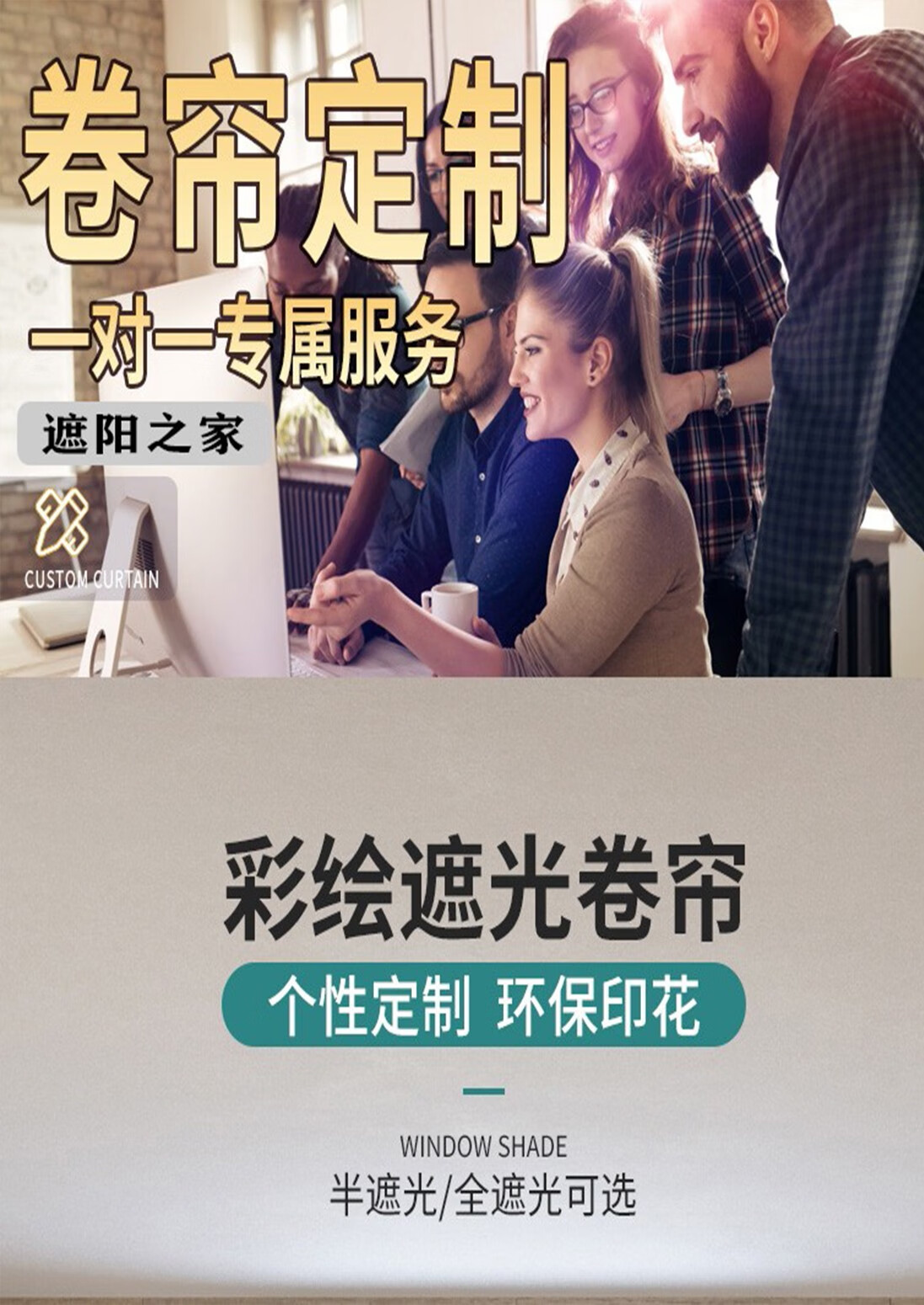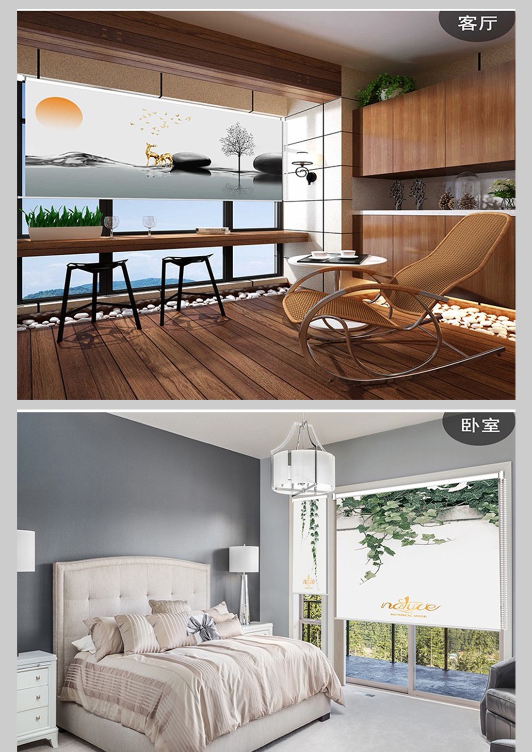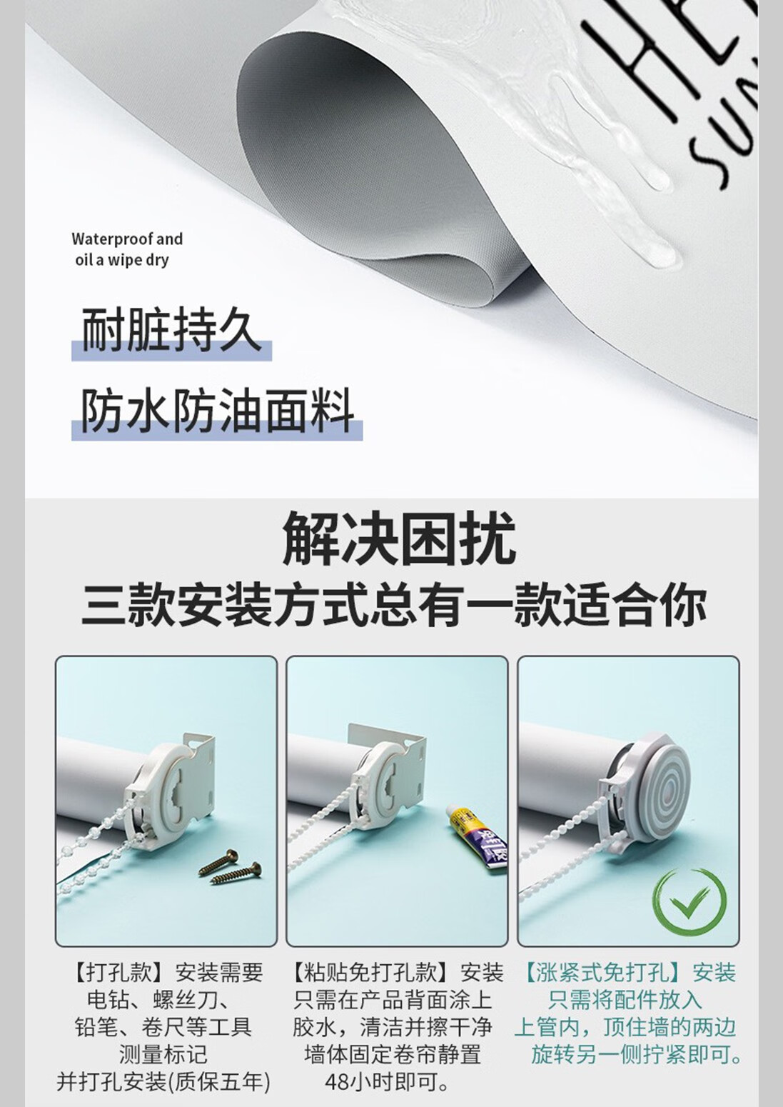 Youruige roller blinds can be lifted and lowered without punching, roller-pull light-shading, landscape, living room, office, balcony, kitchen, waterproof, fortune-making pictures from all directions, customized size