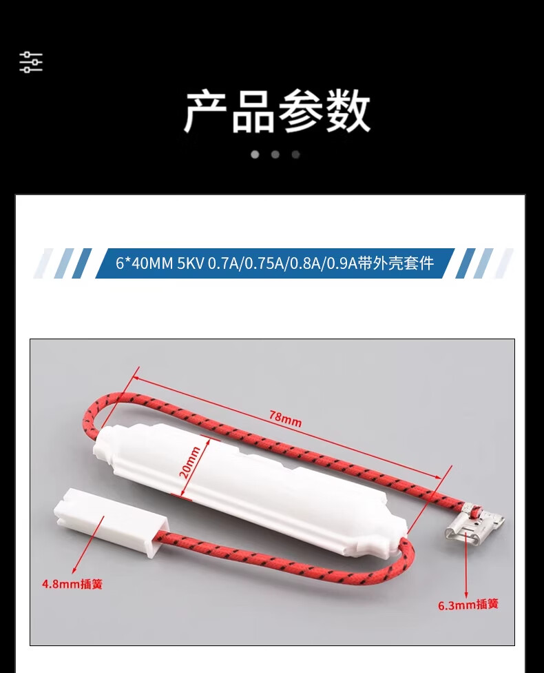 ZAVE Microwave oven high voltage fuse with shell fuse kit 6*40mm 5KV 0.8A with shell kit (all-in-one fuse) suitable for Midea Galanz