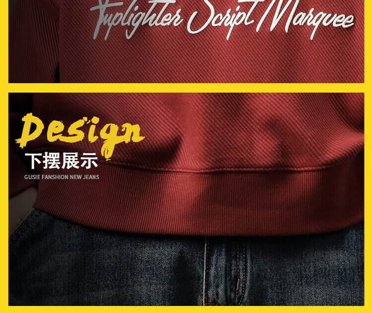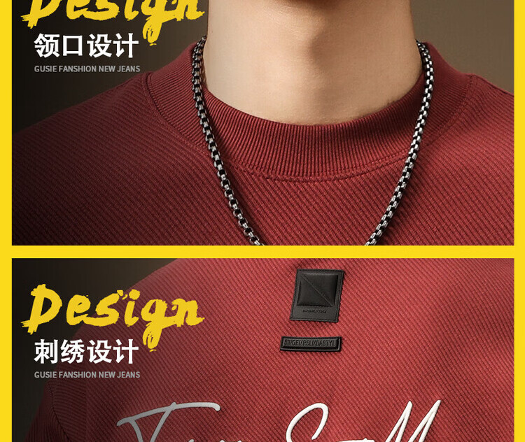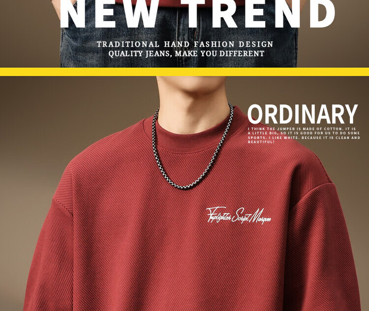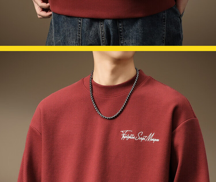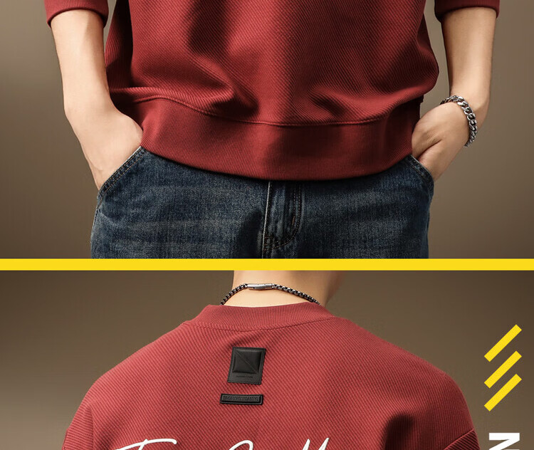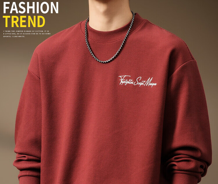 Noble color high-end heavyweight round neck sweatshirt men's trendy brand loose large size spring and autumn printed top pullover long-sleeved T-shirt