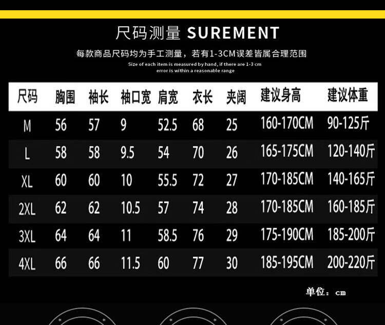 China (cm) 165 / 88-90 170 / 96-98 175 / 108-110 180 / 118-122 185 / 126-130