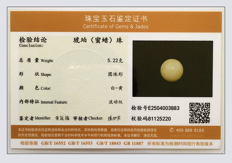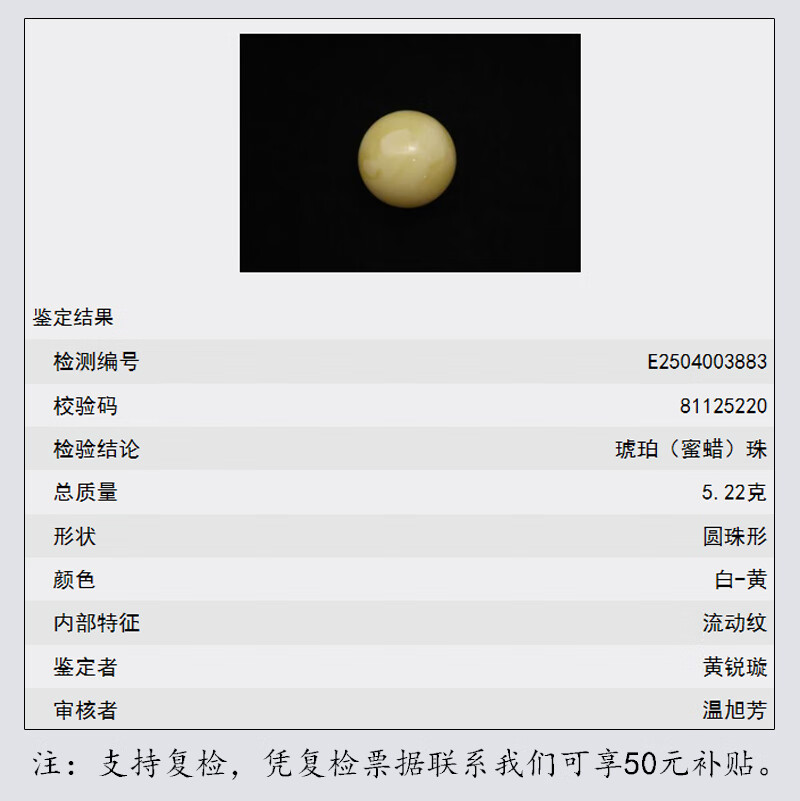 Hupai, one thing, one picture, one certificate, single beeswax round beads for men and women, Buddha beads full of honey, white flower, beeswax loose beads, Russian material, round beads, 5.22 g, 20.8 mm