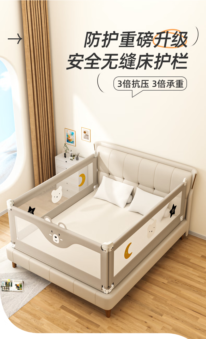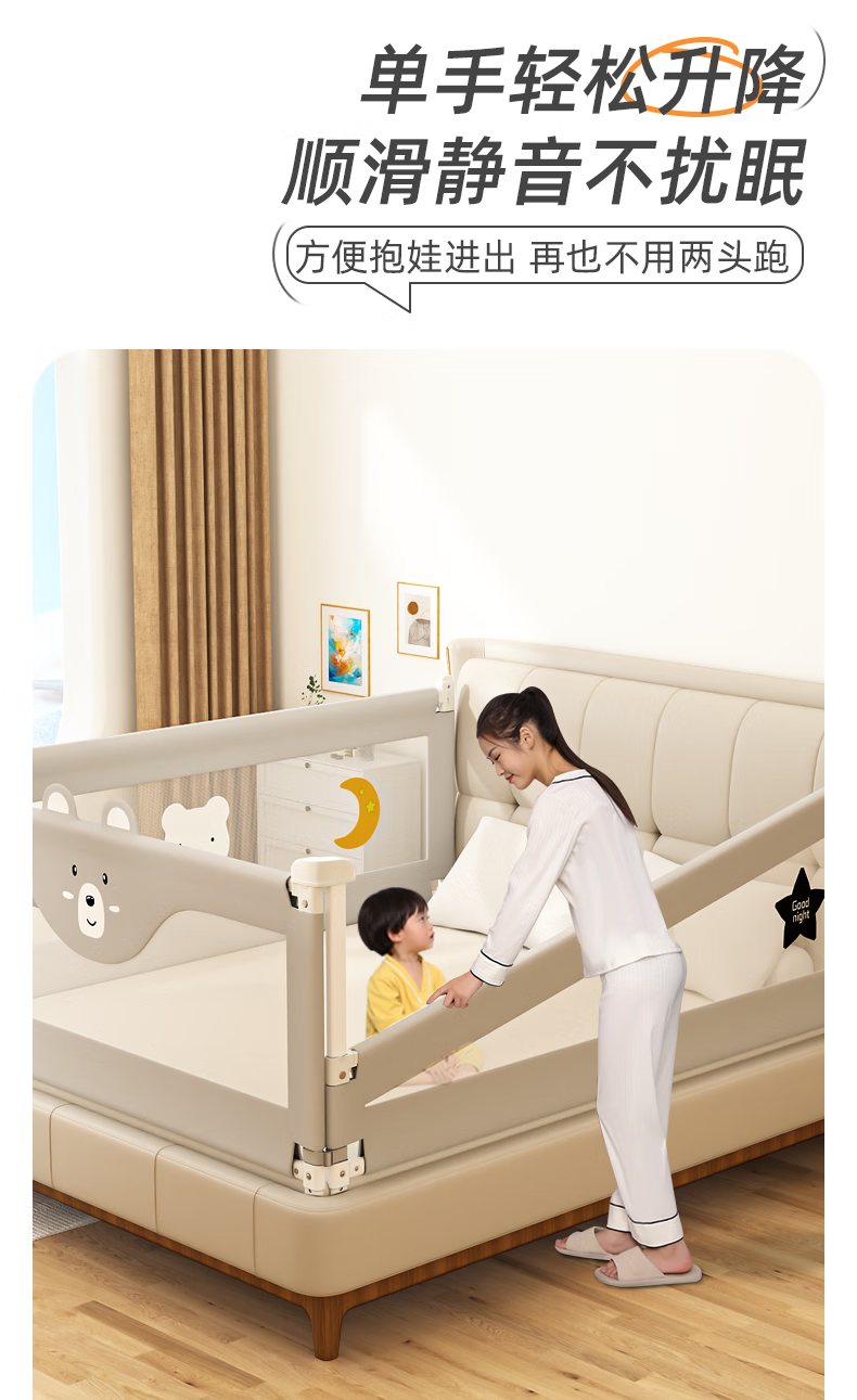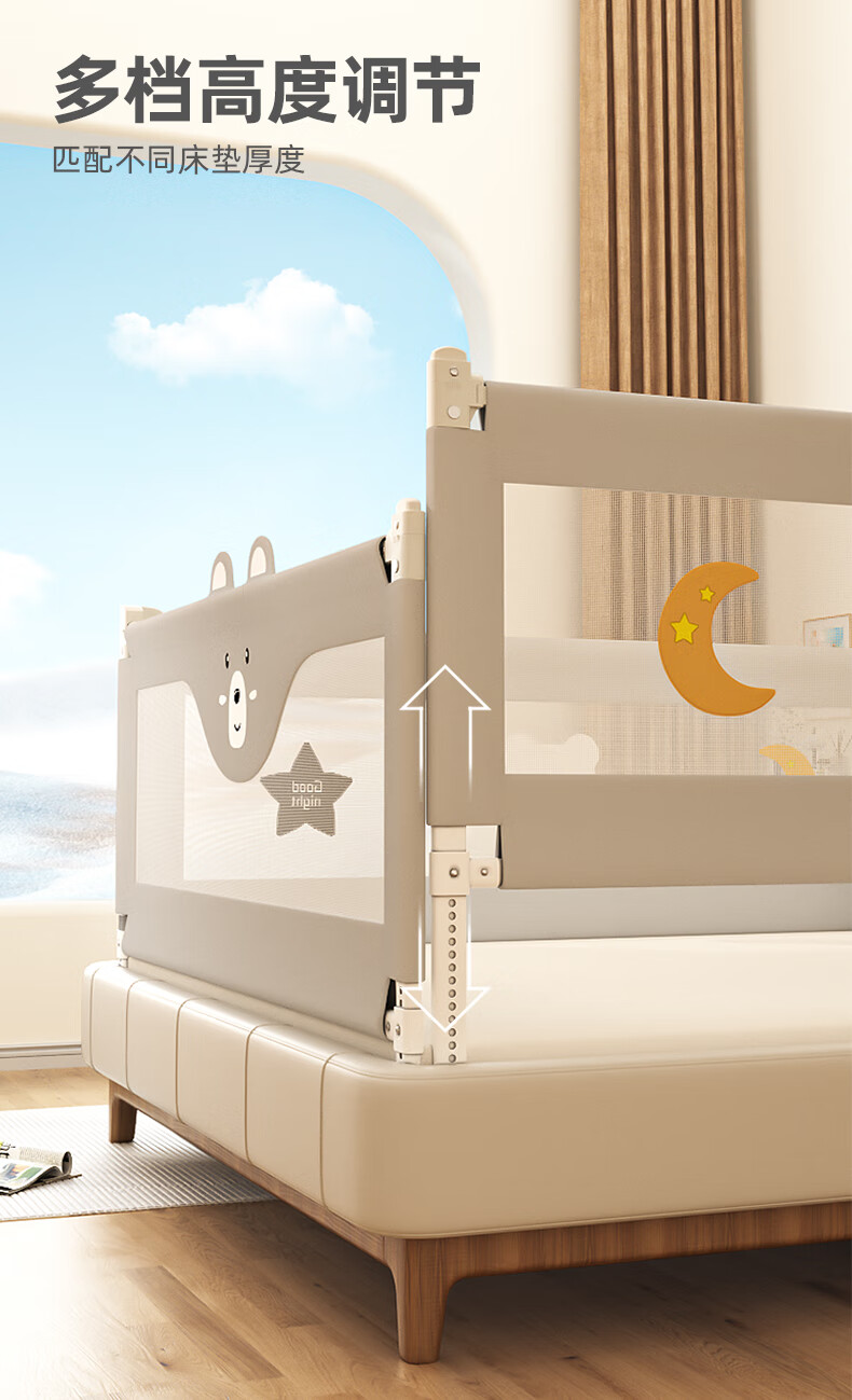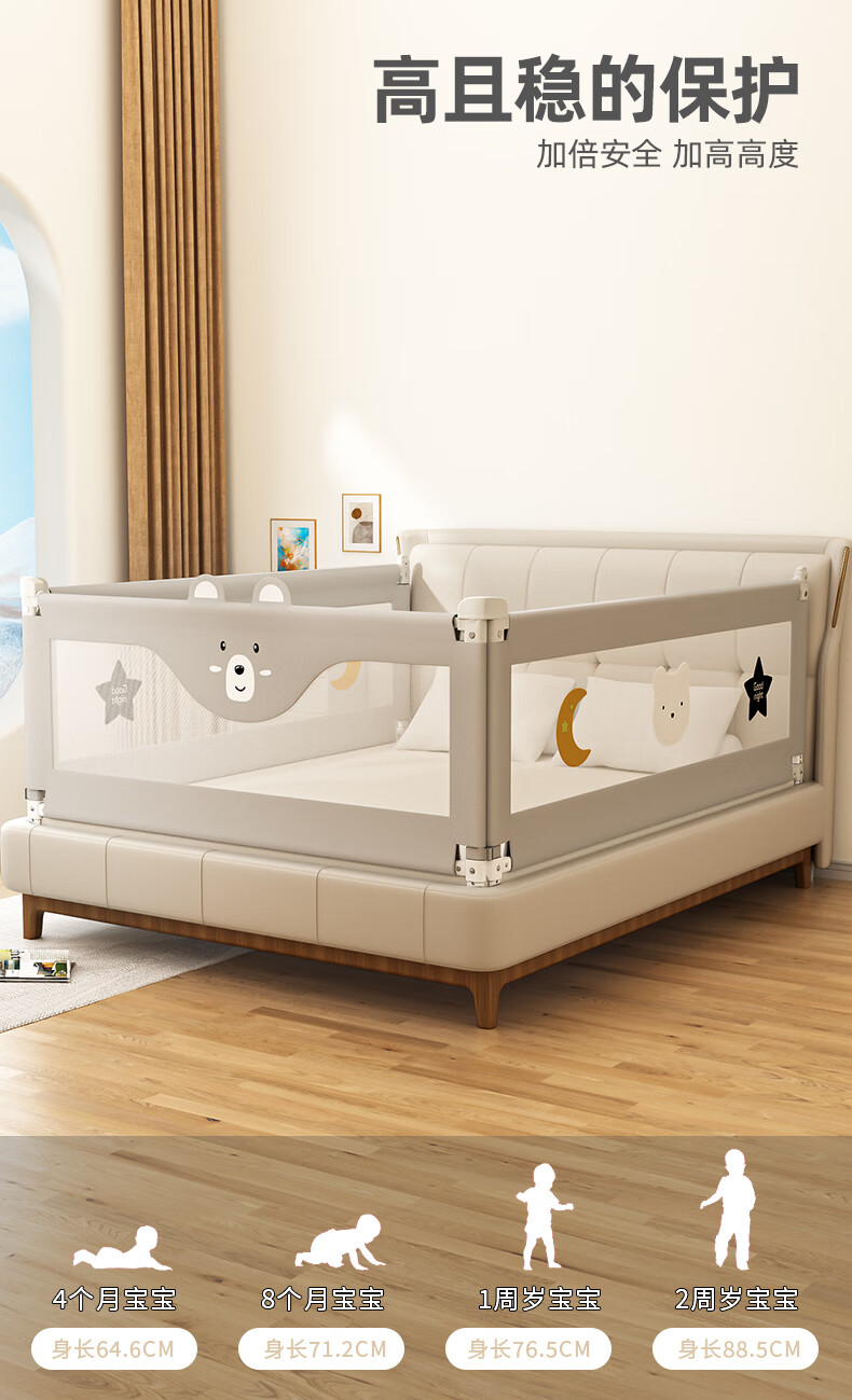 Guanlilang bed fence baby crib guardrail baby heightening anti-fall and anti-fall three-sided bedside vertical lifting fence Hanhan Bear 1 + gray star * 2 three-sided installation three-piece combination (1.8 meters + 2.0 meters + 2.0 meters)