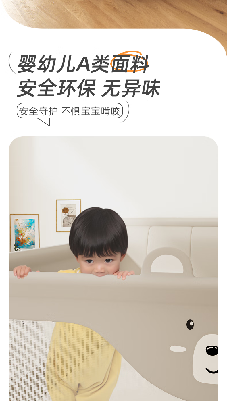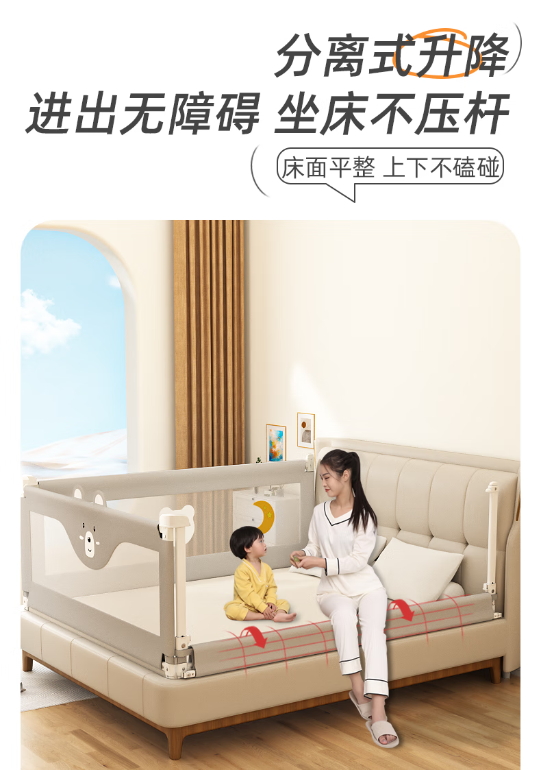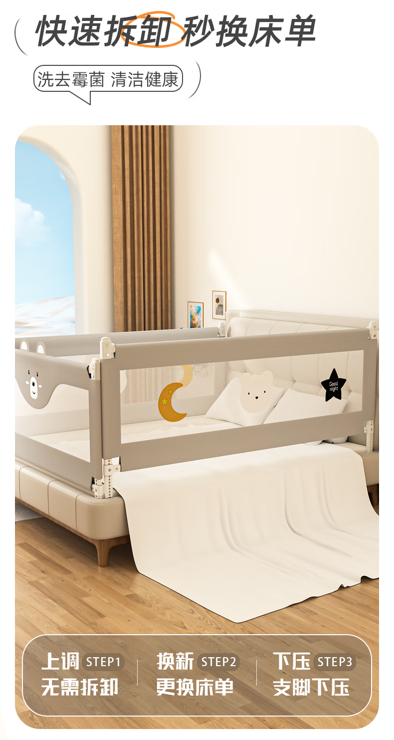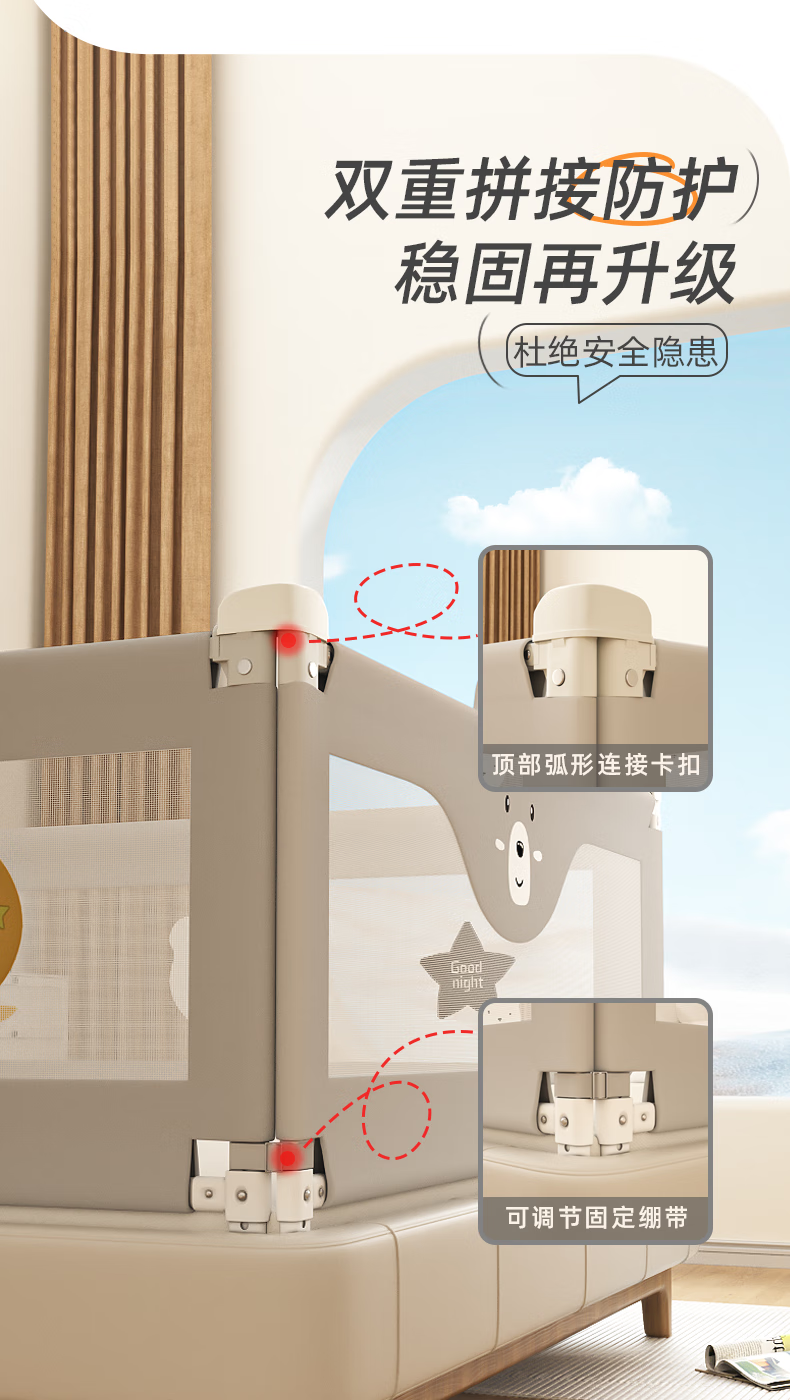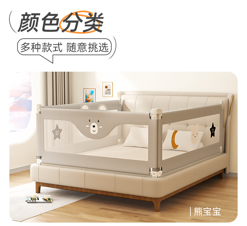 Guanlilang bed fence baby crib guardrail baby heightening anti-fall and anti-fall three-sided bedside vertical lifting fence Hanhan Bear 1 + gray star * 2 three-sided installation three-piece combination (1.8 meters + 2.0 meters + 2.0 meters)