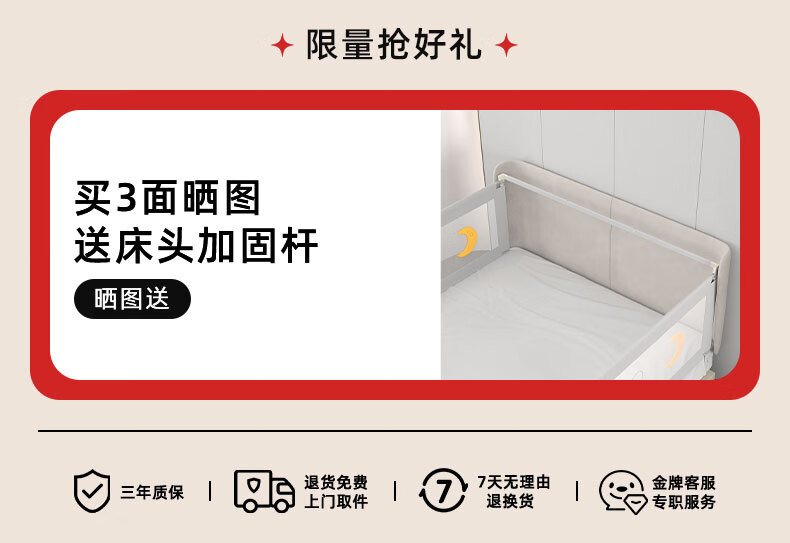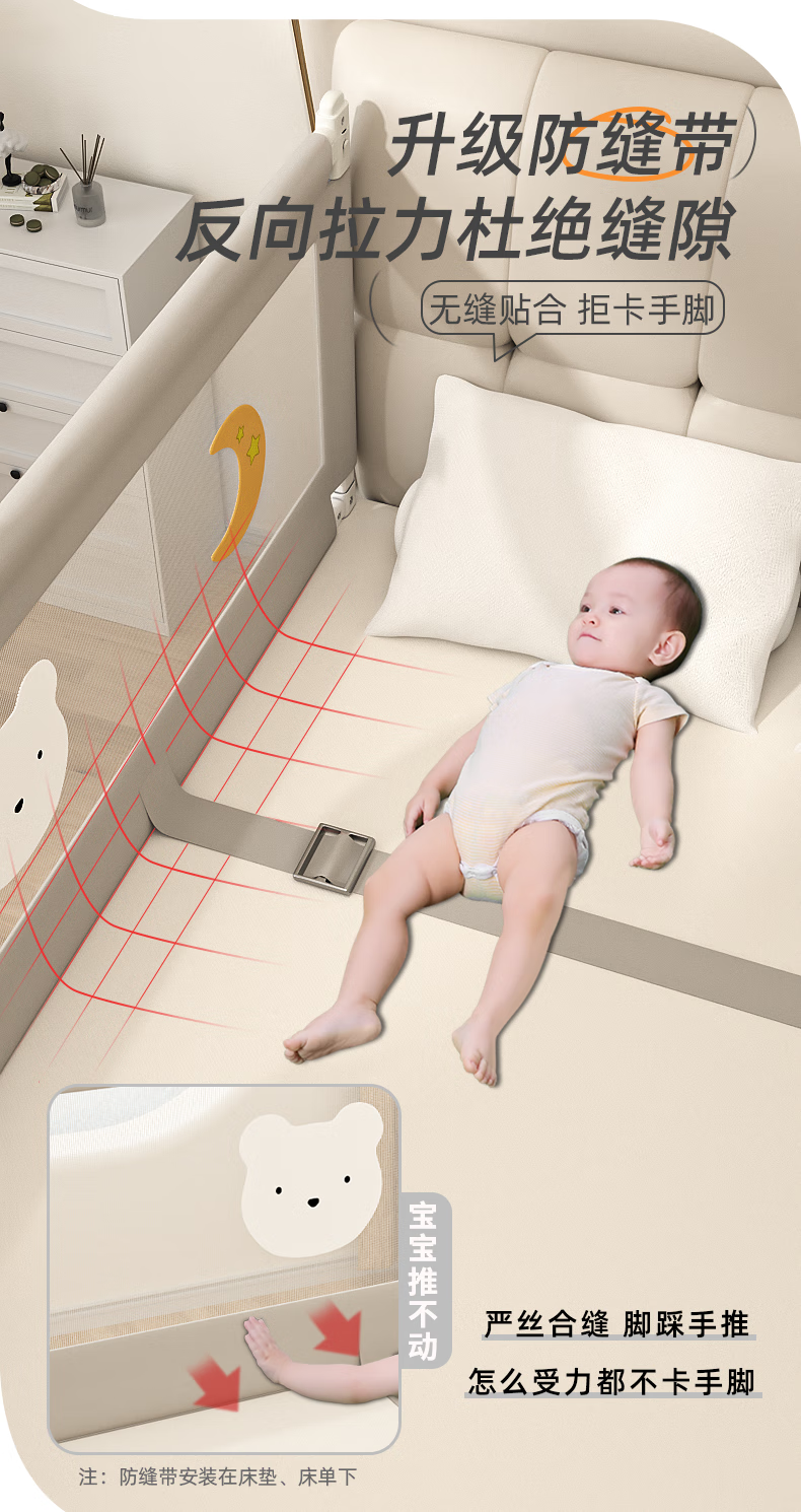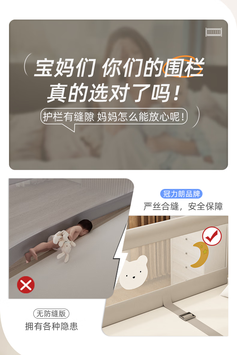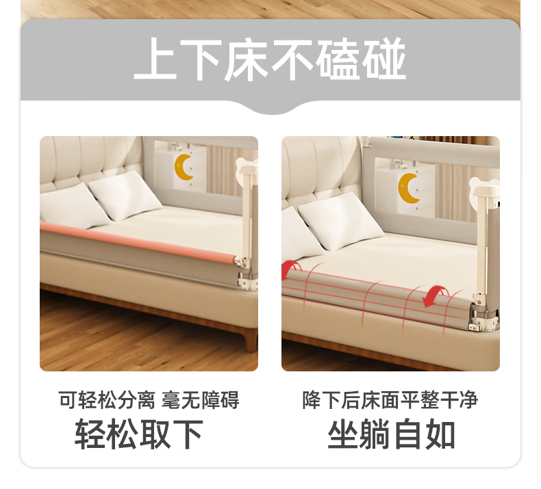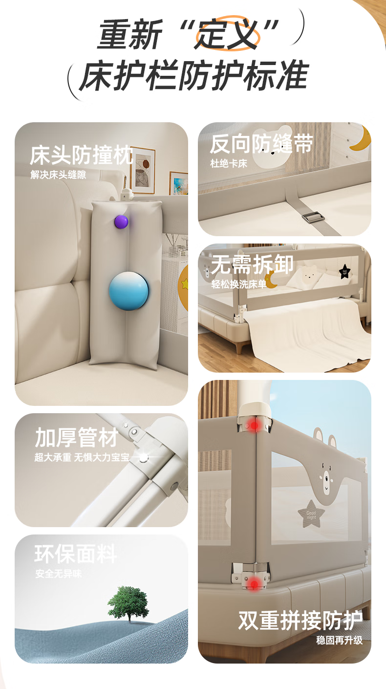 Guanlilang bed fence baby crib guardrail baby heightening anti-fall and anti-fall three-sided bedside vertical lifting fence Hanhan Bear 1 + gray star * 2 three-sided installation three-piece combination (1.8 meters + 2.0 meters + 2.0 meters)