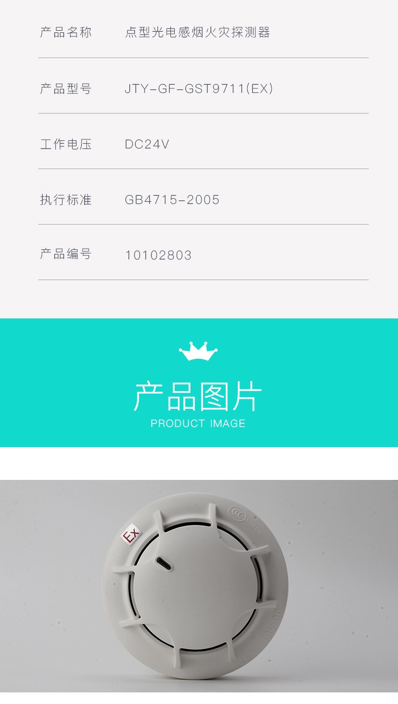 Bay explosion-proof smoke detector JTY-GF-GST9711 (Ex) point type photoelectric smoke fire detector 9711EX including base