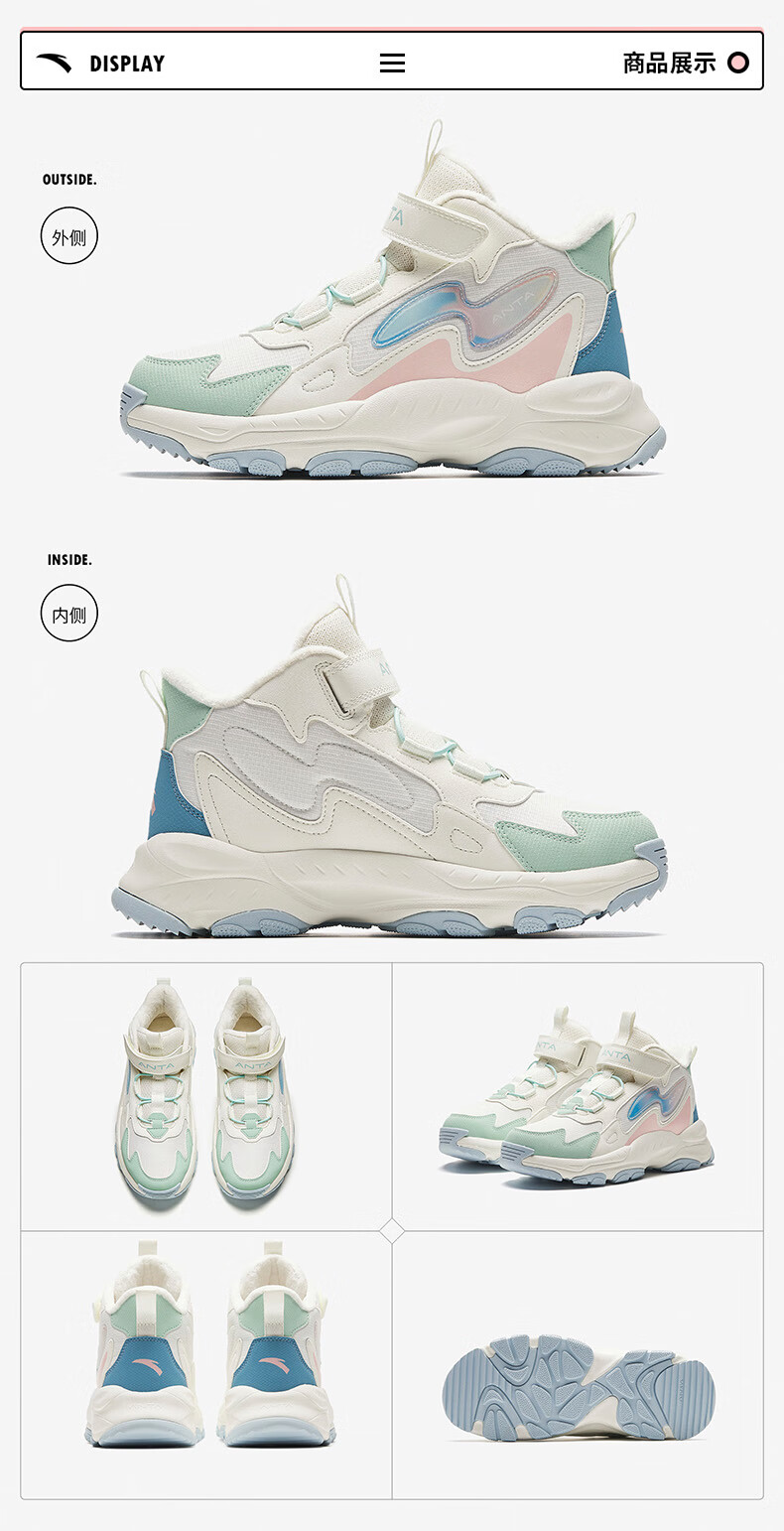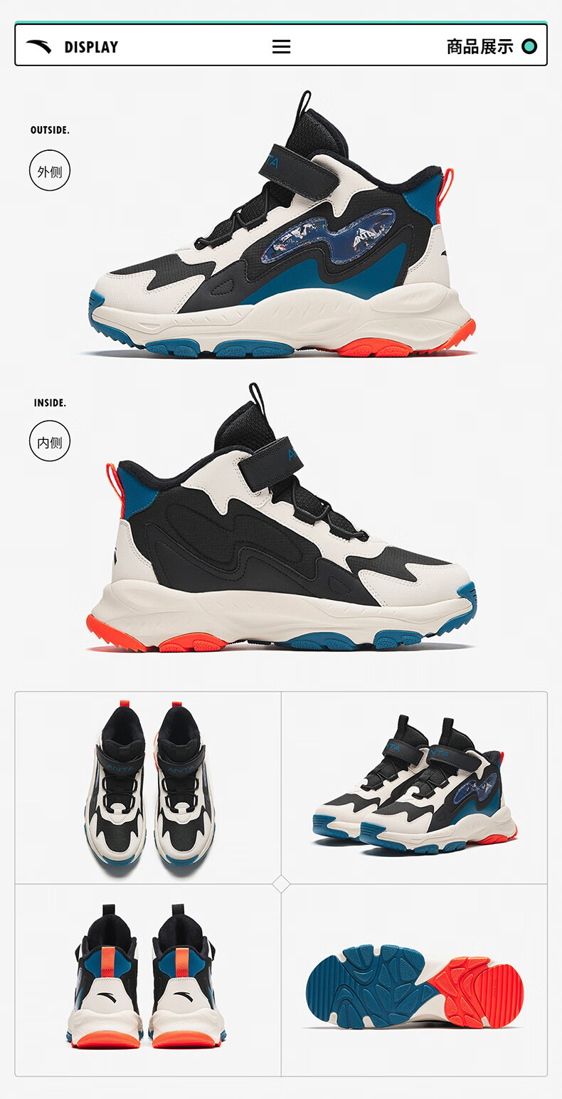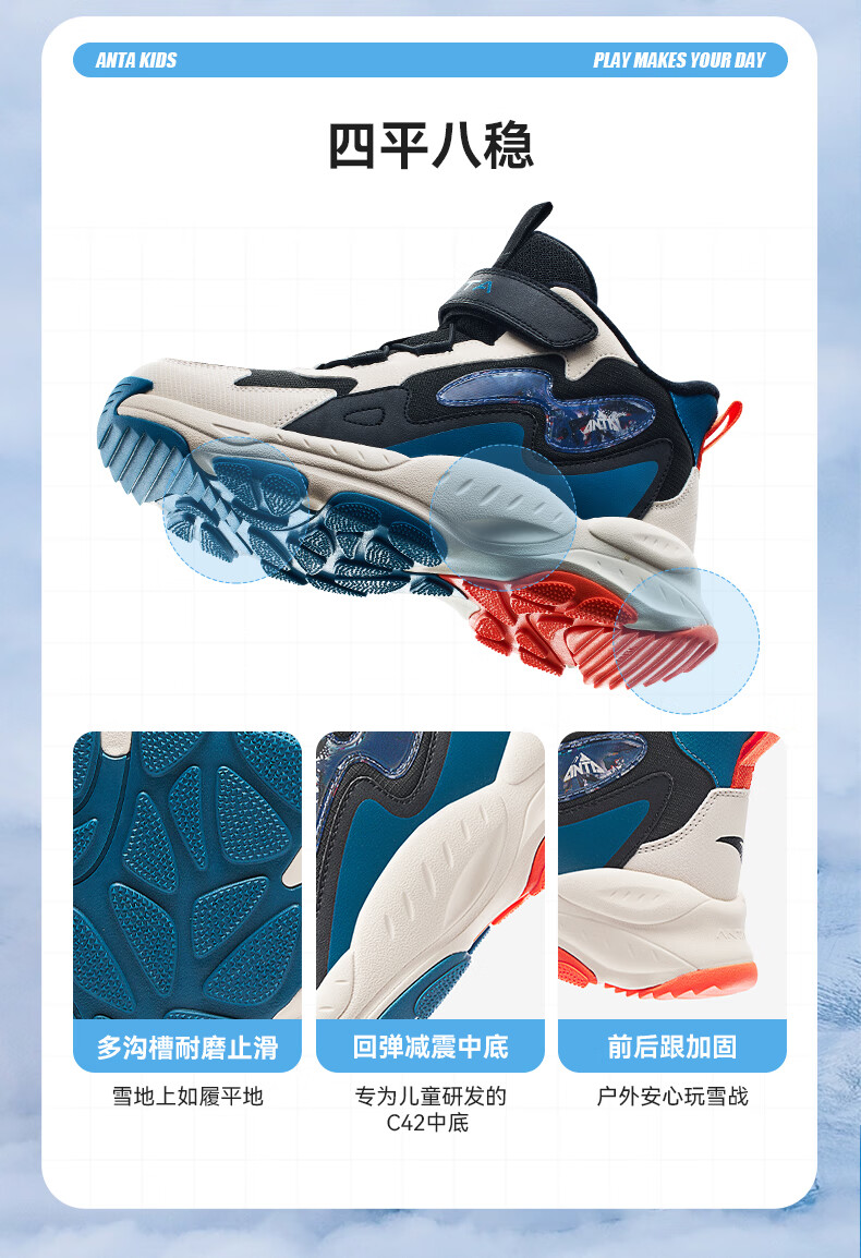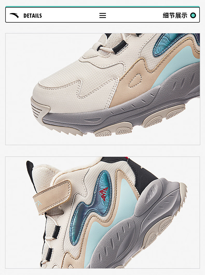 Anta children's cotton shoes winter shoes short boots plus velvet boys snow boots cotton boots big children's sports shoes A312346922J