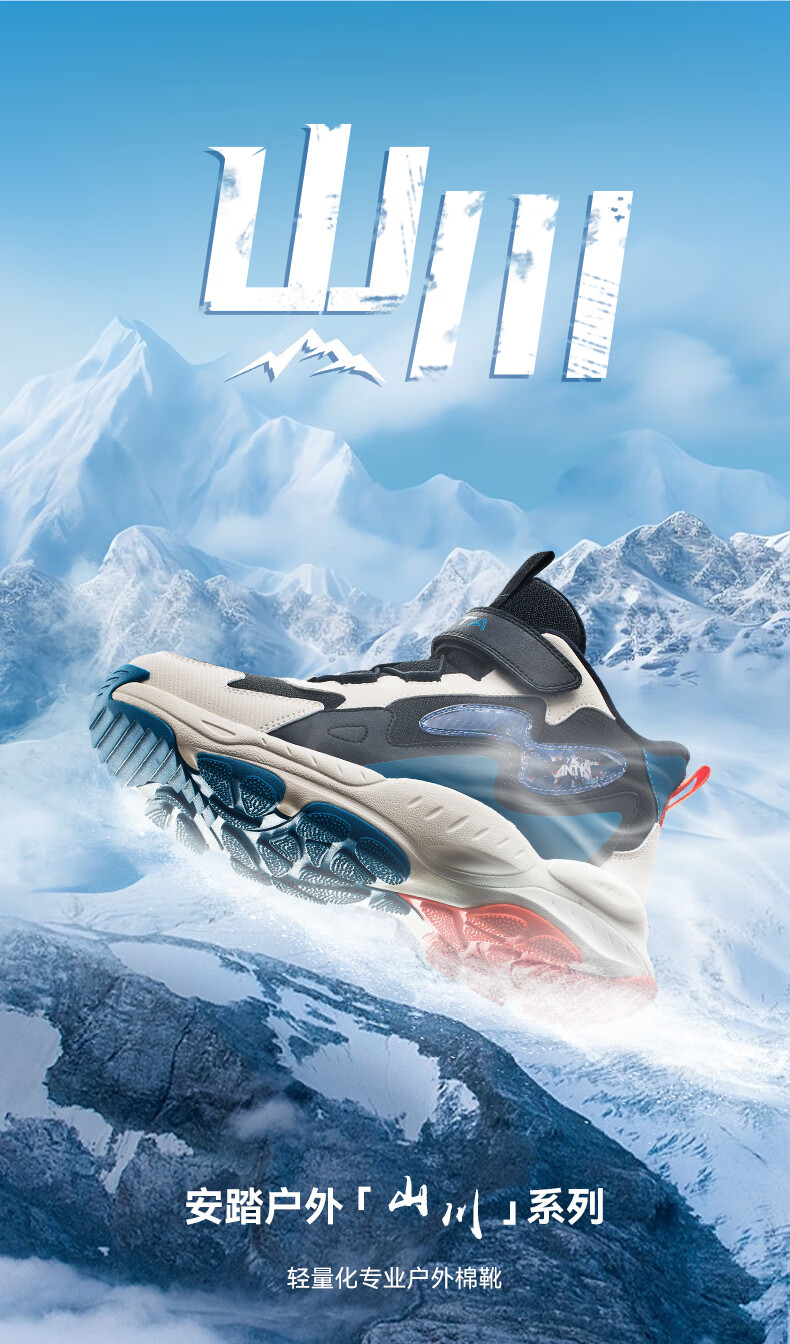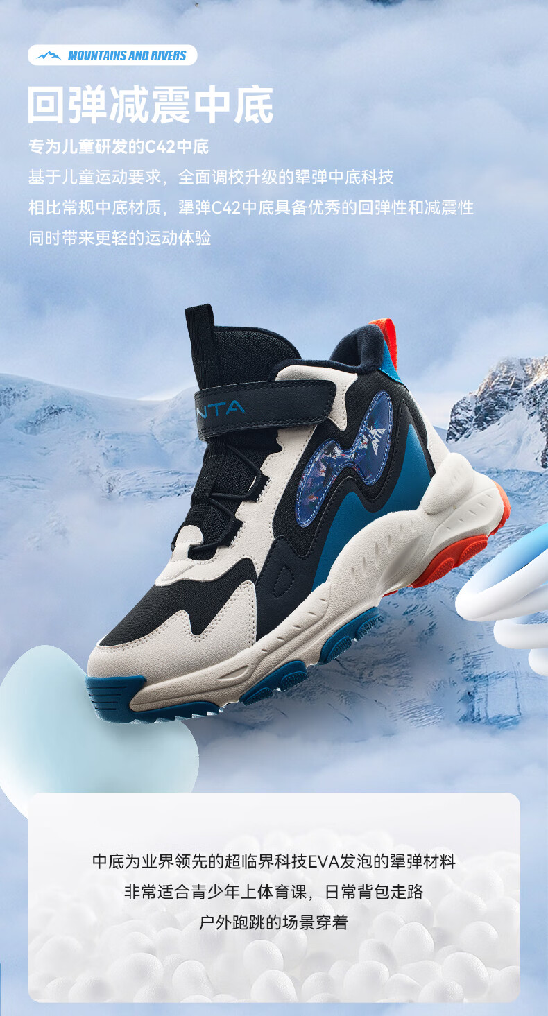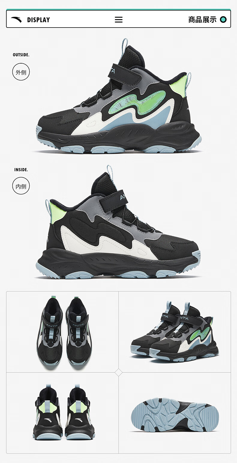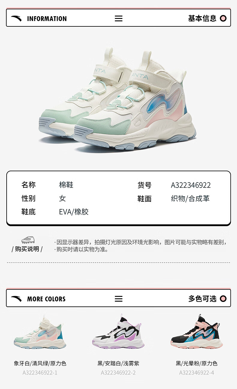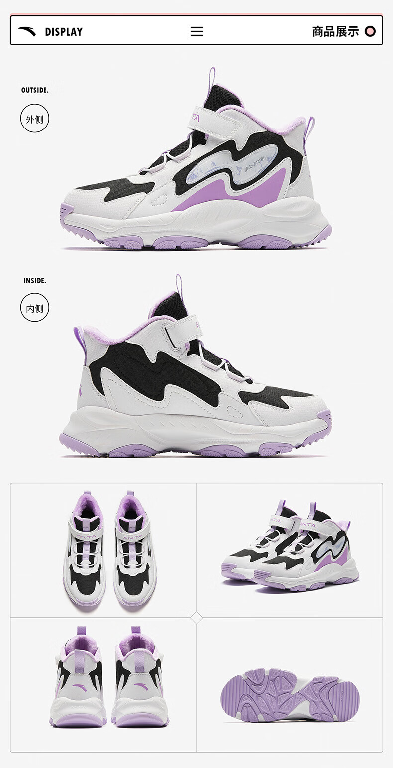 Anta children's cotton shoes winter shoes short boots plus velvet boys snow boots cotton boots big children's sports shoes A312346922J