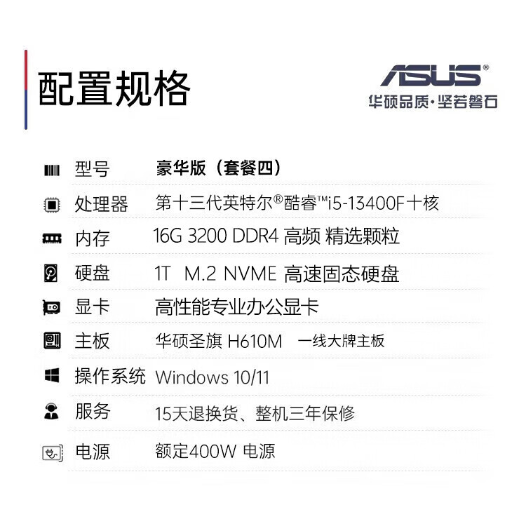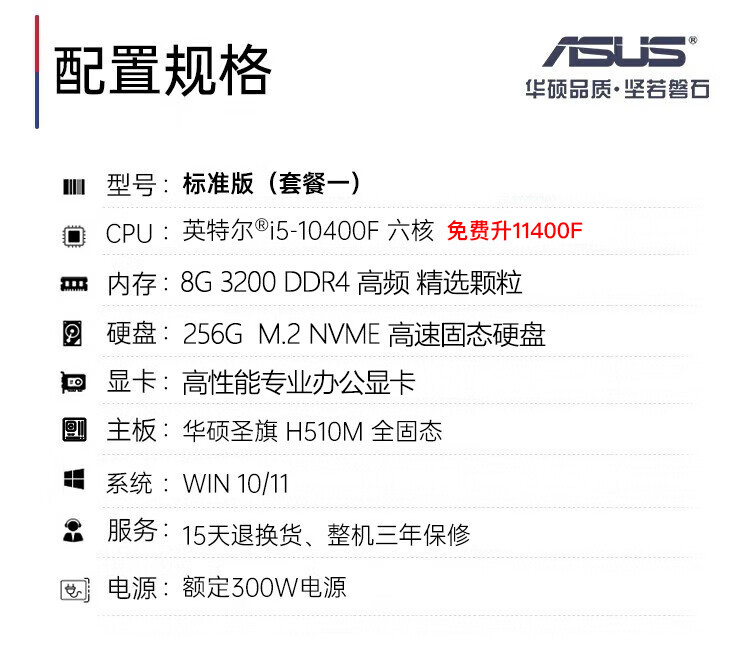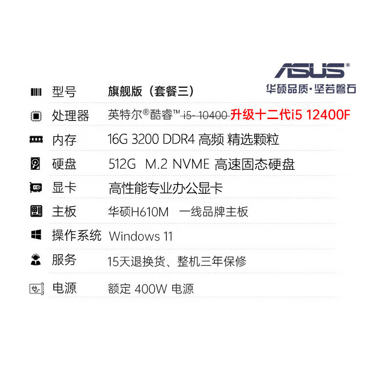 ASUS Core i5-10th Generation 10400F/12400 12th Generation Enterprise Office Core Display Desktop Computer Host Commercial Computer DIY Assembly Machine Customer Service Cashier Front Desk Office Upgraded Version Package Two (10th Generation i5+16G+512G/Independent Display)