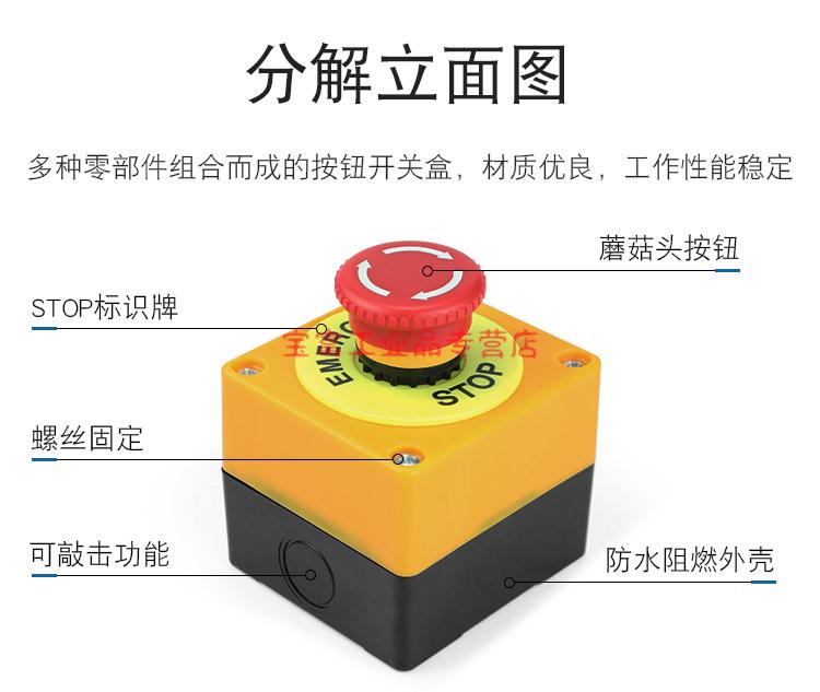 Elevator freight elevator safety STOP emergency stop button switch box with protective cover rainproof emergency stop three-position start emergency stop switch combination set