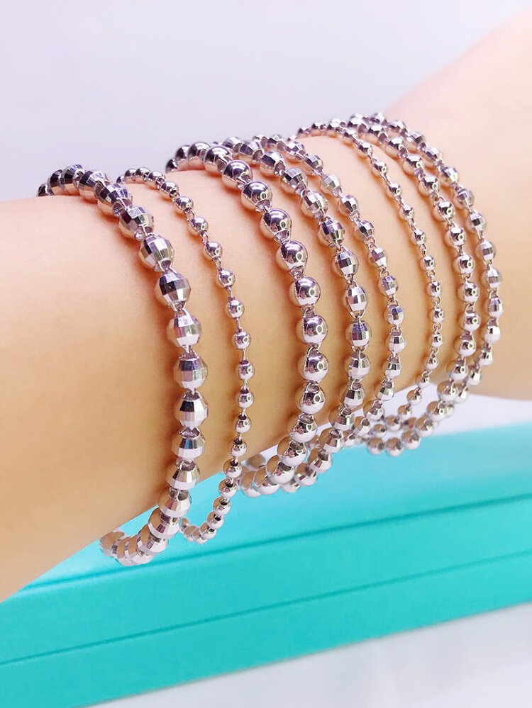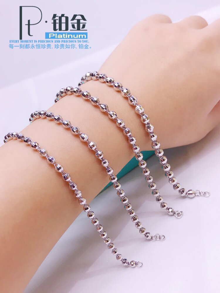 Heye Jewelry Bright Eyes Flash-cut Laser Transfer Beads Platinum Bracelet Women's pt950 Women's Platinum Platinum Platinum 4.5mm Thick 7.90g 16cm Adjustment