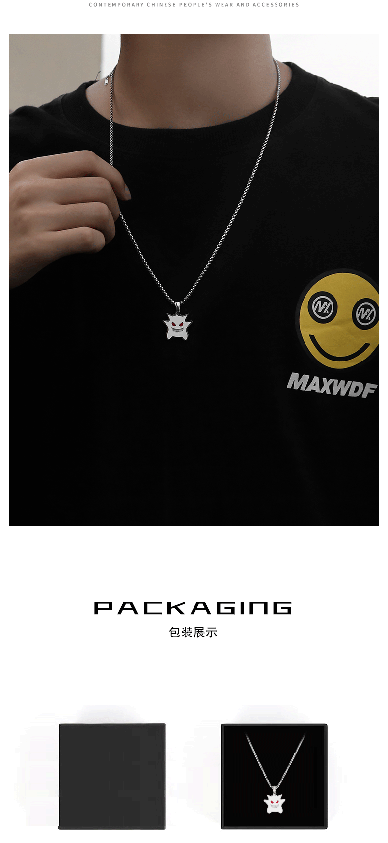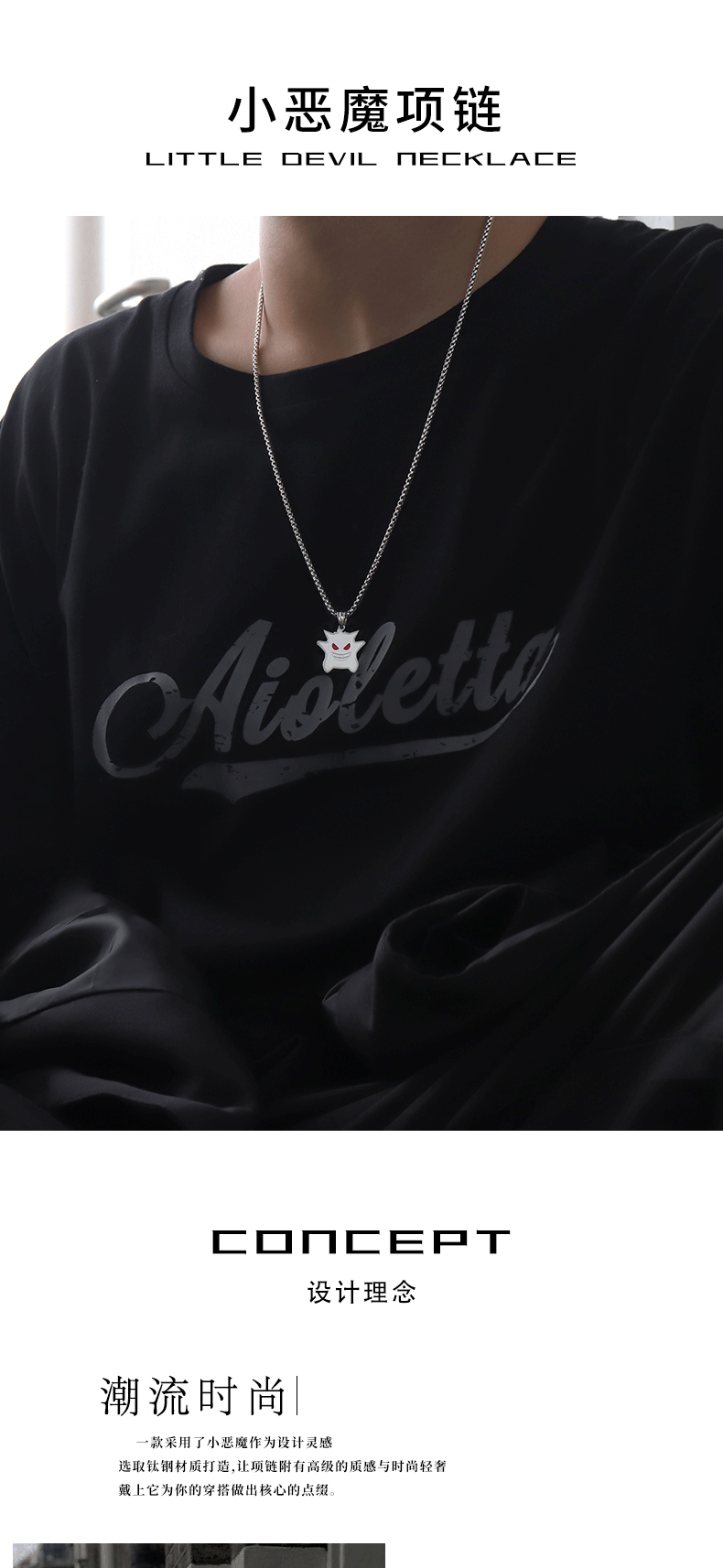 Qi Xiaomi original little devil men's necklace men's trendy titanium steel pendant chain street versatile sweater chain accessories for boyfriend