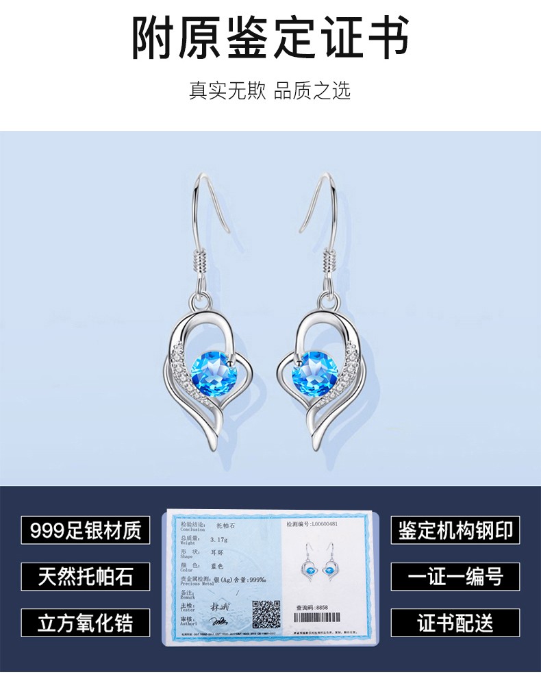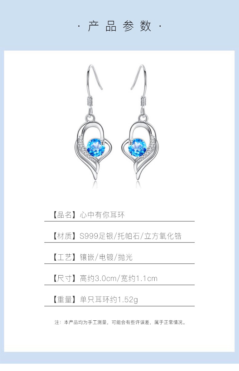 Dirholl Brand I Love You Earrings, Feminine Earrings, Crystal Earrings, High-end Earrings, Birthday Gifts for Your Girlfriend, I Love You Topaz Earrings, Exquisite Gift Box
