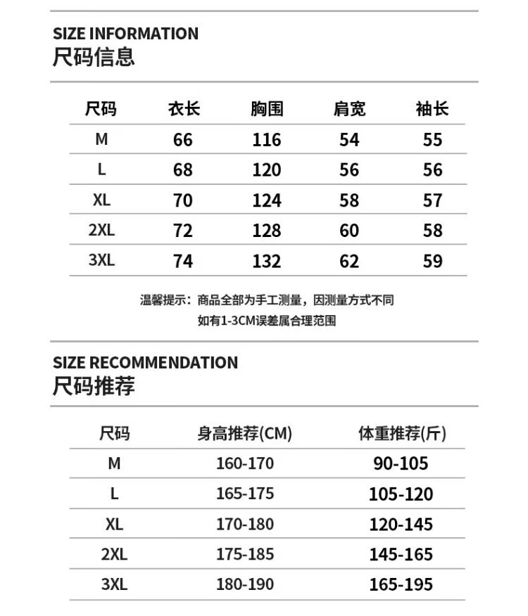 China (cm) 165 / 88-90 170 / 96-98 175 / 108-110 180 / 118-122 185 / 126-130