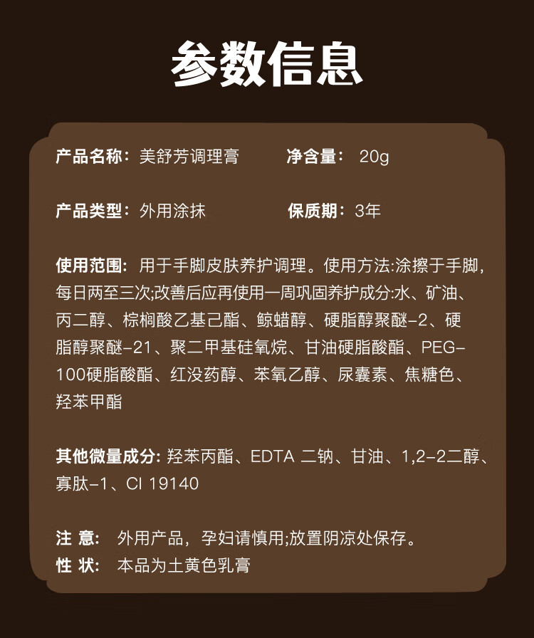 Meishufang Taiwan Meishufang Conditioning Cream Skin Taiwan Biotechnology Technology Repair Moisturizing Foot Cream 20g Brown 1 box
