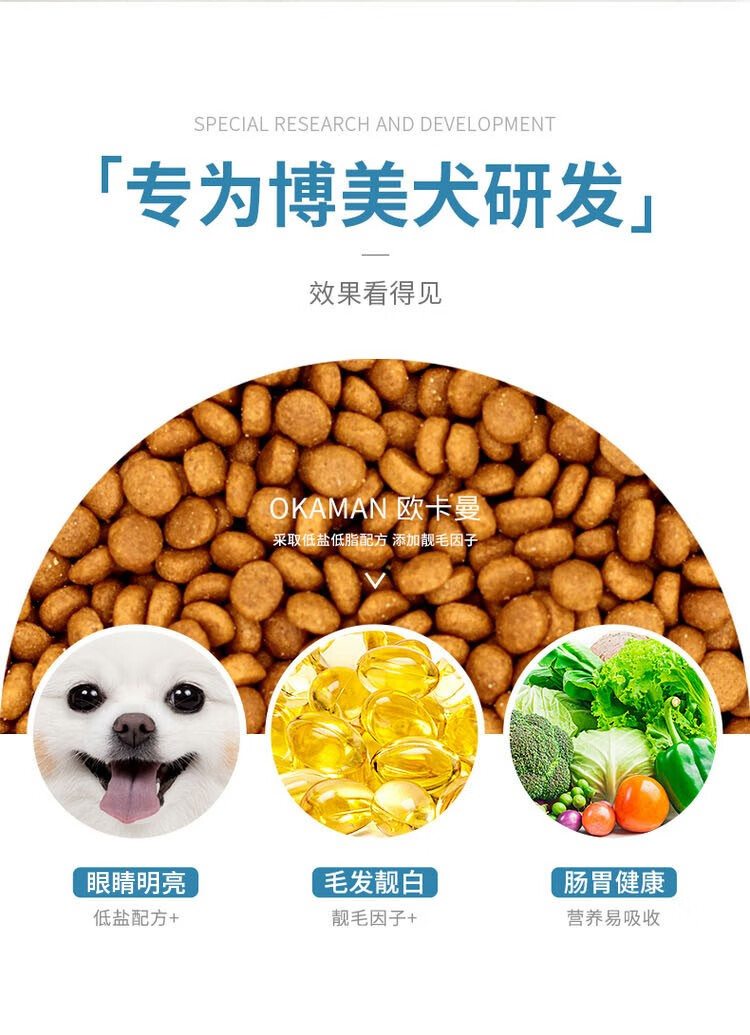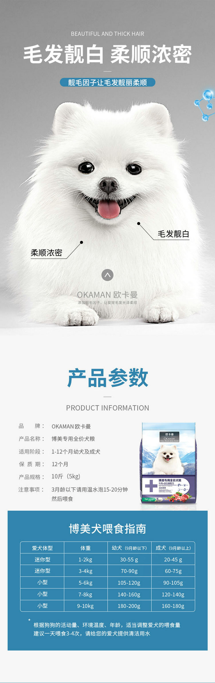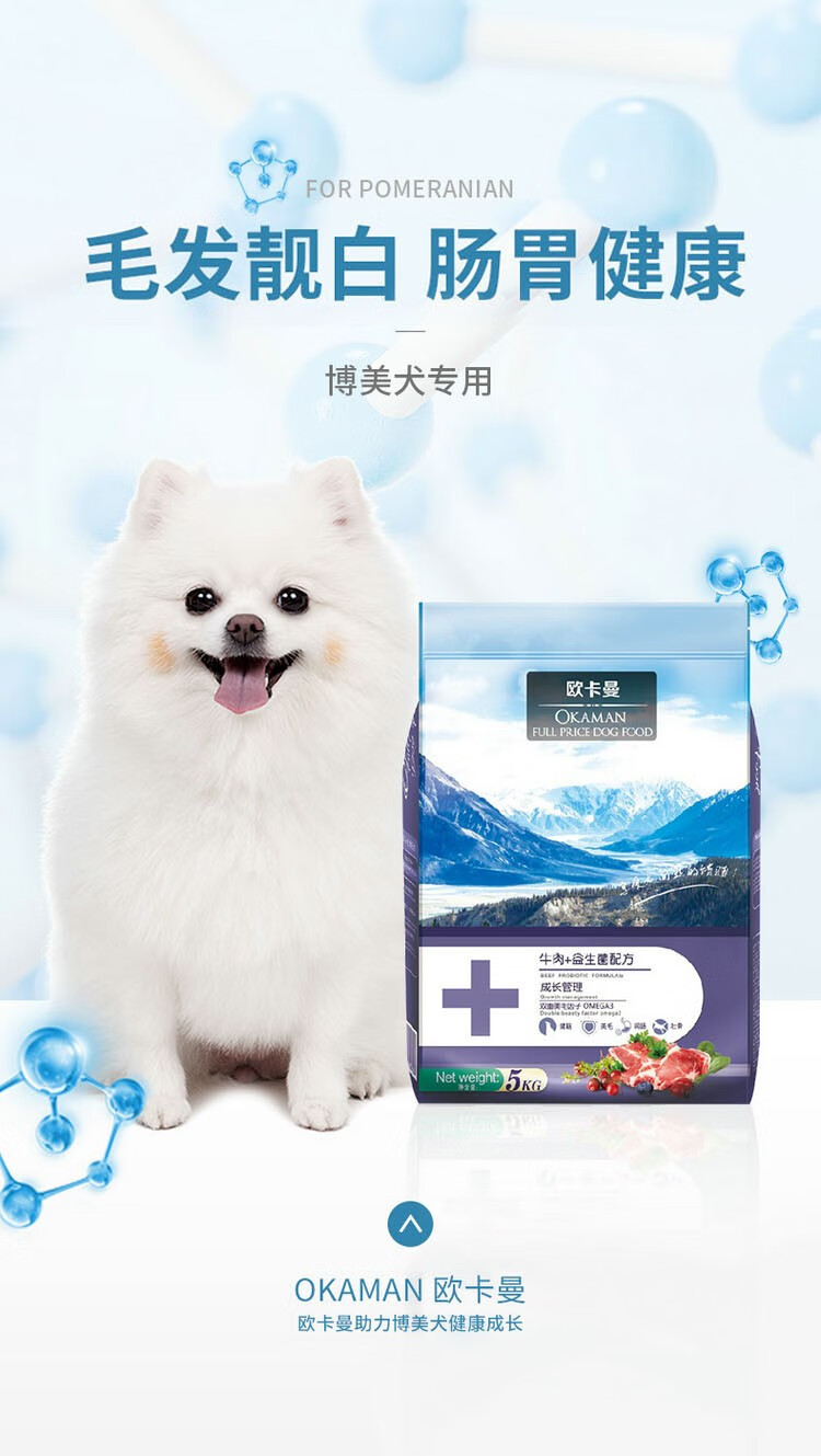 Okaman Pomeranian special dog food, puppy and adult dog food, general small dog white, natural 10 Jin Jin equal to 0.5 kg, Pomeranian special food 10 Jin Jin equal to 0.5 kg, packed