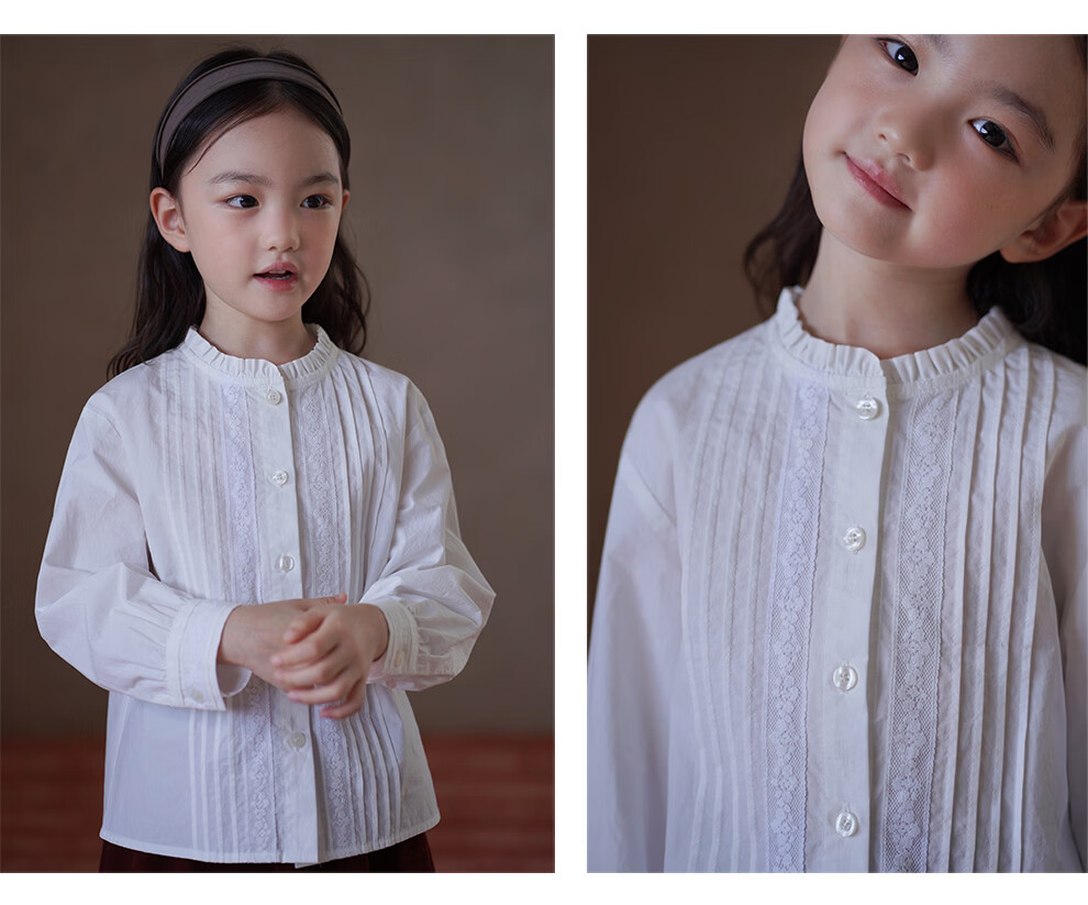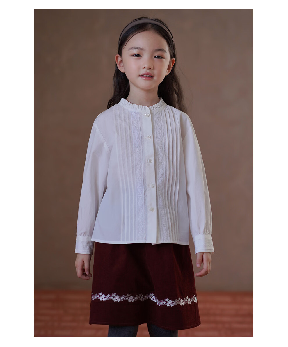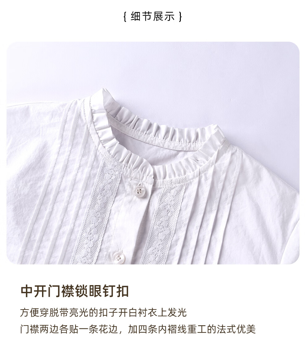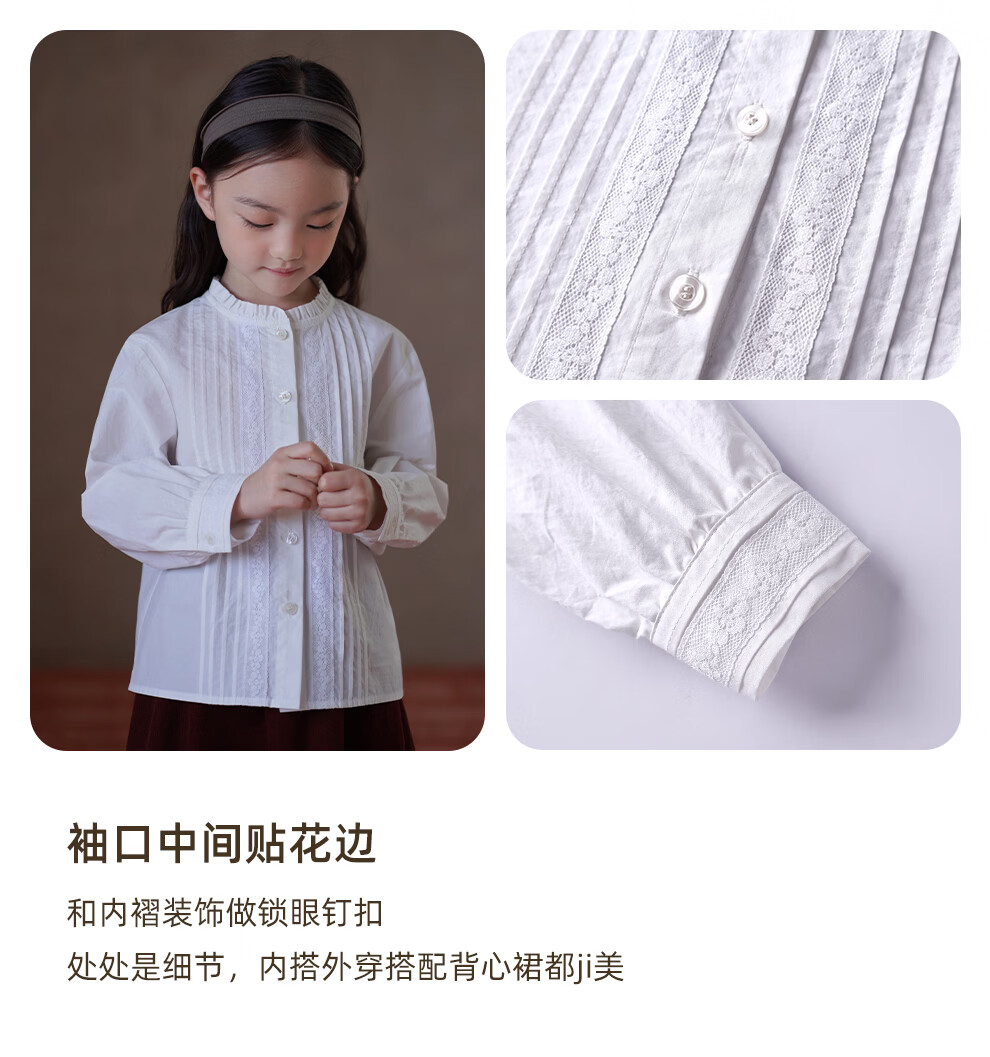哈齿(hacikis)哈齿童装春秋儿童法式文艺花边衬衫女童白衬衫亲肤全棉上衣中大童