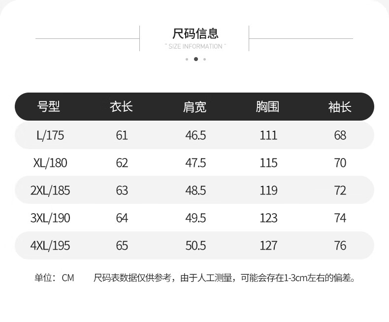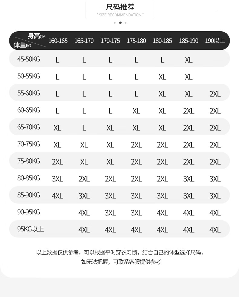 China (cm) 165 / 88-90 170 / 96-98 175 / 108-110 180 / 118-122 185 / 126-130