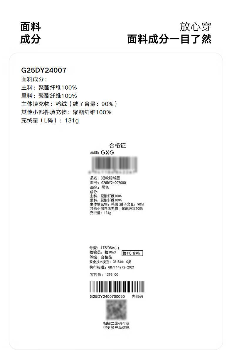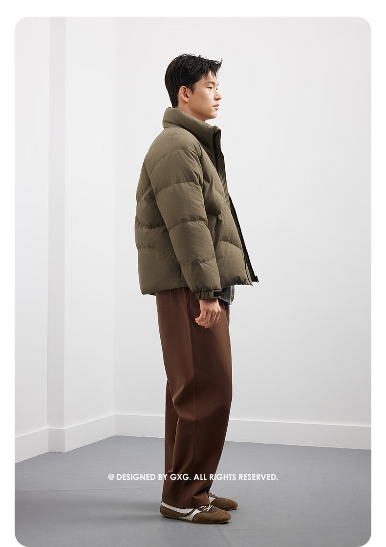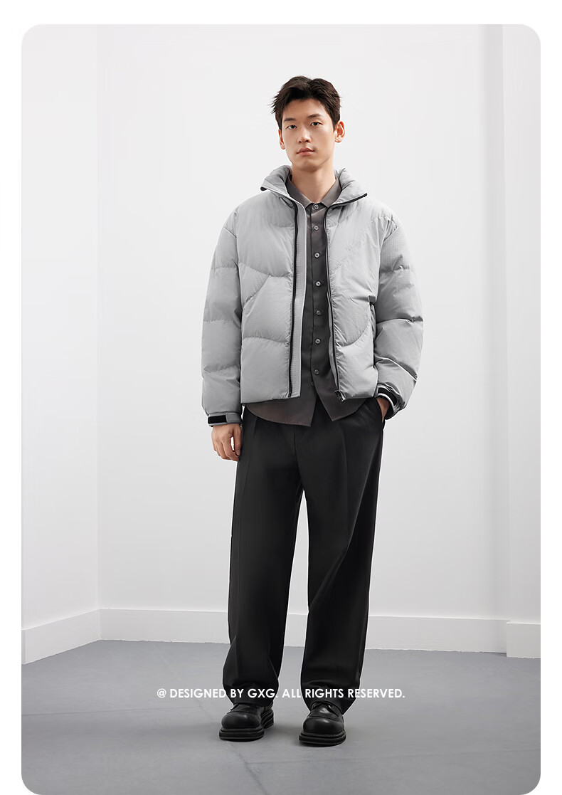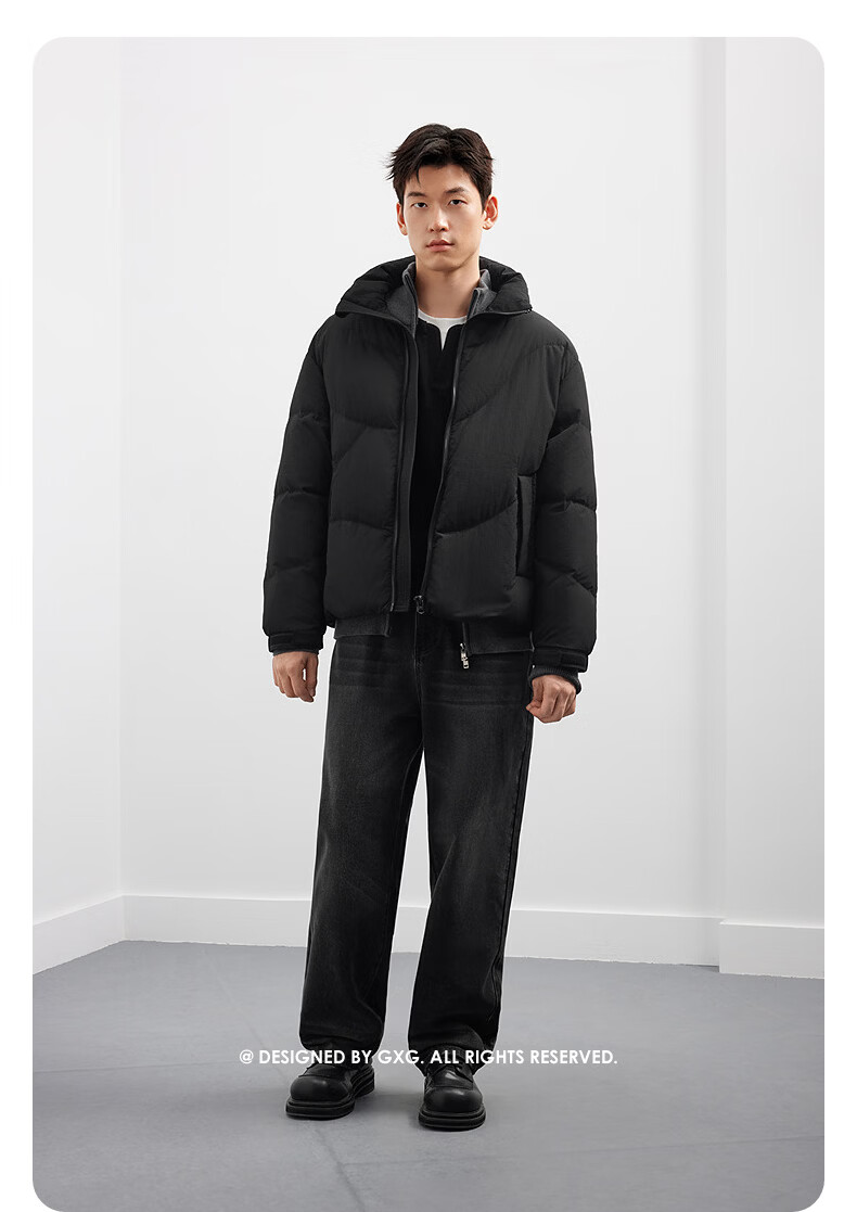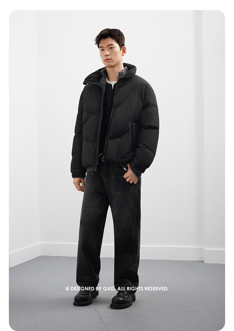 GXG Men's Solid Color Fashion Down Jacket 25 Winter New Stand Collar Classic Jacket Black 165/S