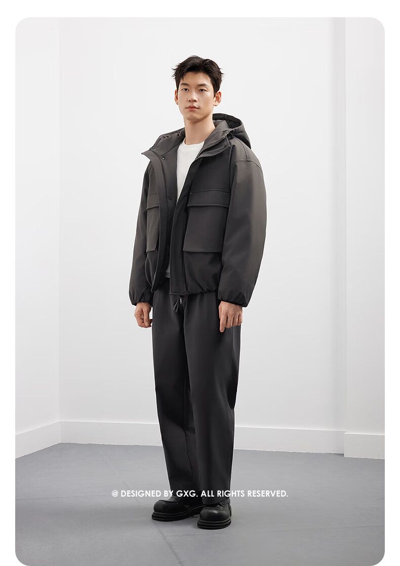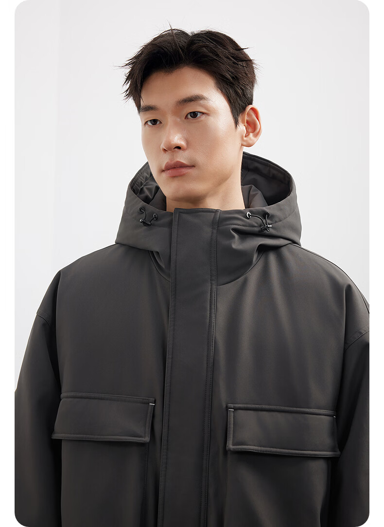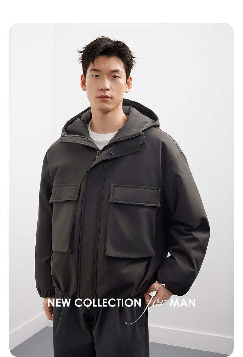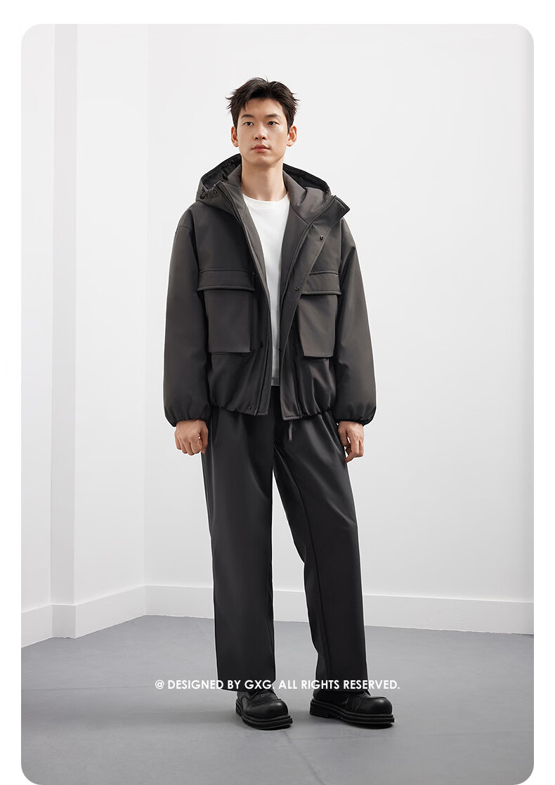 GXG men's three-proof hooded down jacket American work style 25 winter new style dark gray 170/M