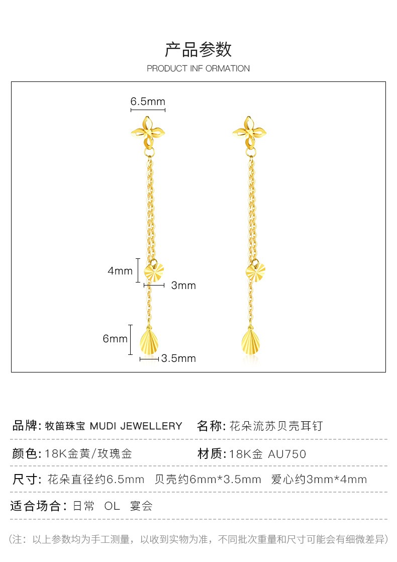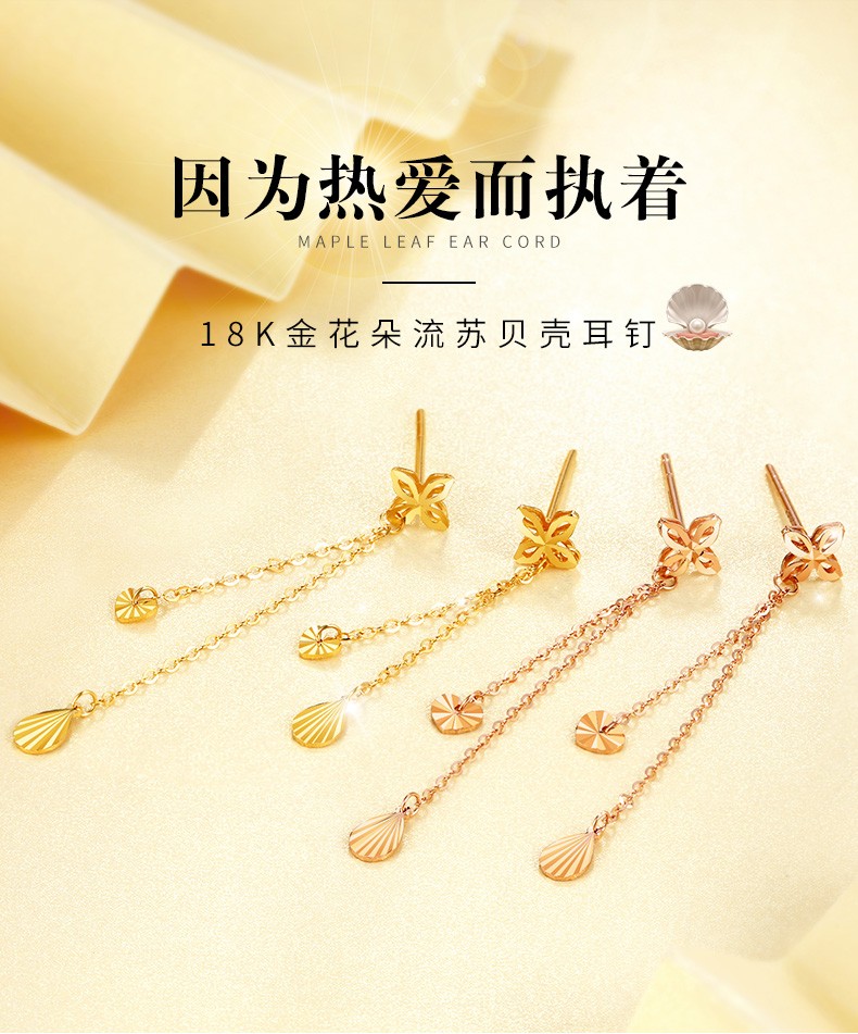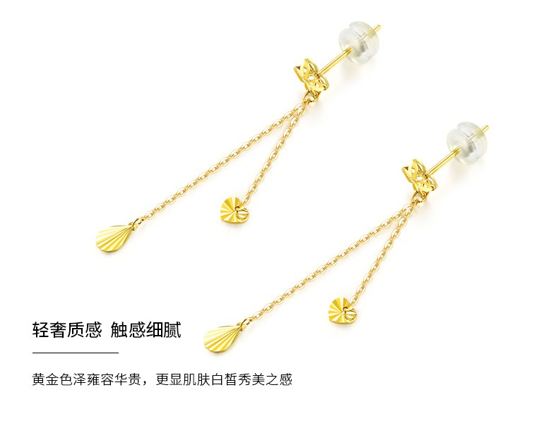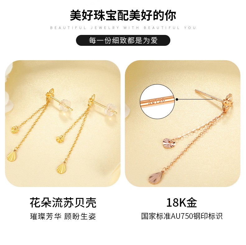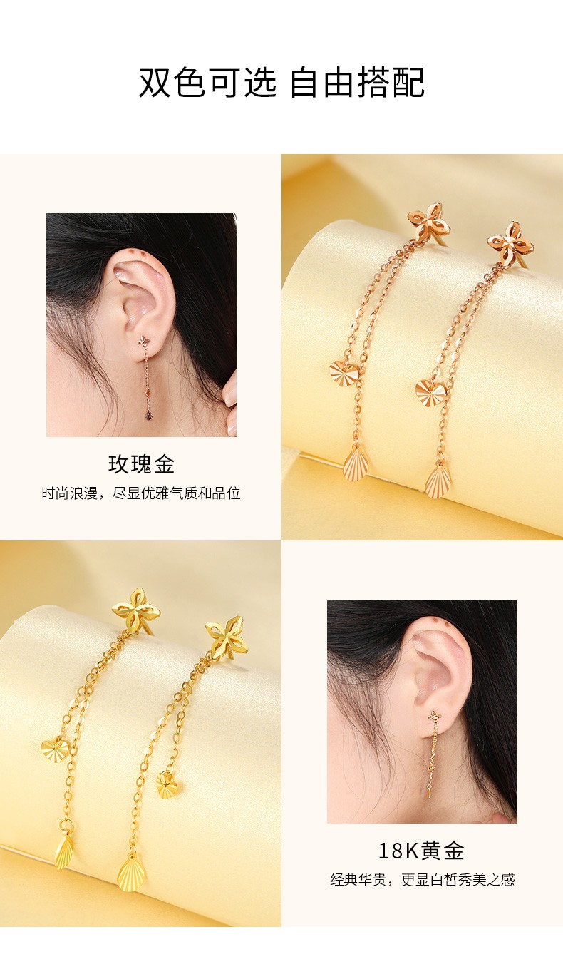 MUDI 18K gold stud earrings for women, gold four-leaf clover shell tassel ear wire, lover gift for girlfriend and wife's birthday, K gold shell, four-leaf clover ear wire, weight about 0.72g