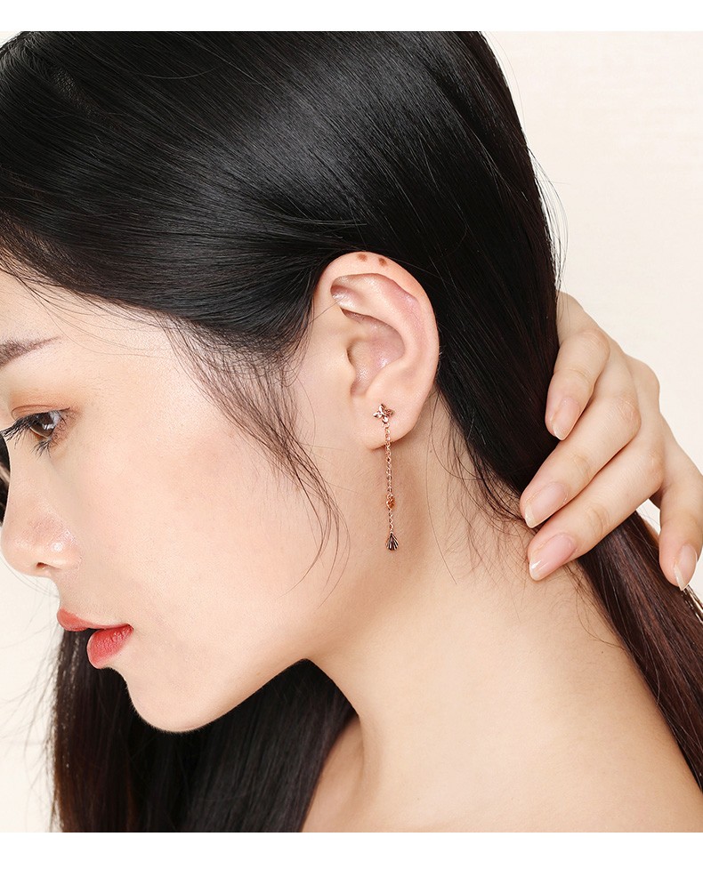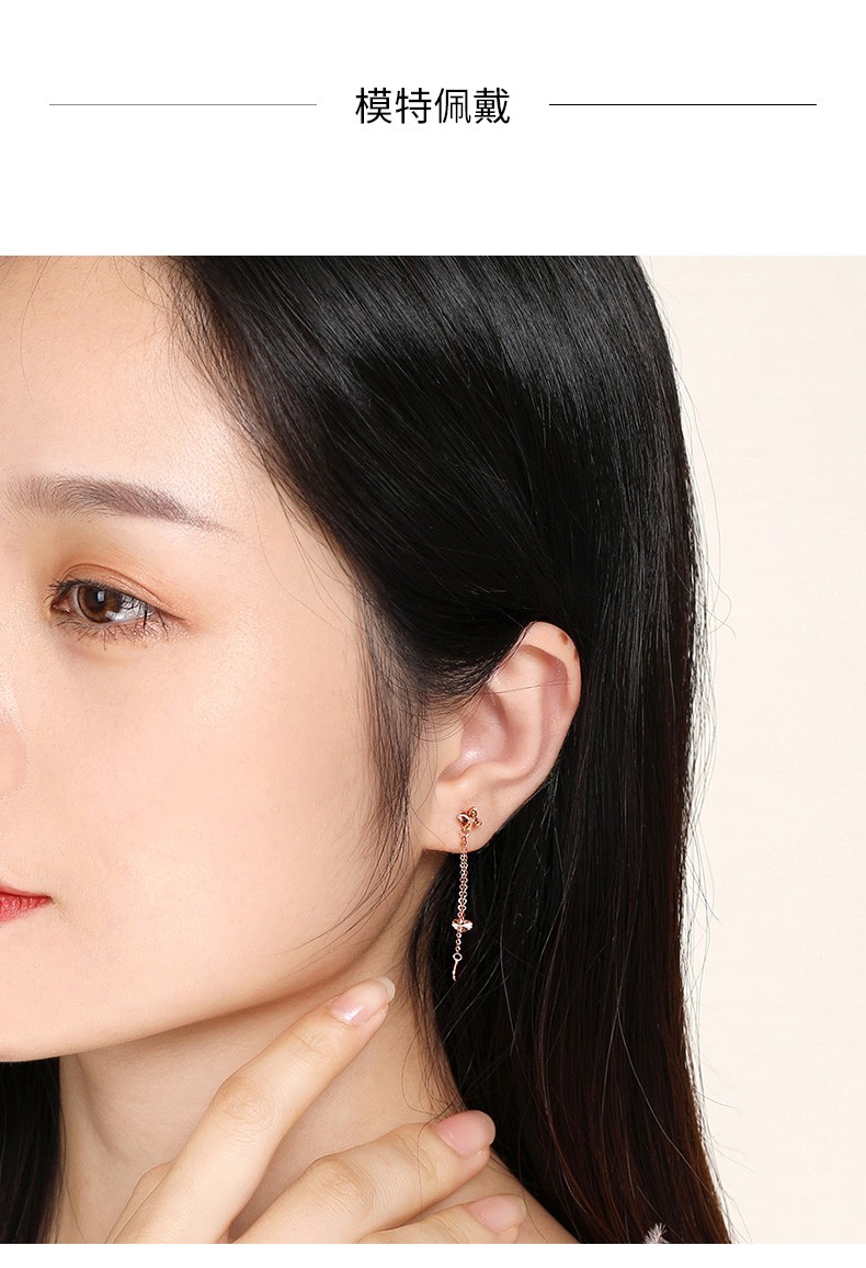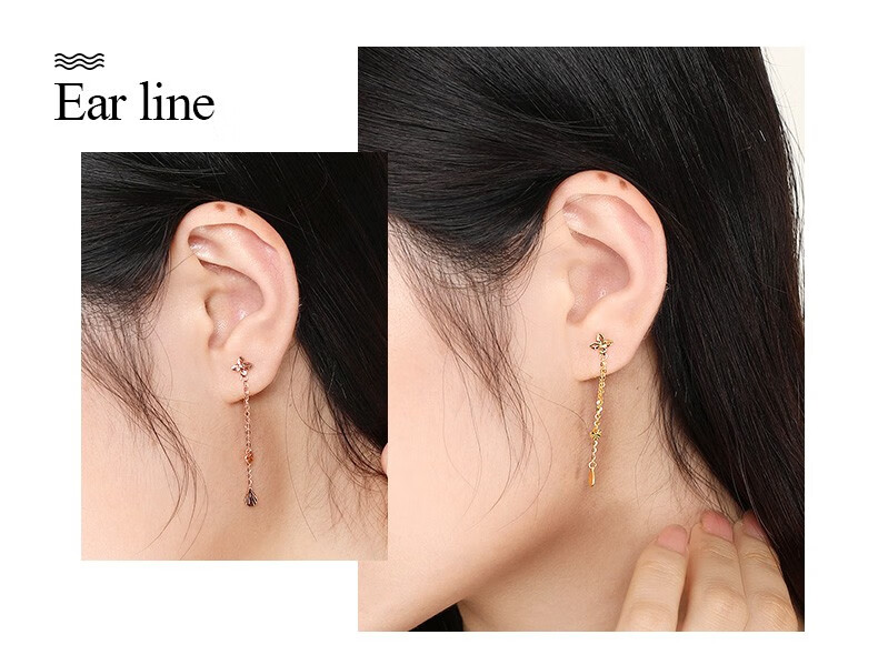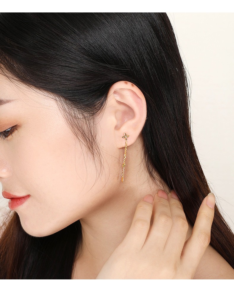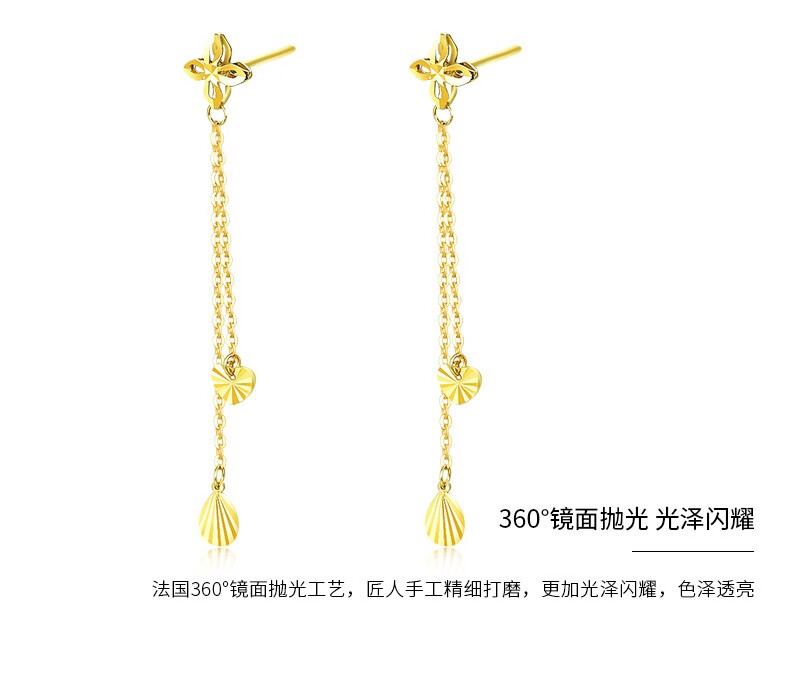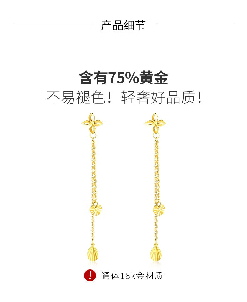 MUDI 18K gold stud earrings for women, gold four-leaf clover shell tassel ear wire, lover gift for girlfriend and wife's birthday, K gold shell, four-leaf clover ear wire, weight about 0.72g