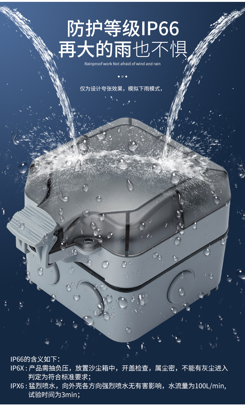 Chint (CHNT) outdoor waterproof socket outdoor type 86 surface-mounted rain-proof open-air switch socket splash-proof junction box protection power supply bathroom box waterproof box 7055 black/surface-mounted/7M oblique five-hole socket