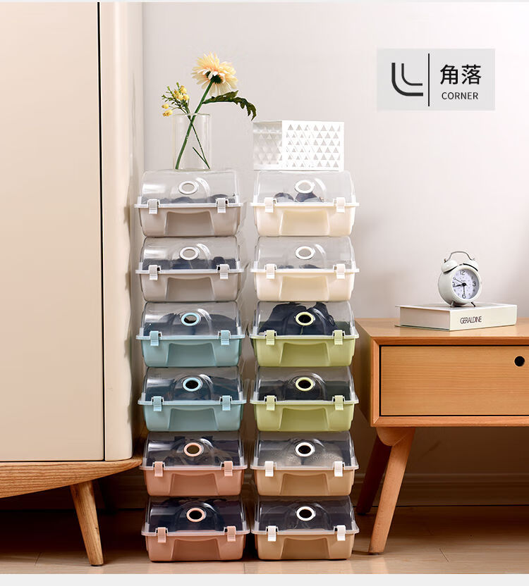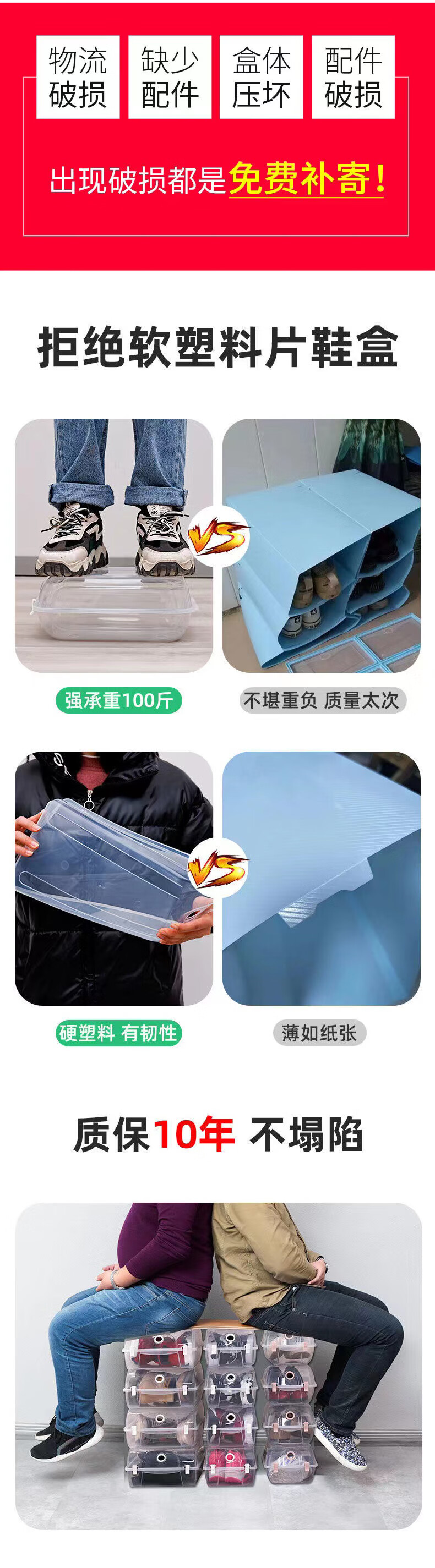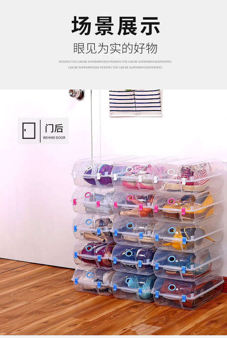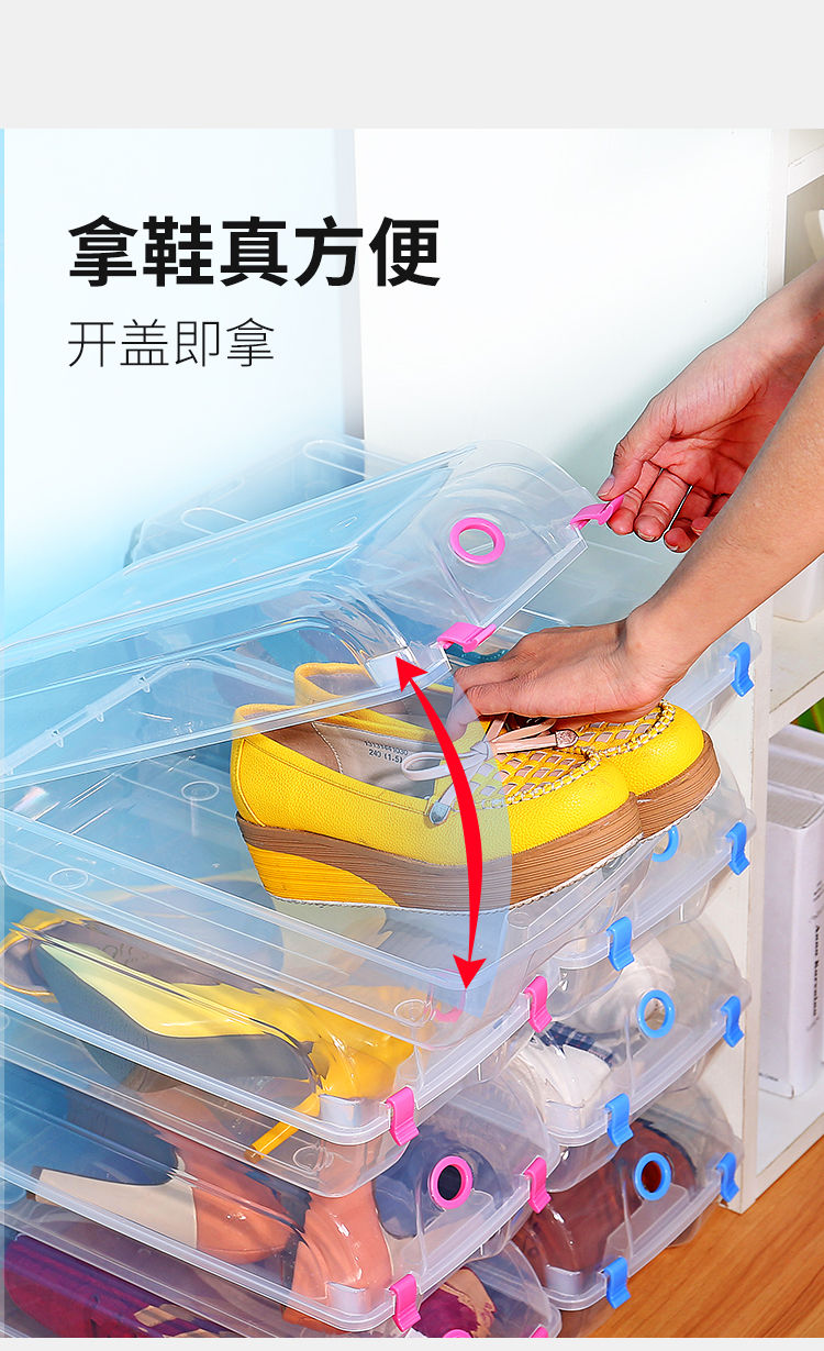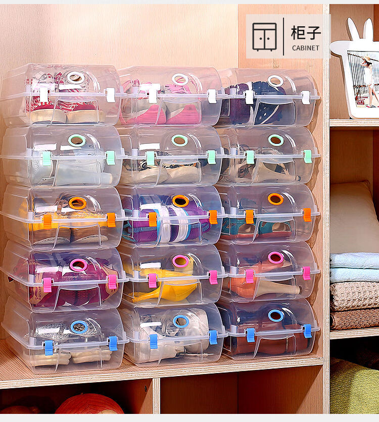 Kunmi dust-proof thickened plastic simple shoe box storage transparent household dormitory drawer-type shoe storage shoe box display box shoe cabinet for sports shoes casual shoes boots fully transparent white buckle small size 6 pieces within 39 yards