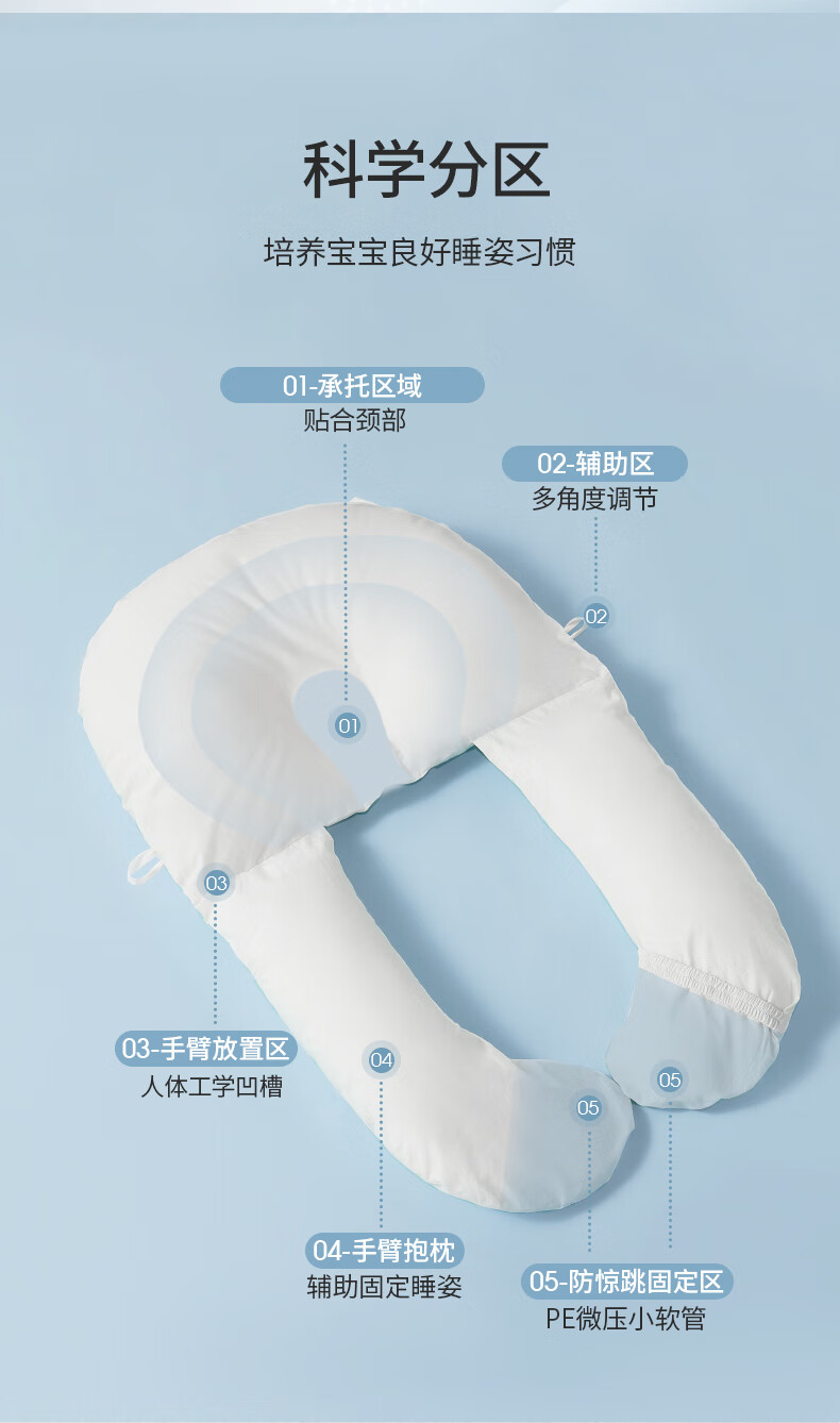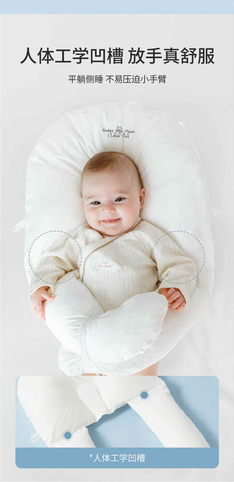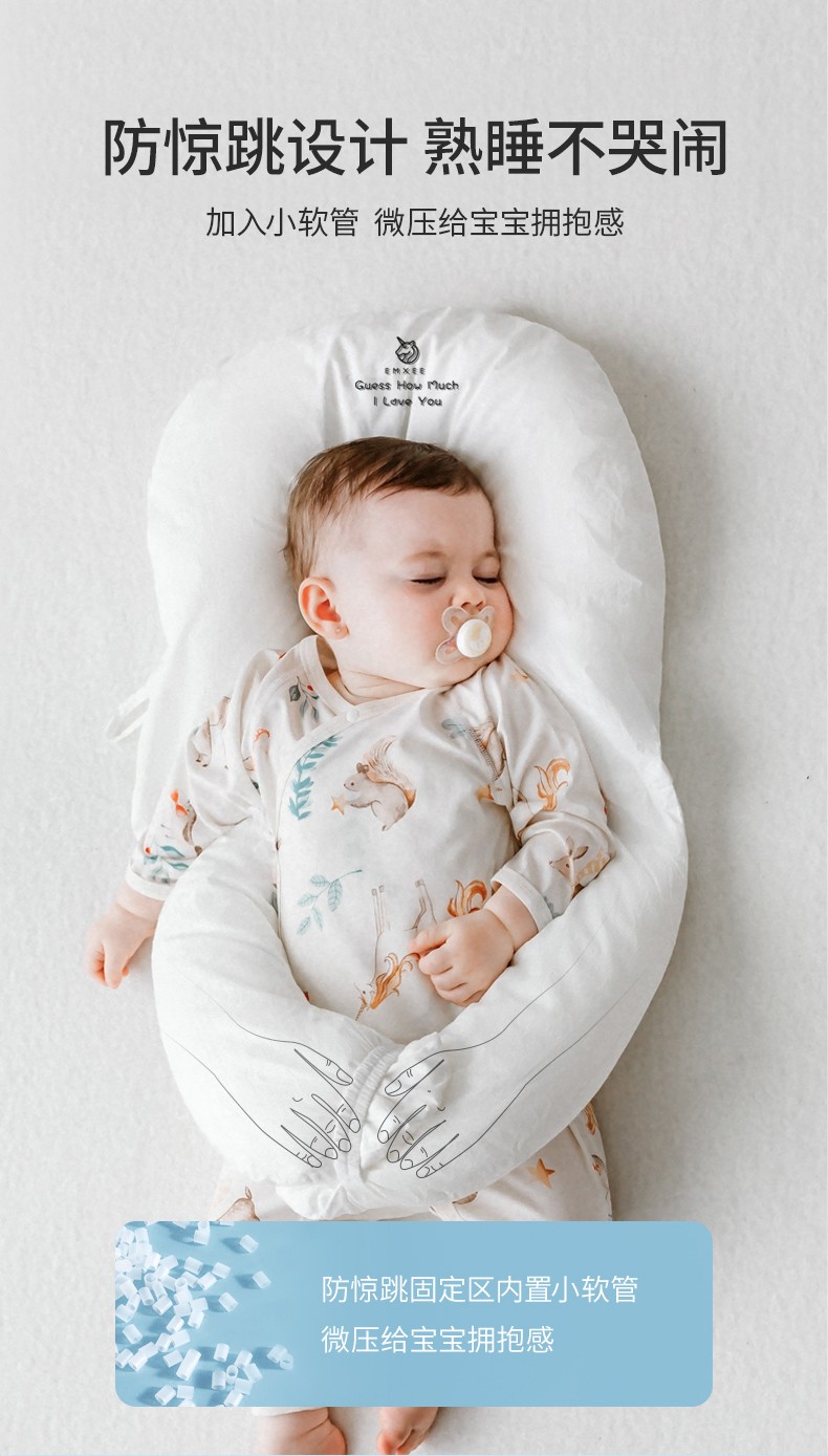 EMXEE baby shaping pillow, newborn baby anti-jump comfort pillow, correcting head shape, spring and summer seasons, 0-1 years old, space shaping pillow