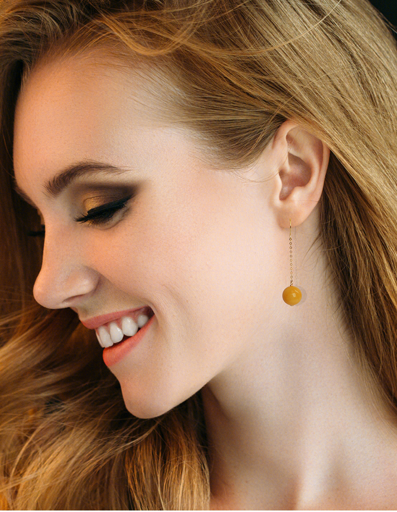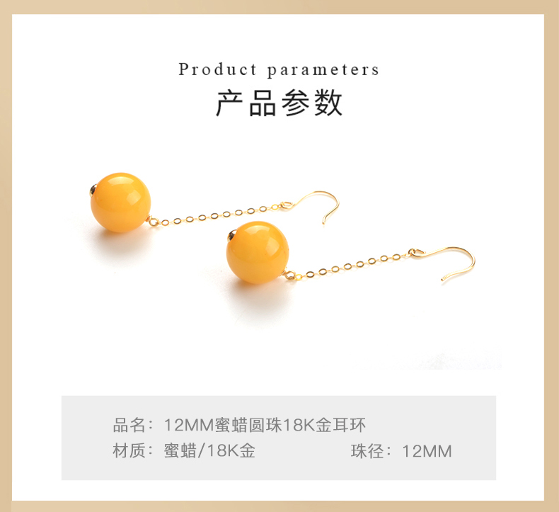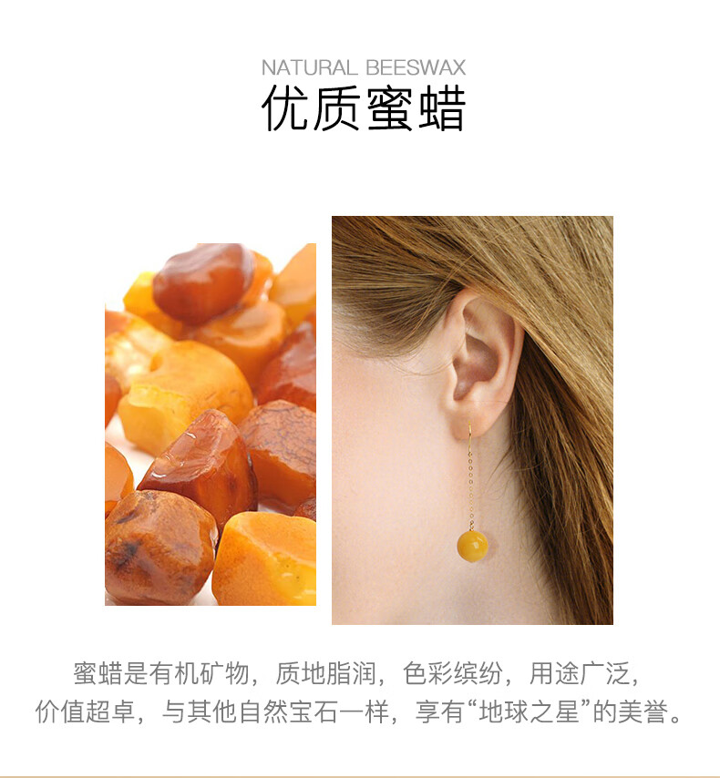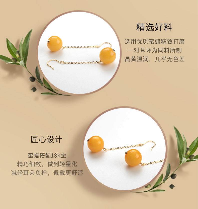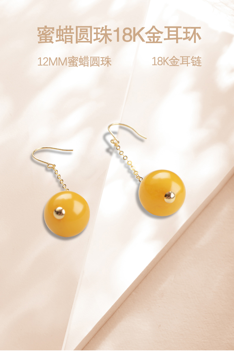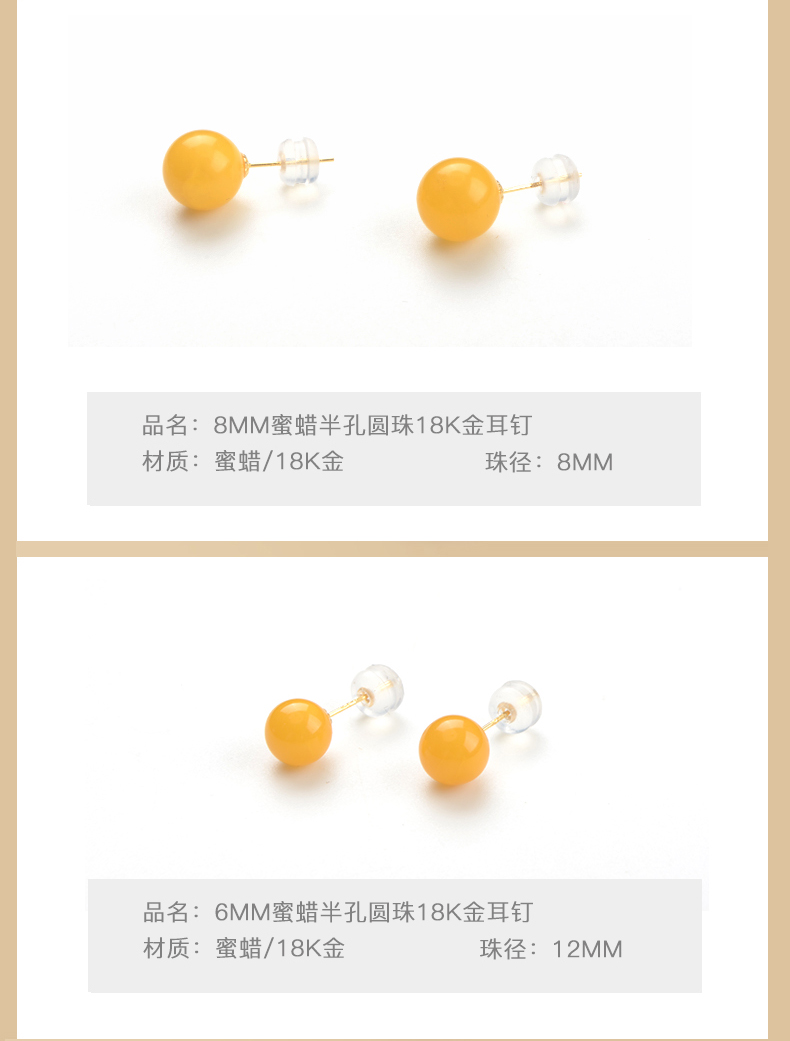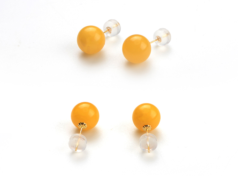 Her Generation Amber Beeswax 18K Gold Stud Earrings Fashionable Simple Jewelry for Your Girlfriend 6MM Style (863896)