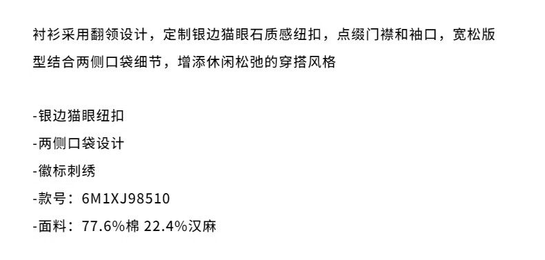 MISS SIXTY2026 spring new long-sleeved denim shirt for women cotton and linen simple white pocket casual commuting white XS