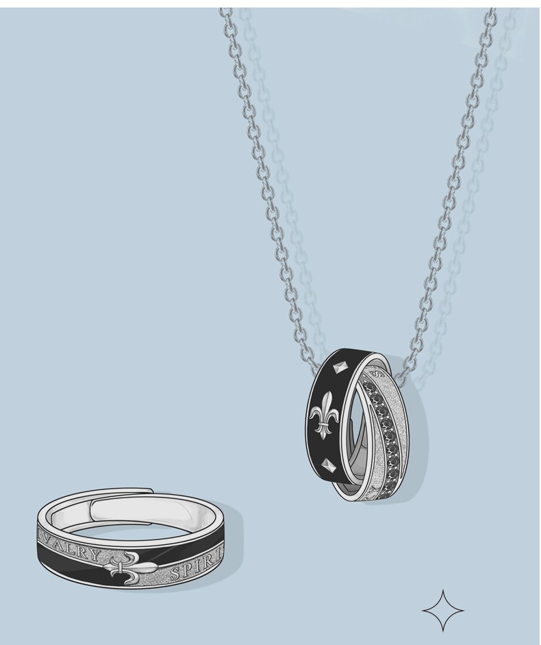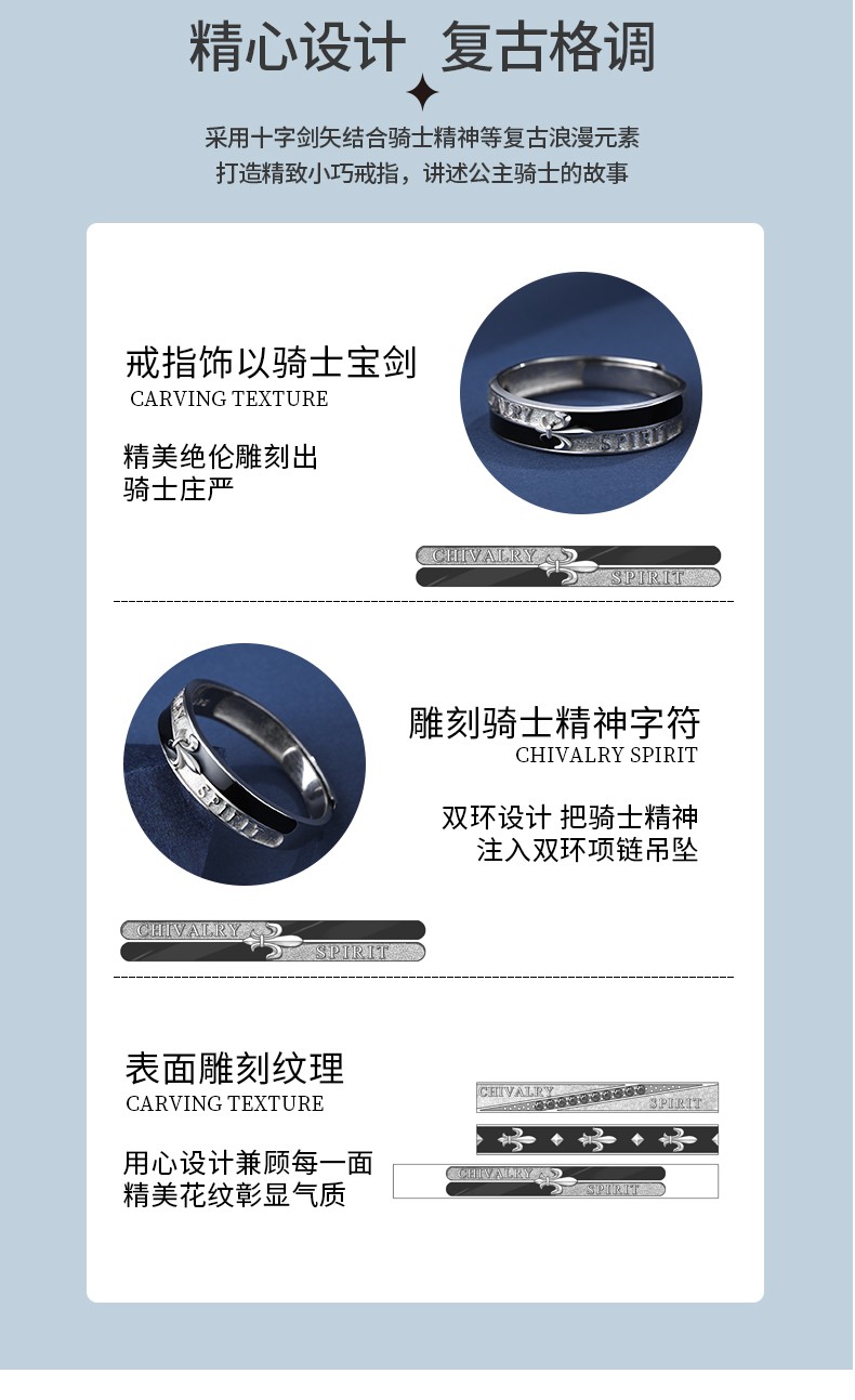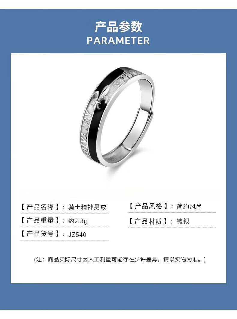 Mansheng lettering knight ring men's trendy opening adjustable men's single ring trendy men's index finger ring internet celebrity tail ring
