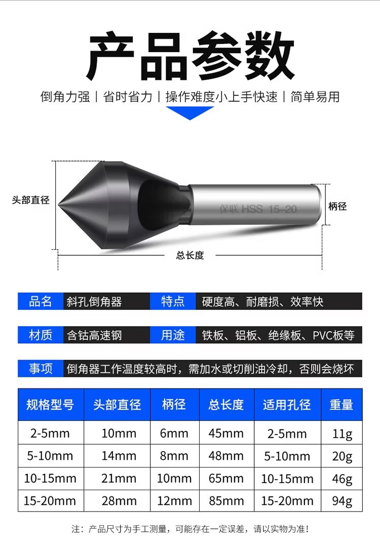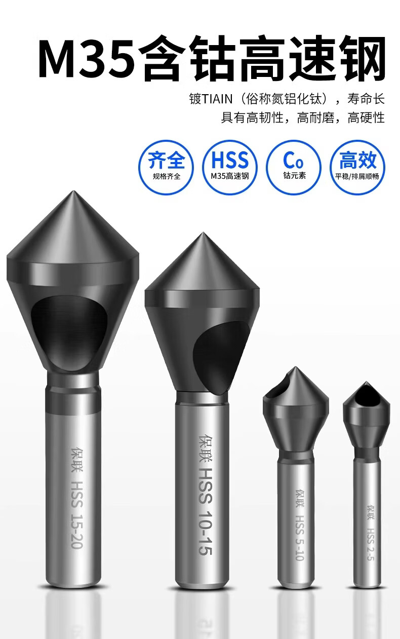 保联斜孔倒角刀M35含钴90度沉孔倒角钻头内孔倒角器内排屑倒角钻头 M35含钴耐用型 【5-10mm】