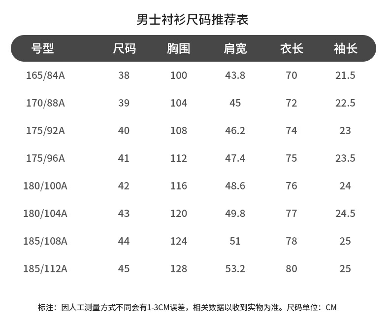 China (cm) 160-165/84-86 165-170 / 88-90 167-172 / 92-96 168-173 / 98-102 170-176 / 106-110