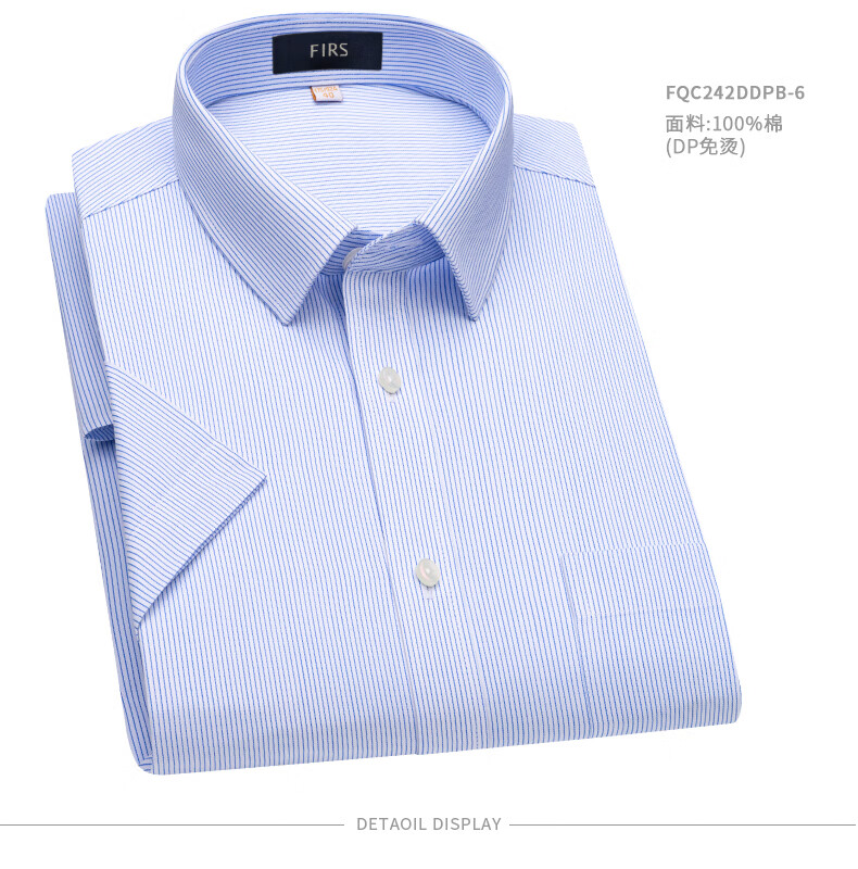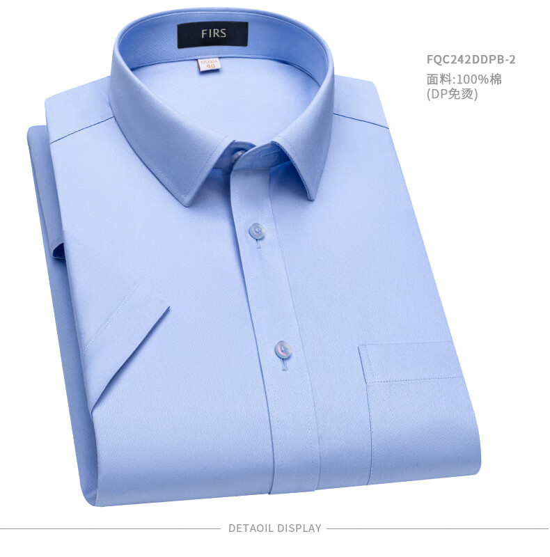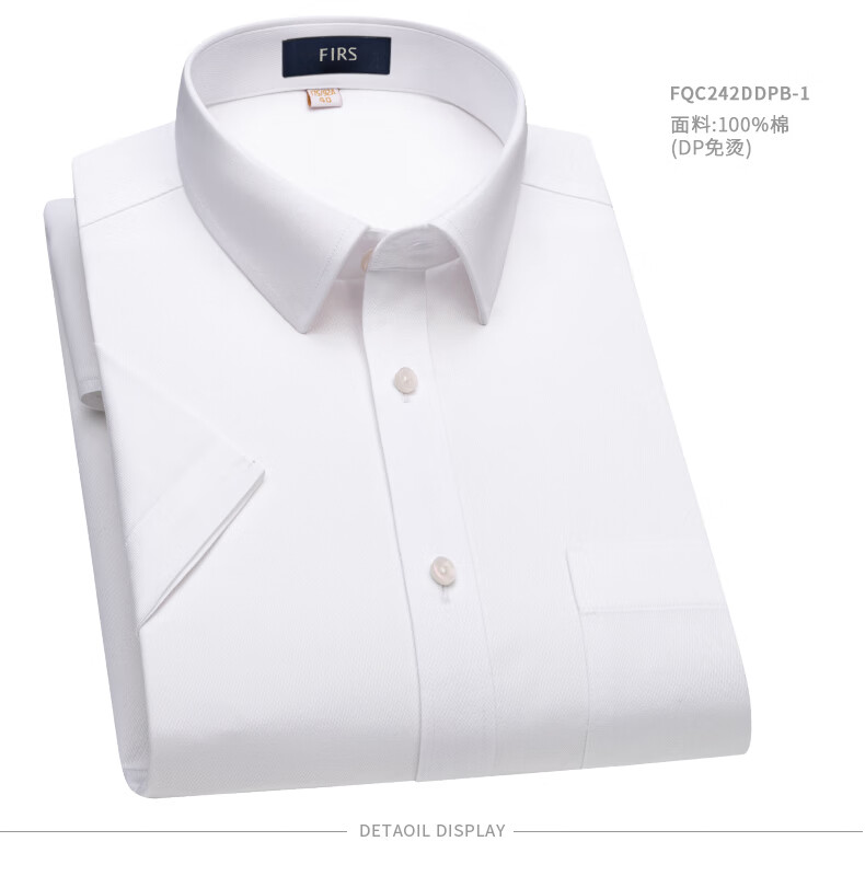 Shanshan (FIRS) DP iron-free + pocket version short-sleeved shirt men's pure cotton summer high-end business formal shirt white 40