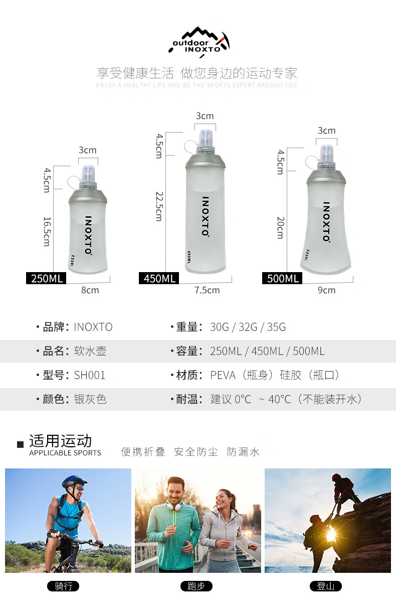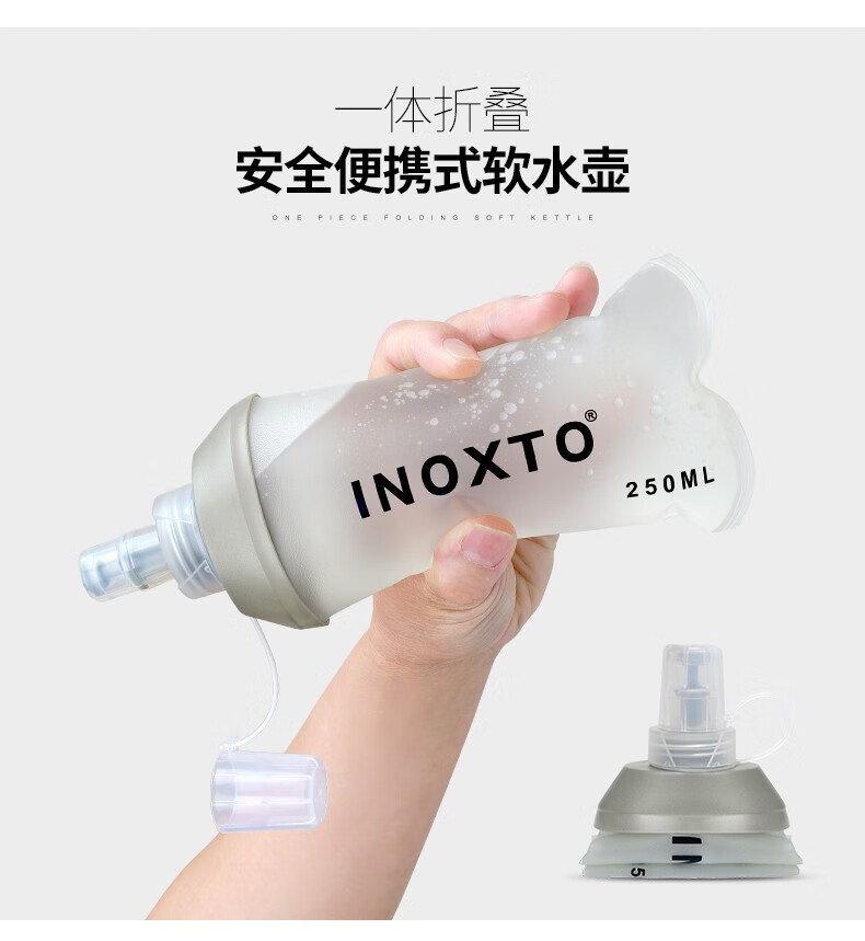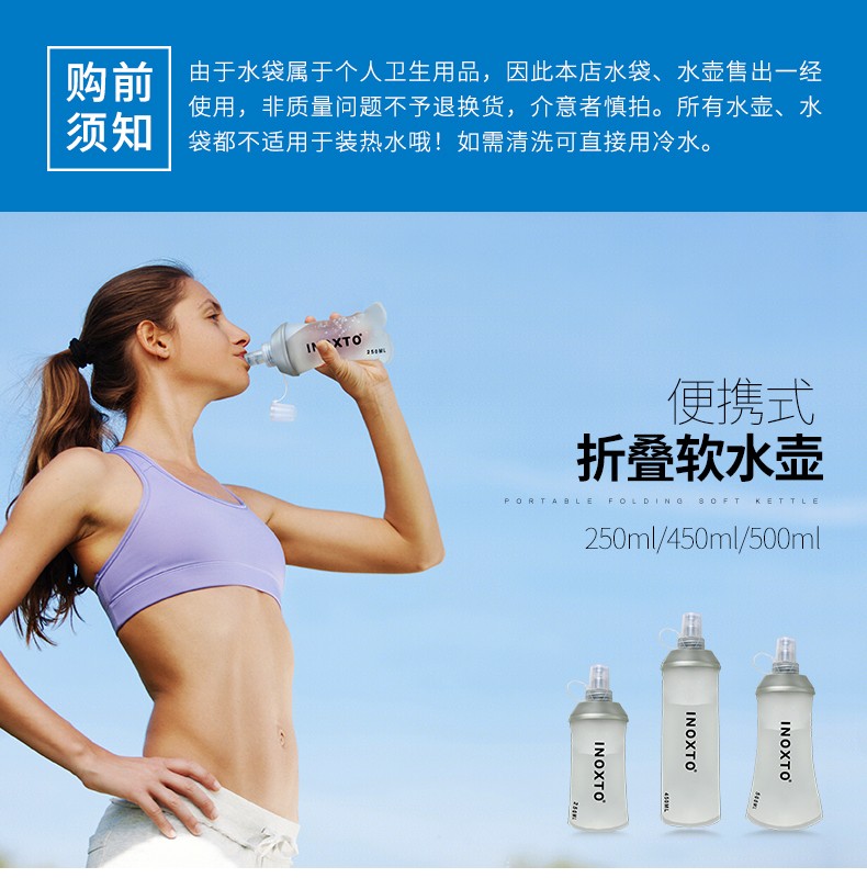 INOXTO Outdoor Marathon Sports Drinking Bottle Portable Folding Soft Water Bottle Off-Road Cycling Running Hydration Bag 250ML Soft Water Bottle 250ml