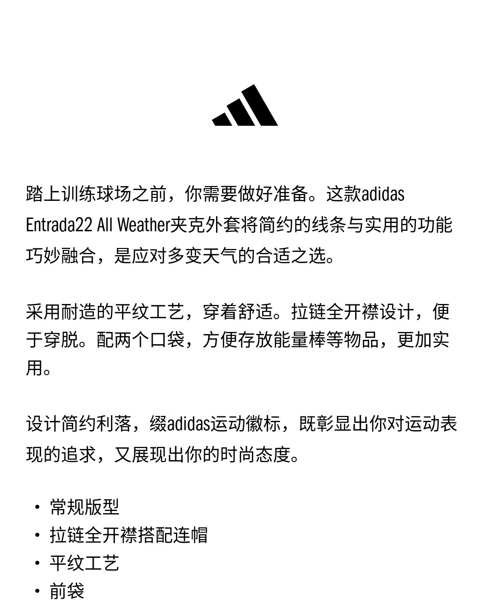 Adidas simple football training sports zipper hooded jacket men's spring new Adidas official