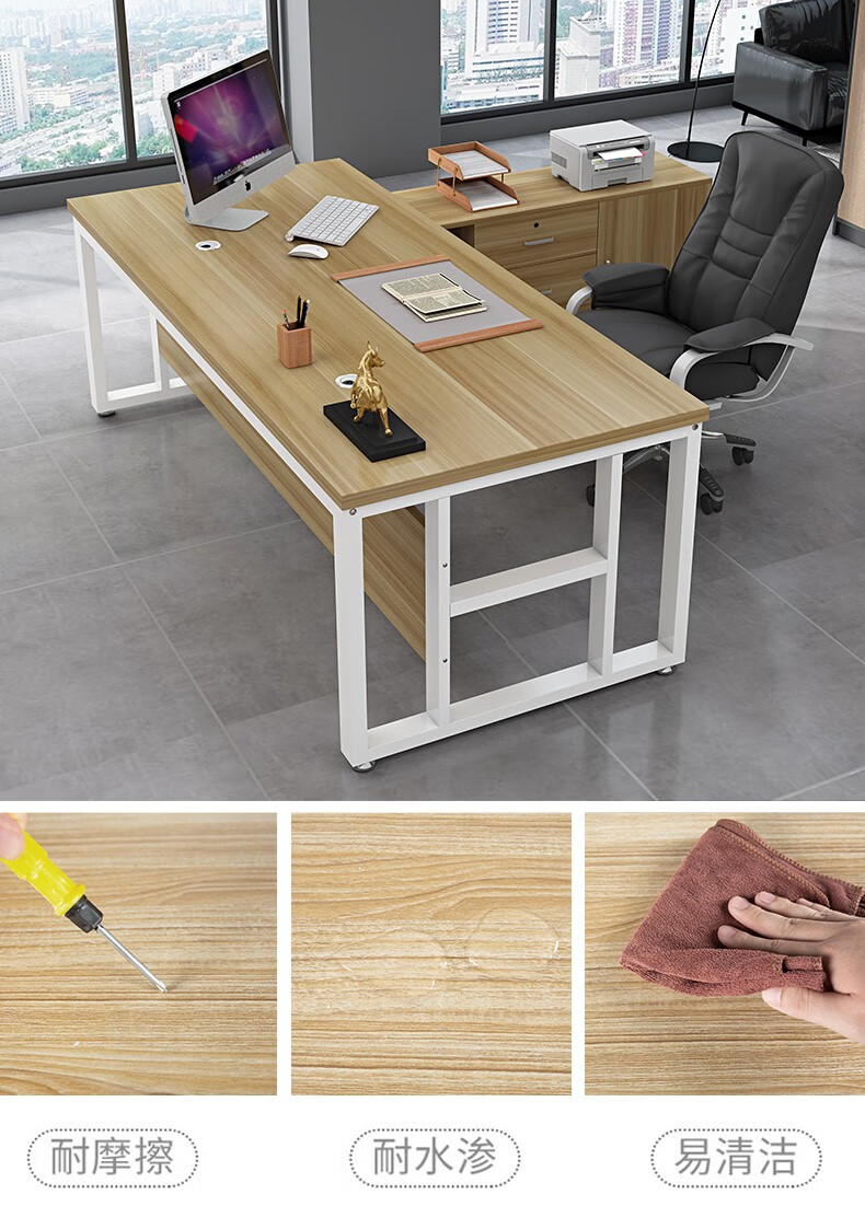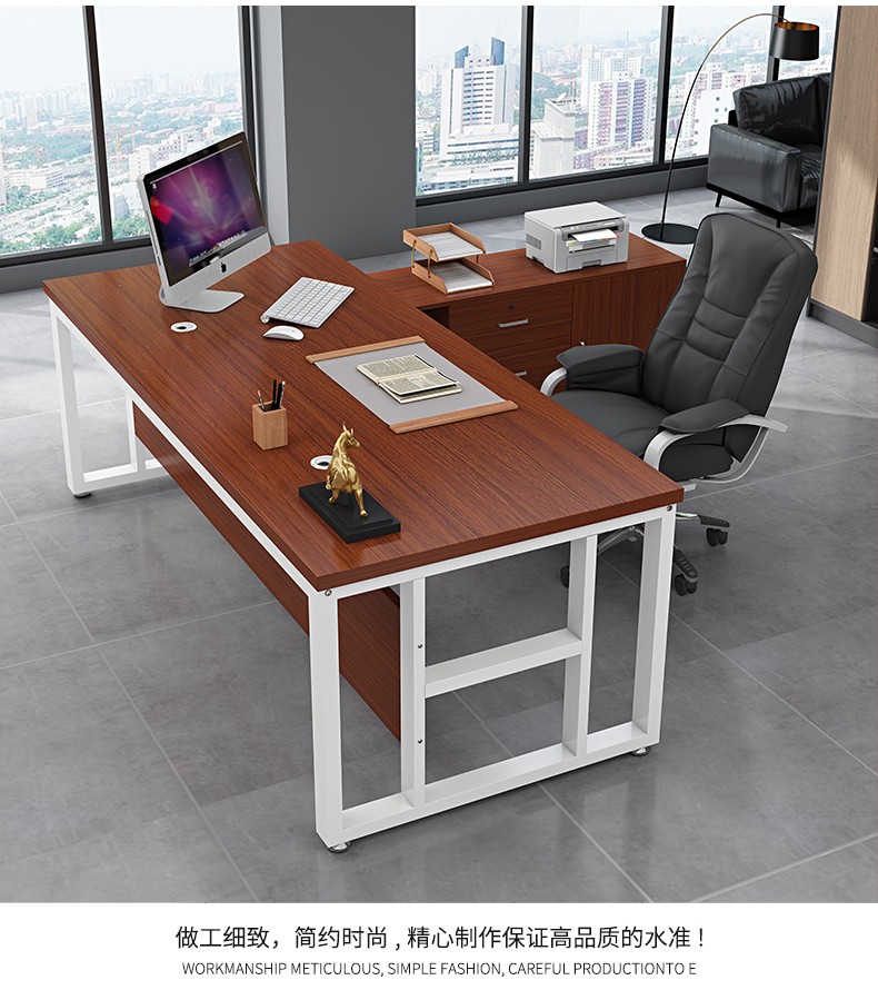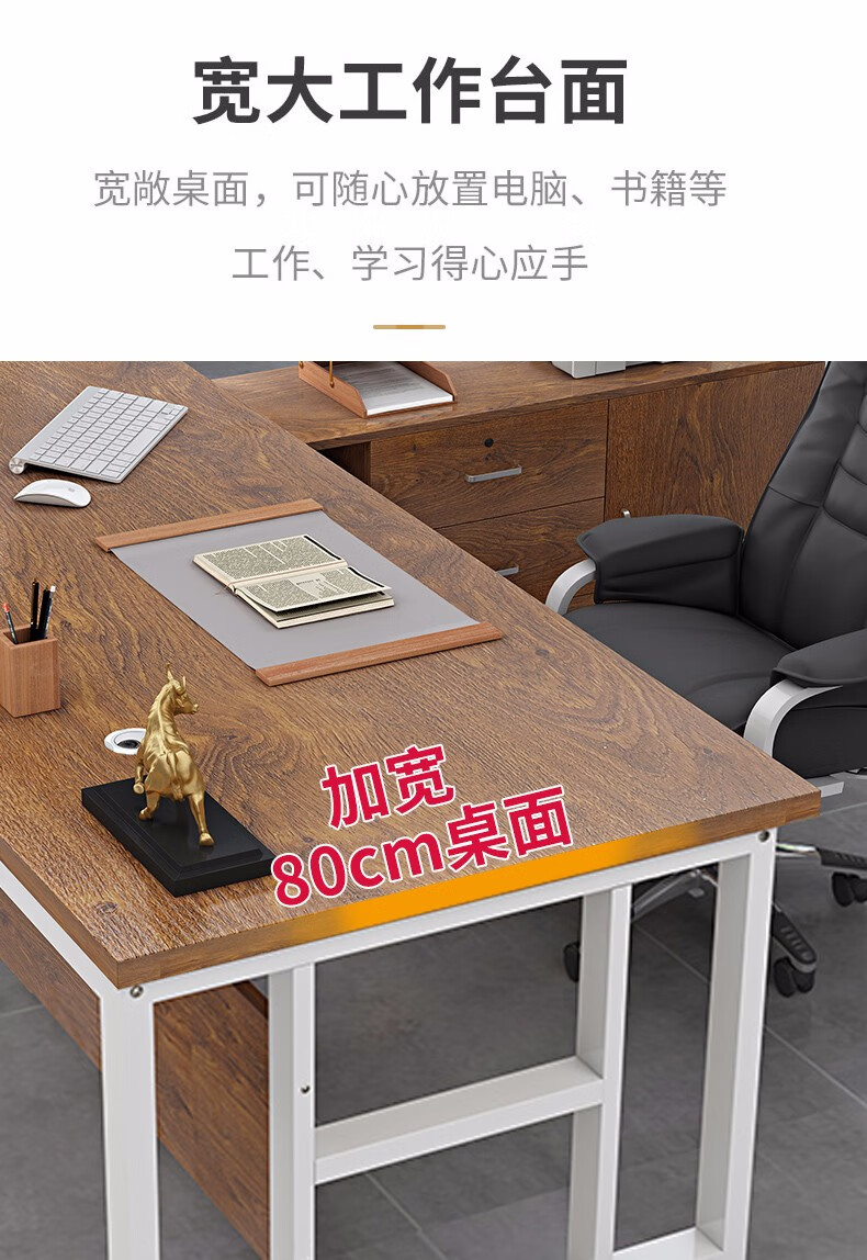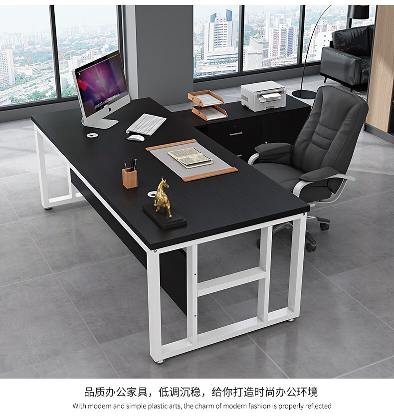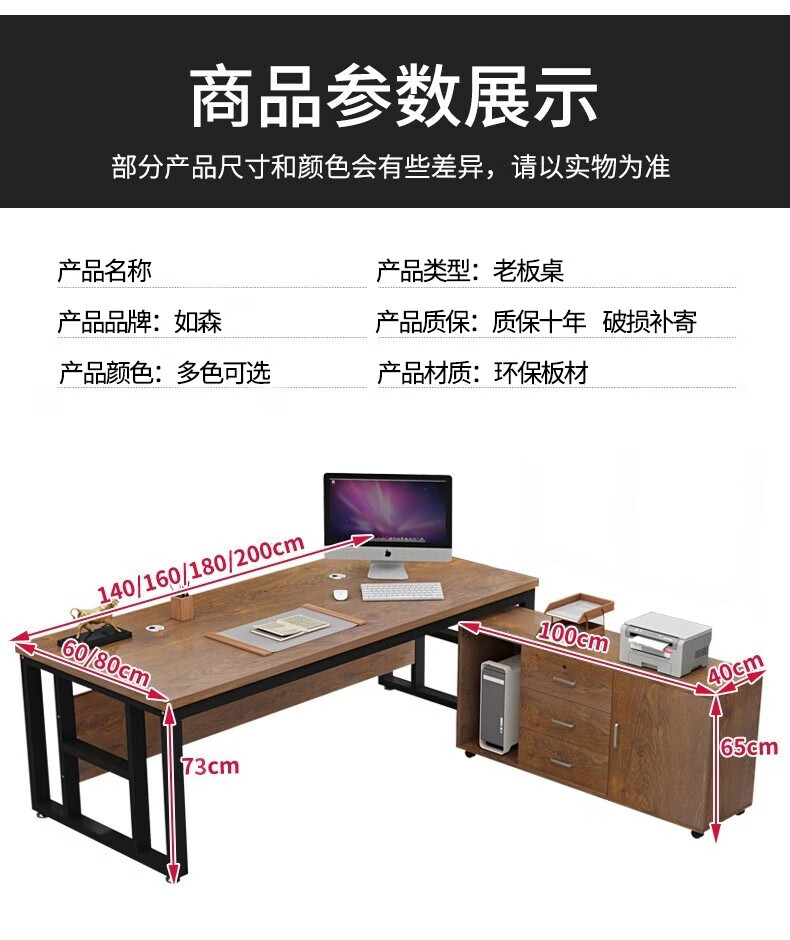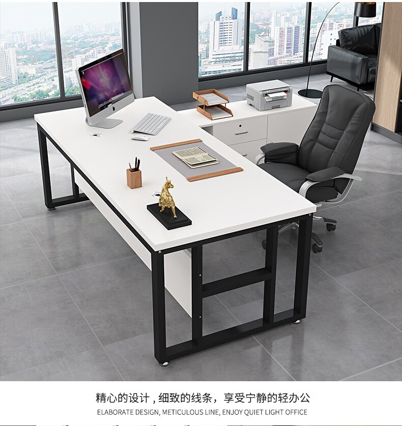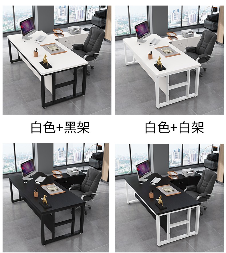 RUSEN Desk Boss Desk and Chair Combination Single Office Furniture Executive Desk Supervisor Manager Desk Computer Desk Customized White Frame + White 140*80 Table + Side Cabinet with Drawer + Chair
