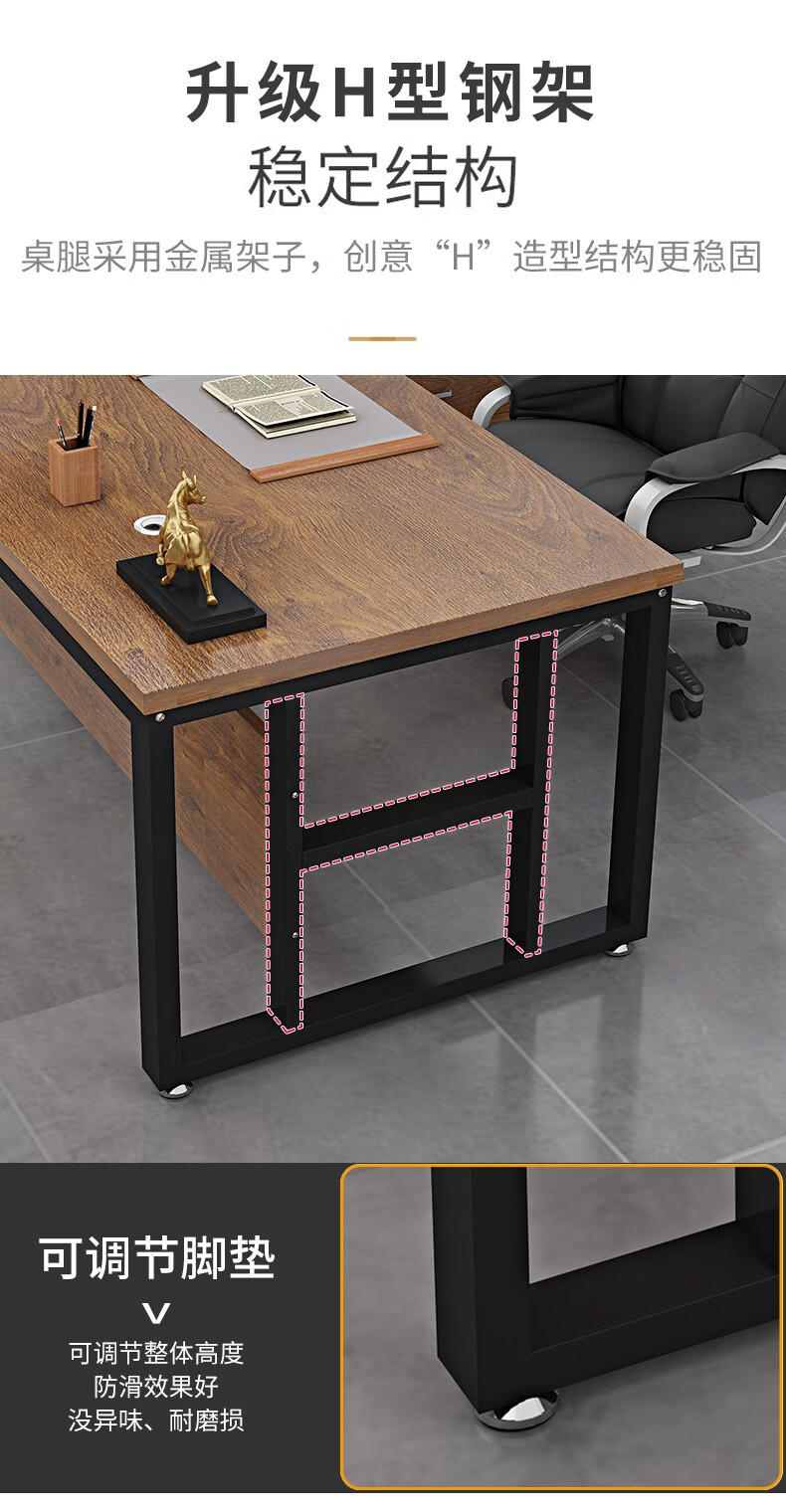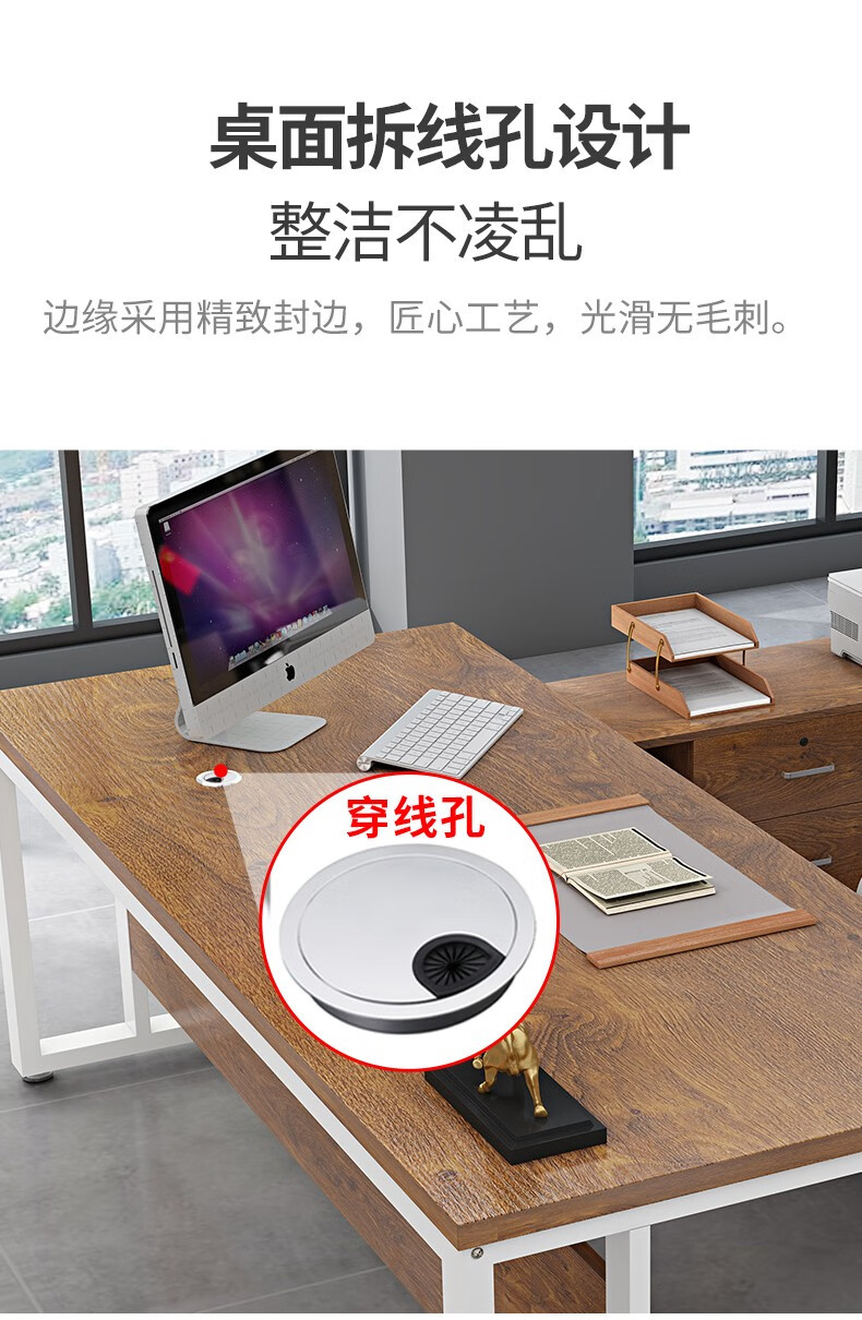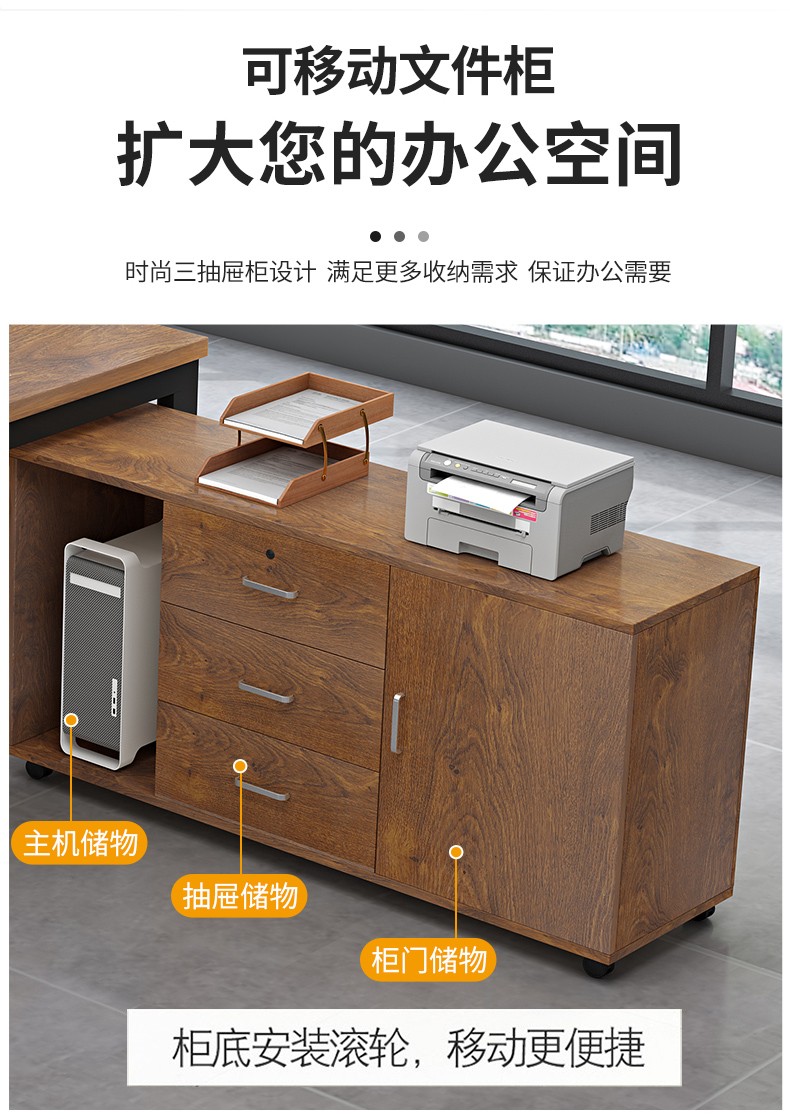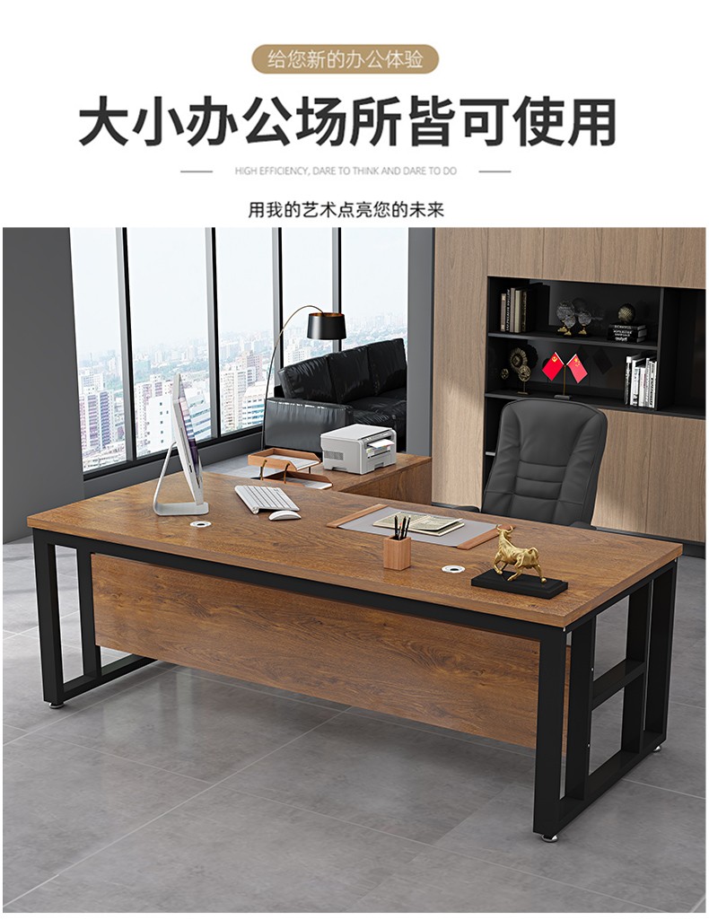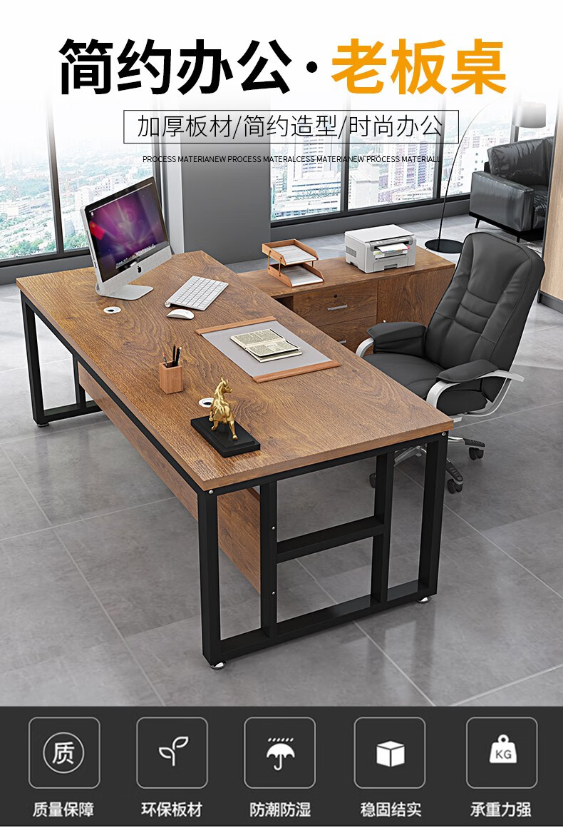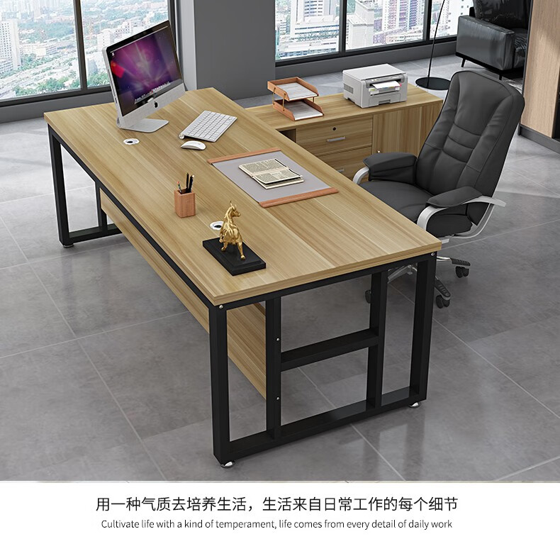 RUSEN Desk Boss Desk and Chair Combination Single Office Furniture Executive Desk Supervisor Manager Desk Computer Desk Customized White Frame + White 140*80 Table + Side Cabinet with Drawer + Chair