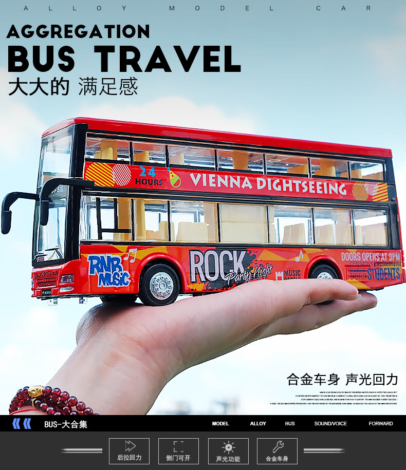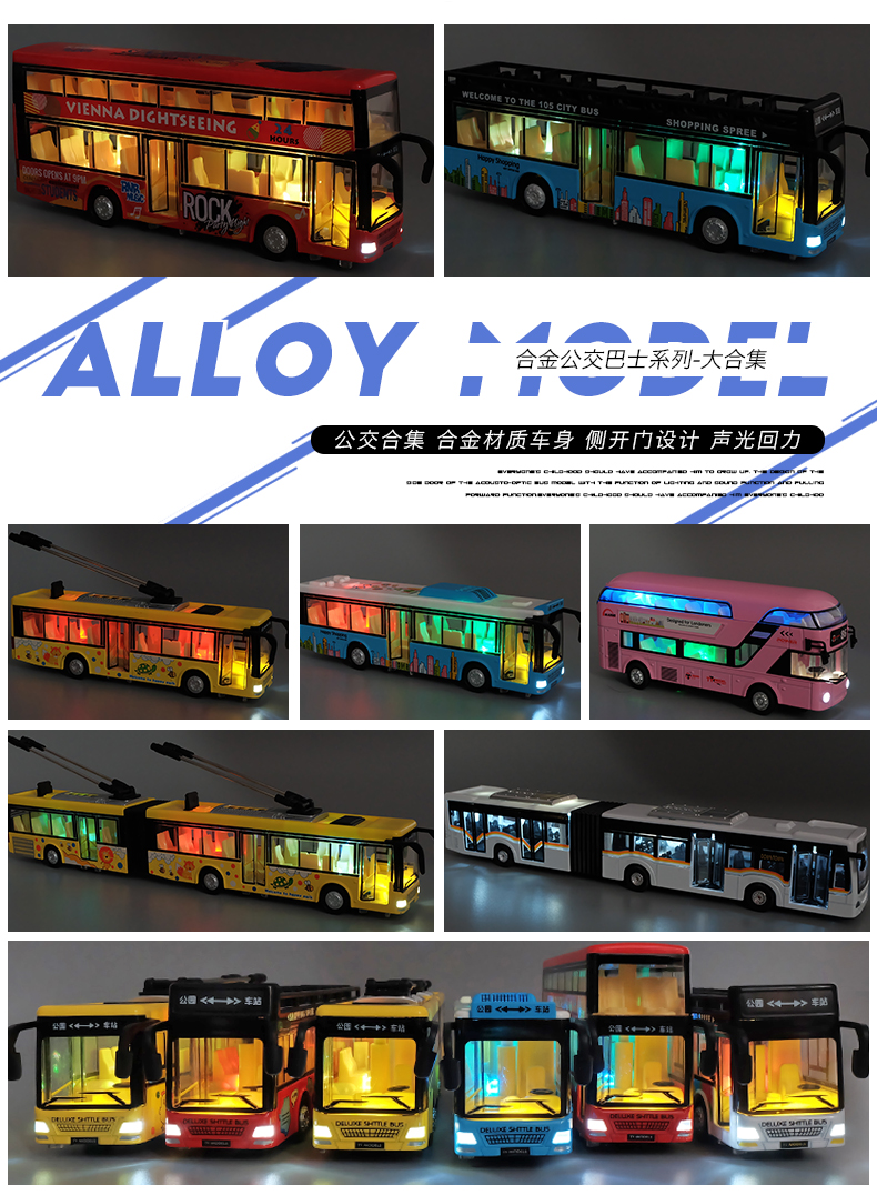 Kawei (KIV) alloy toy bus boy large car children's toy car open door big bus bus model Global bus blue