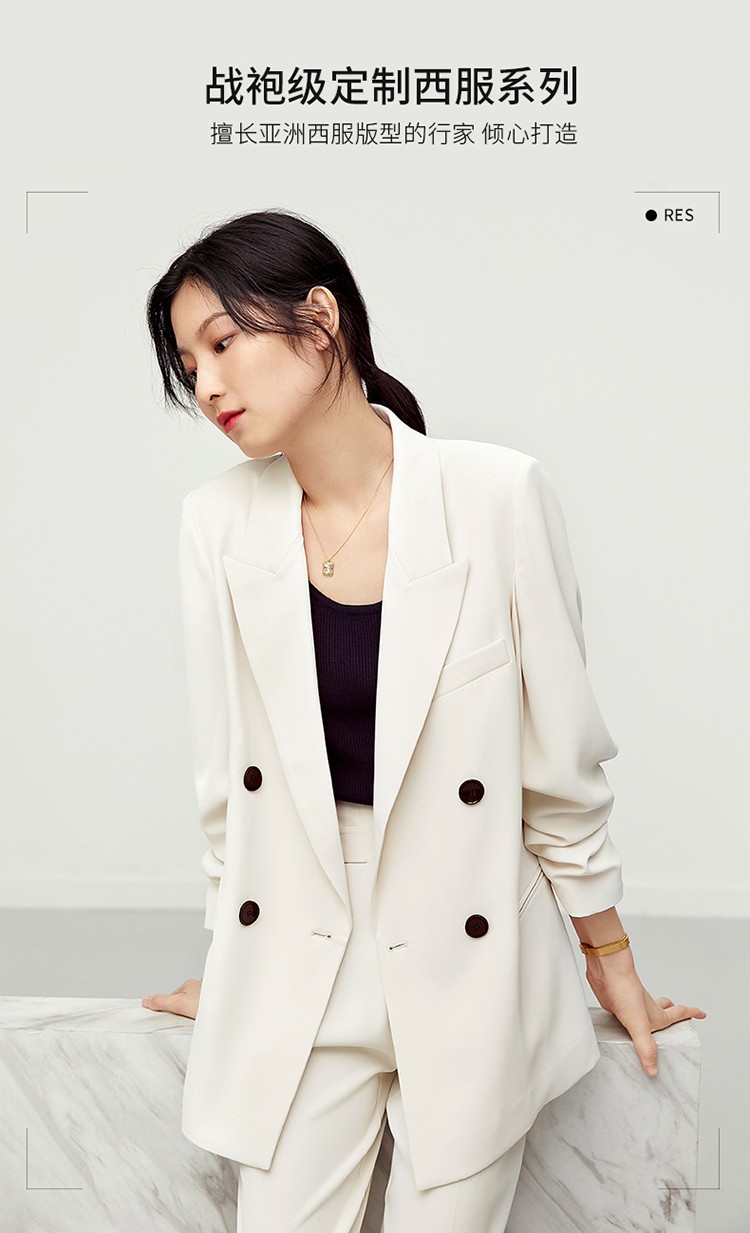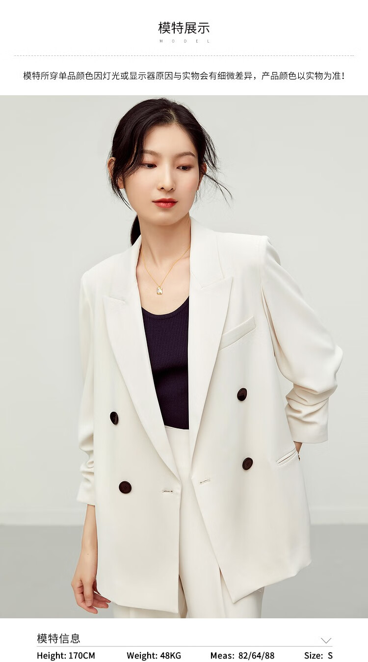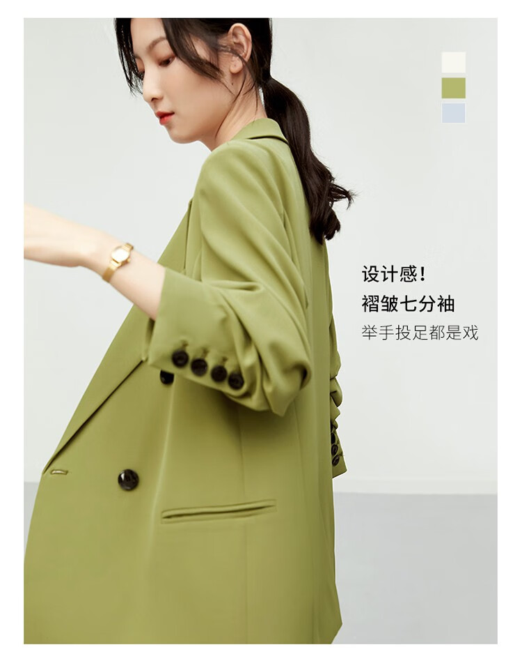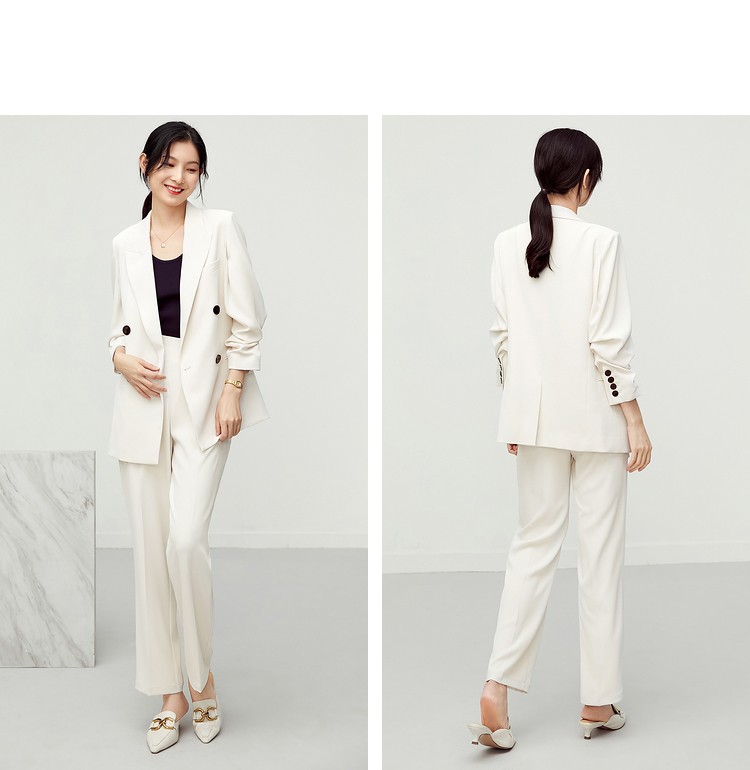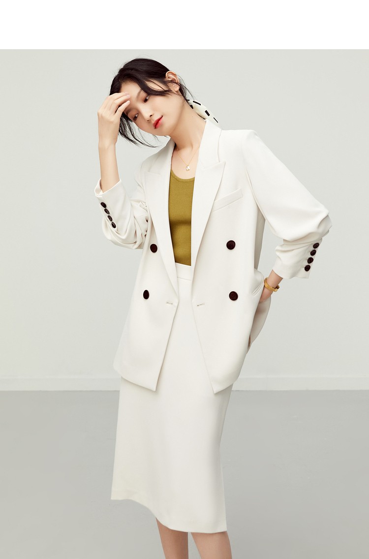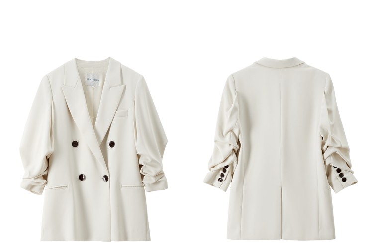 Shandubila temperament pleated three-quarter sleeves double-breasted suit jacket for women autumn new fashion casual small suit cream frost white jacket 6746 M