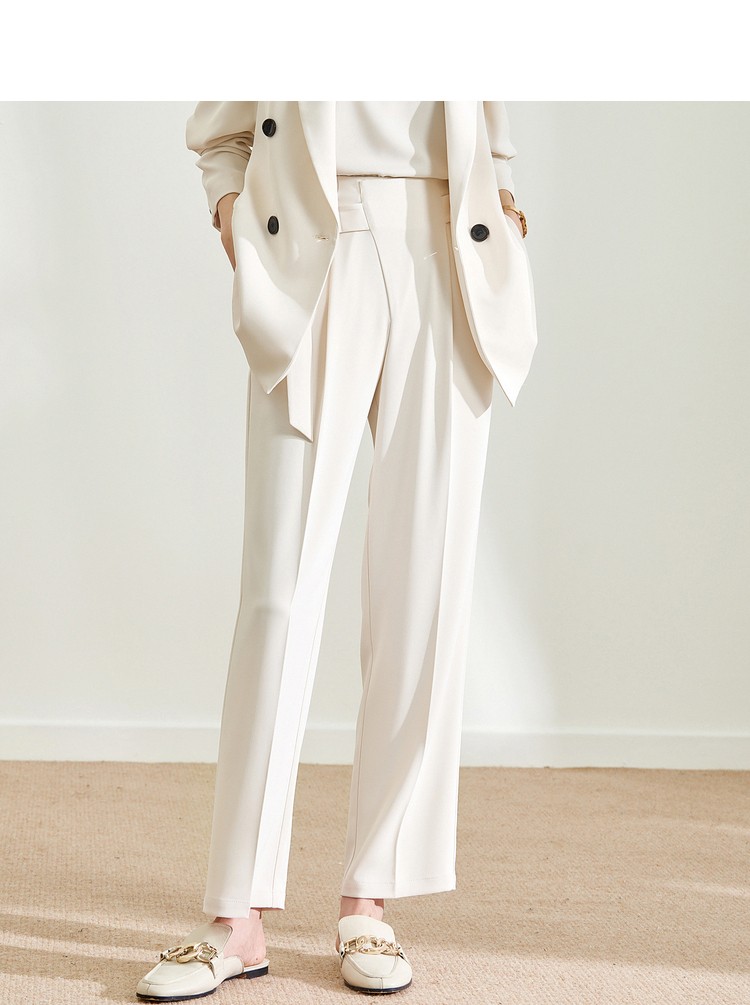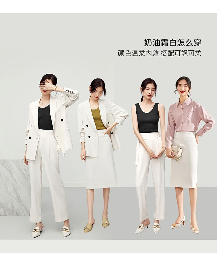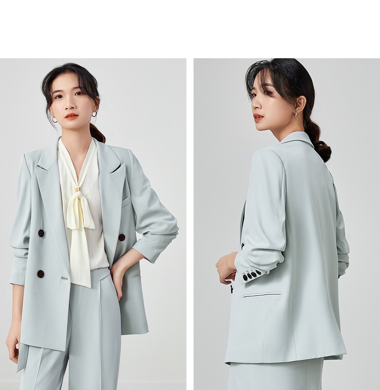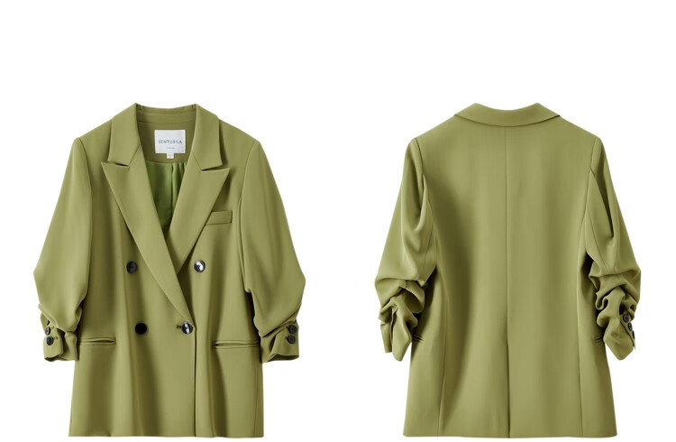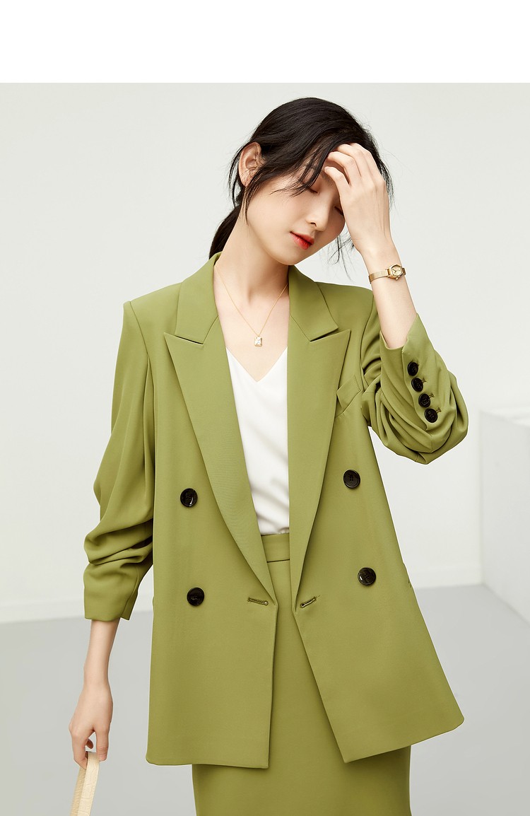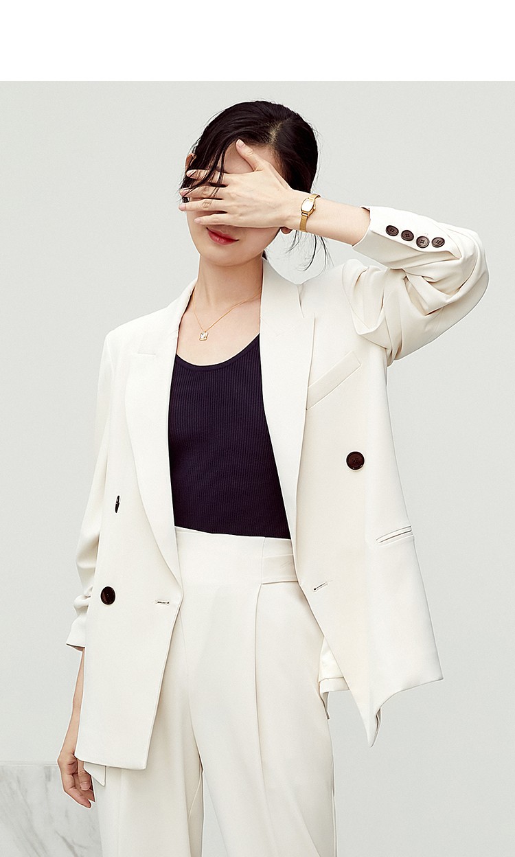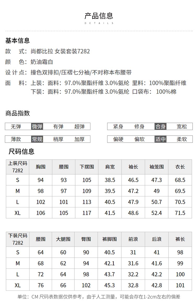 Shandubila temperament pleated three-quarter sleeves double-breasted suit jacket for women autumn new fashion casual small suit cream frost white jacket 6746 M