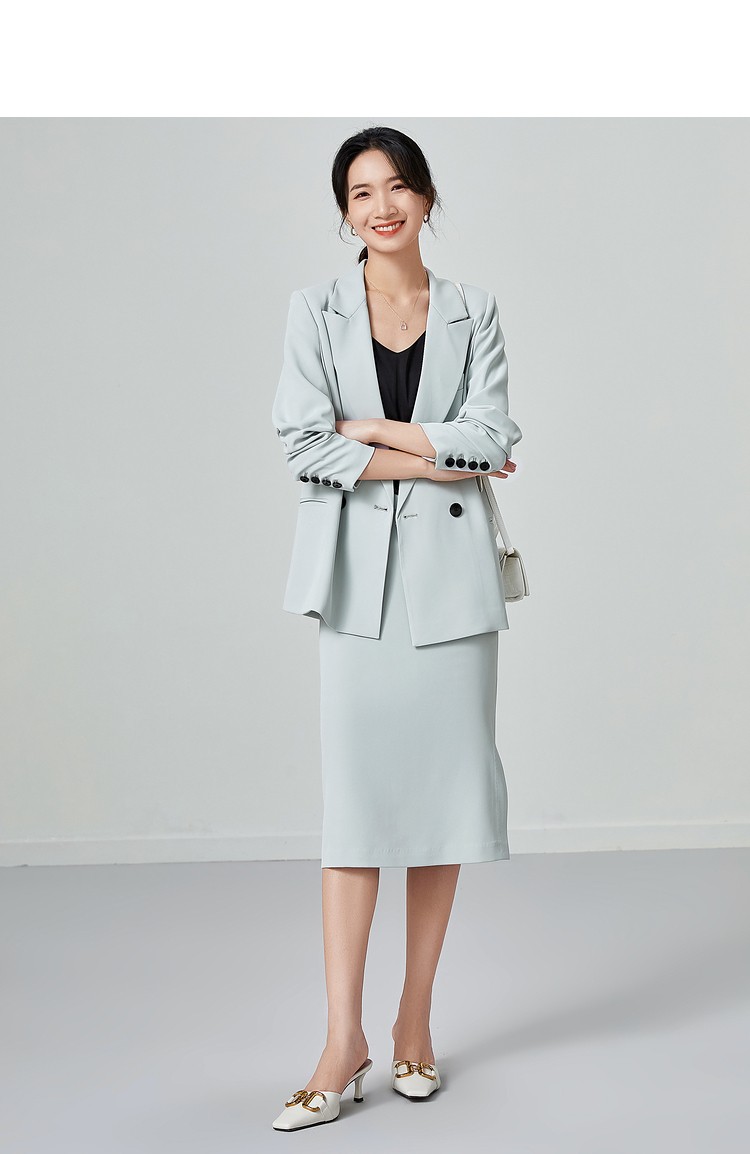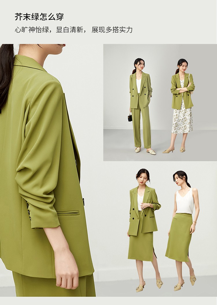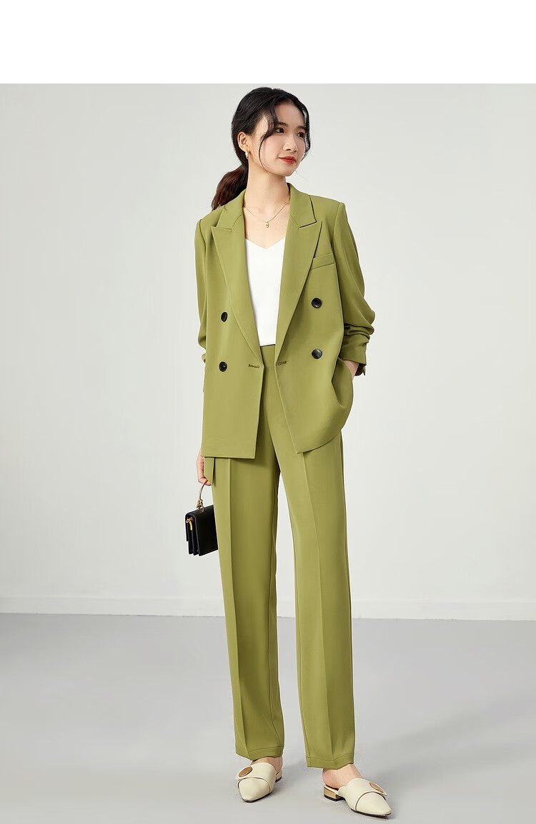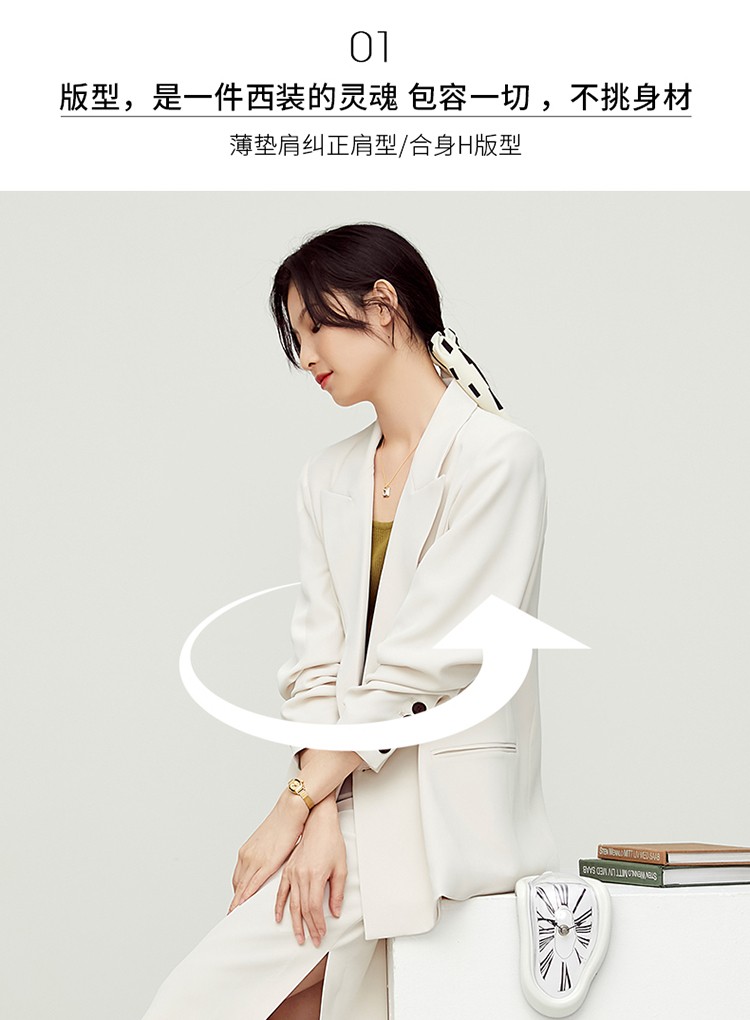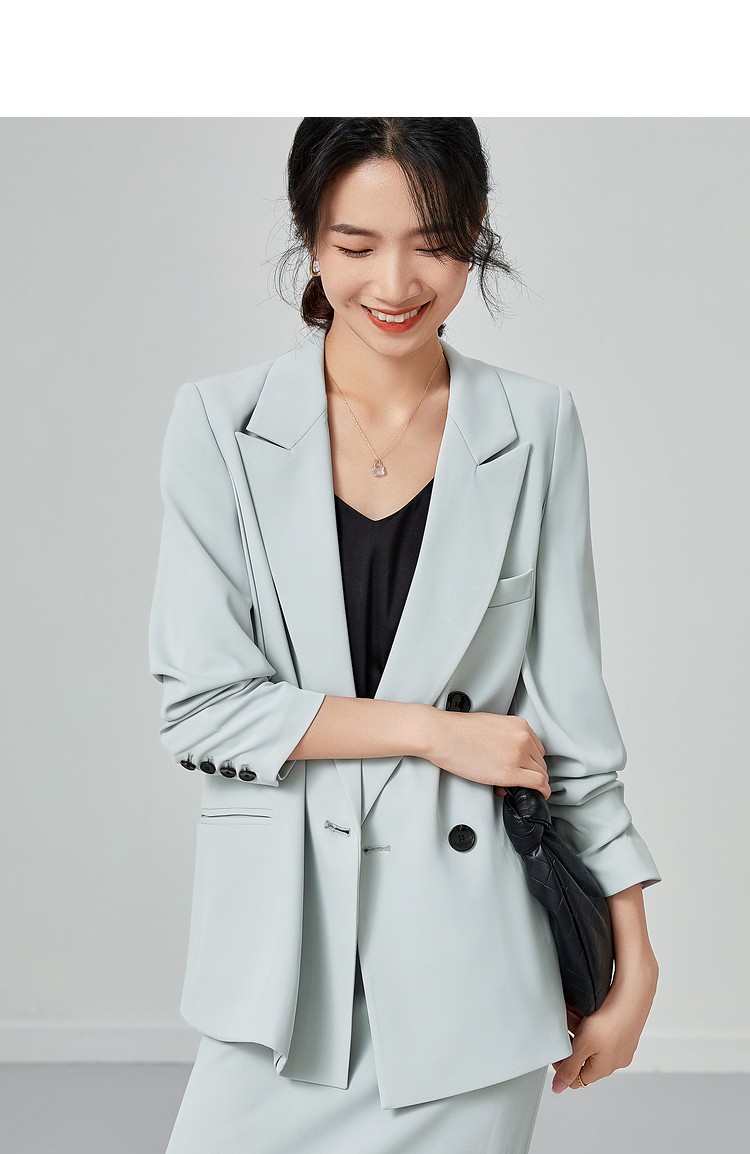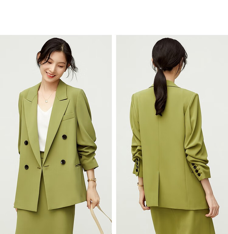Shandubila temperament pleated three-quarter sleeves double-breasted suit jacket for women autumn new fashion casual small suit cream frost white jacket 6746 M