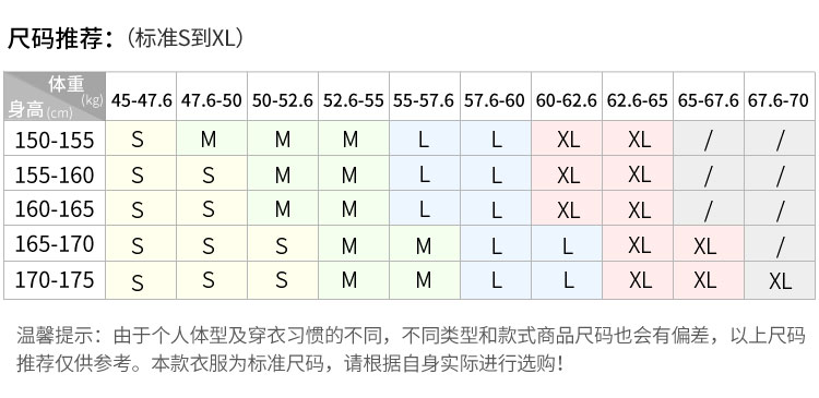 China (cm) 160-165/84-86 165-170 / 88-90 167-172 / 92-96 168-173 / 98-102 170-176 / 106-110