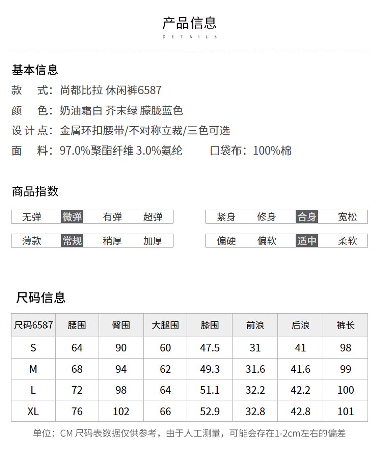 Outseam (cm) 99 cm 101.5 cm 104 cm 106.5 cm 109 cm